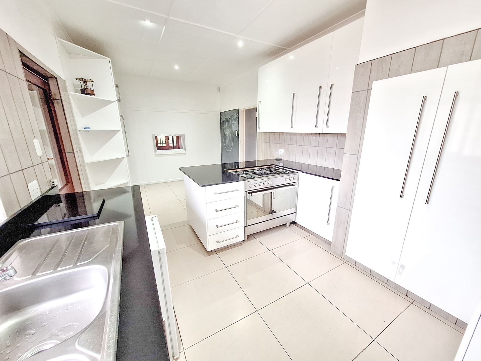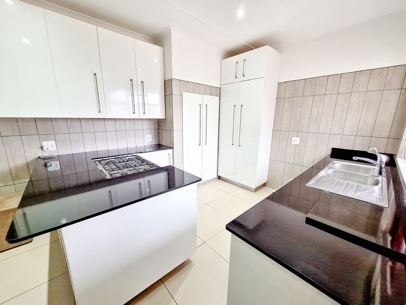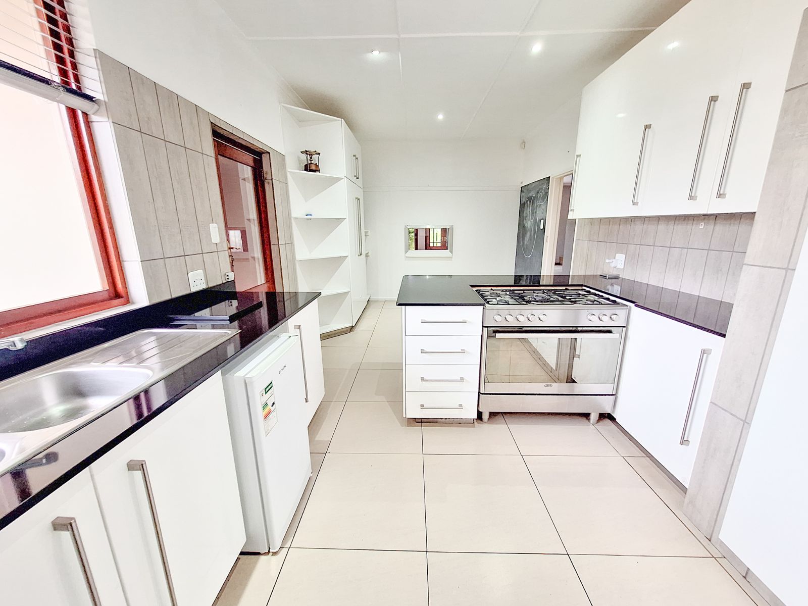 The lounge and dining area opens up onto a sun-filled braai room creating a natural flow for family time or entertaining guests. A fireplace in the lounge adds a cozy touch on cooler evenings.