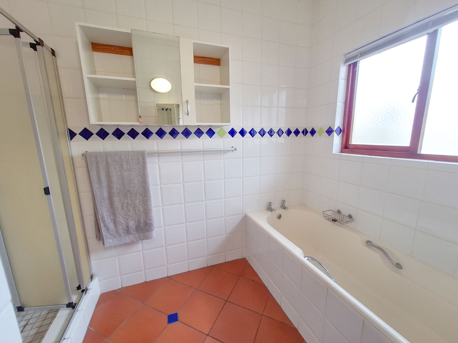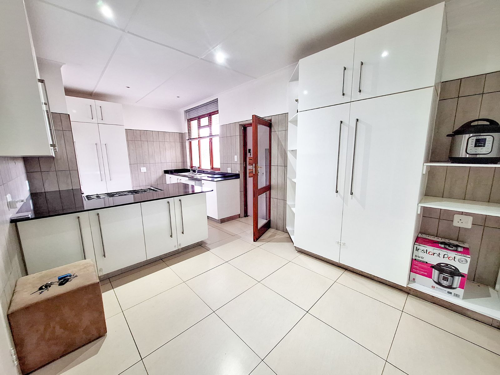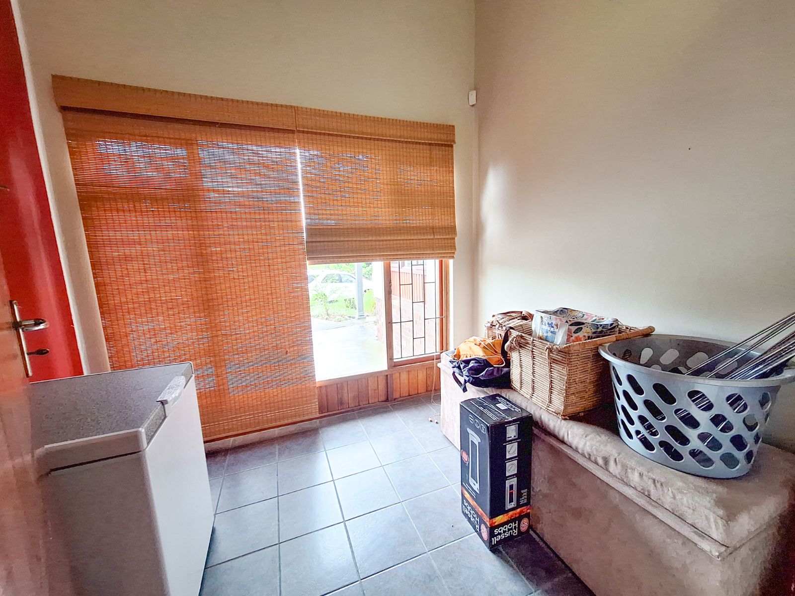 The lounge and dining area opens up onto a sun-filled braai room creating a natural flow for family time or entertaining guests. A fireplace in the lounge adds a cozy touch on cooler evenings.