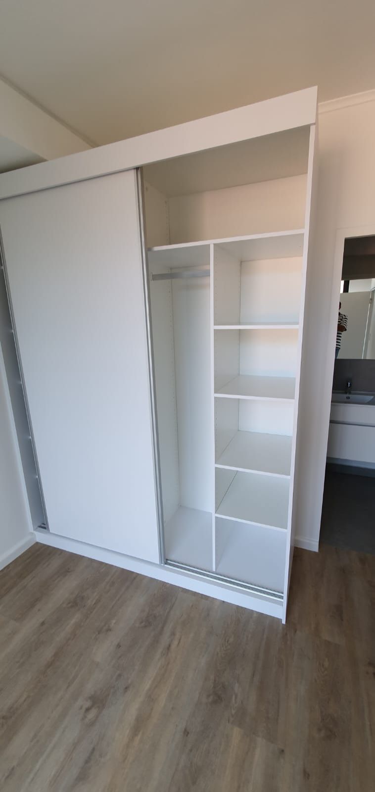 The residence is defined by its seamless open-plan architecture, where a high-specification kitchen—complete with premium finishes and sleek cabinetry—flows effortlessly into a light-filled living and dining sanctuary. Both spacious bedrooms feature generous built-in storage and large windows that frame the natural beauty of the Garden Route, while the elegant, modern bathroom serves as a refined retreat.