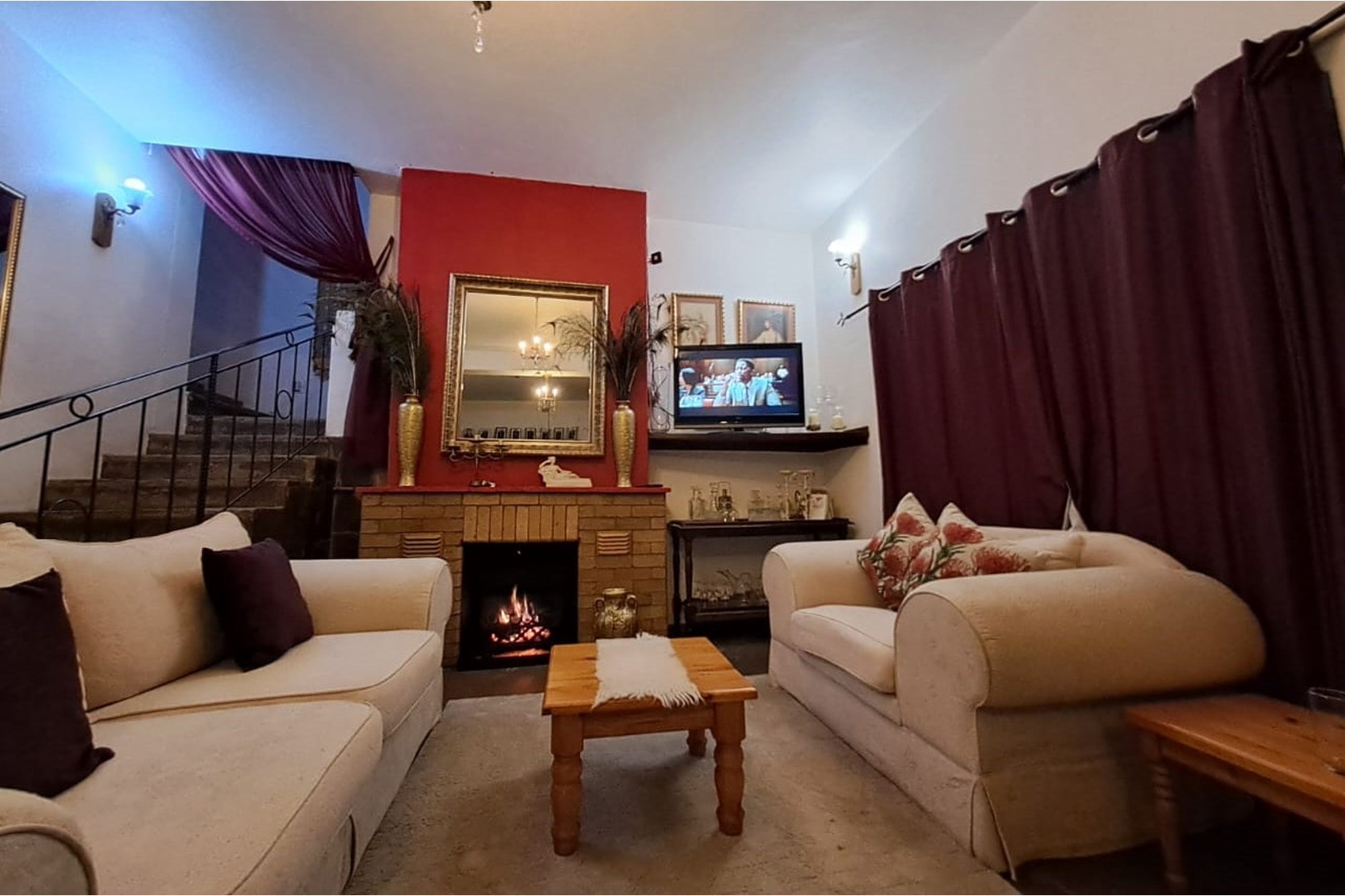 Cozy lounge featuring a fireplace