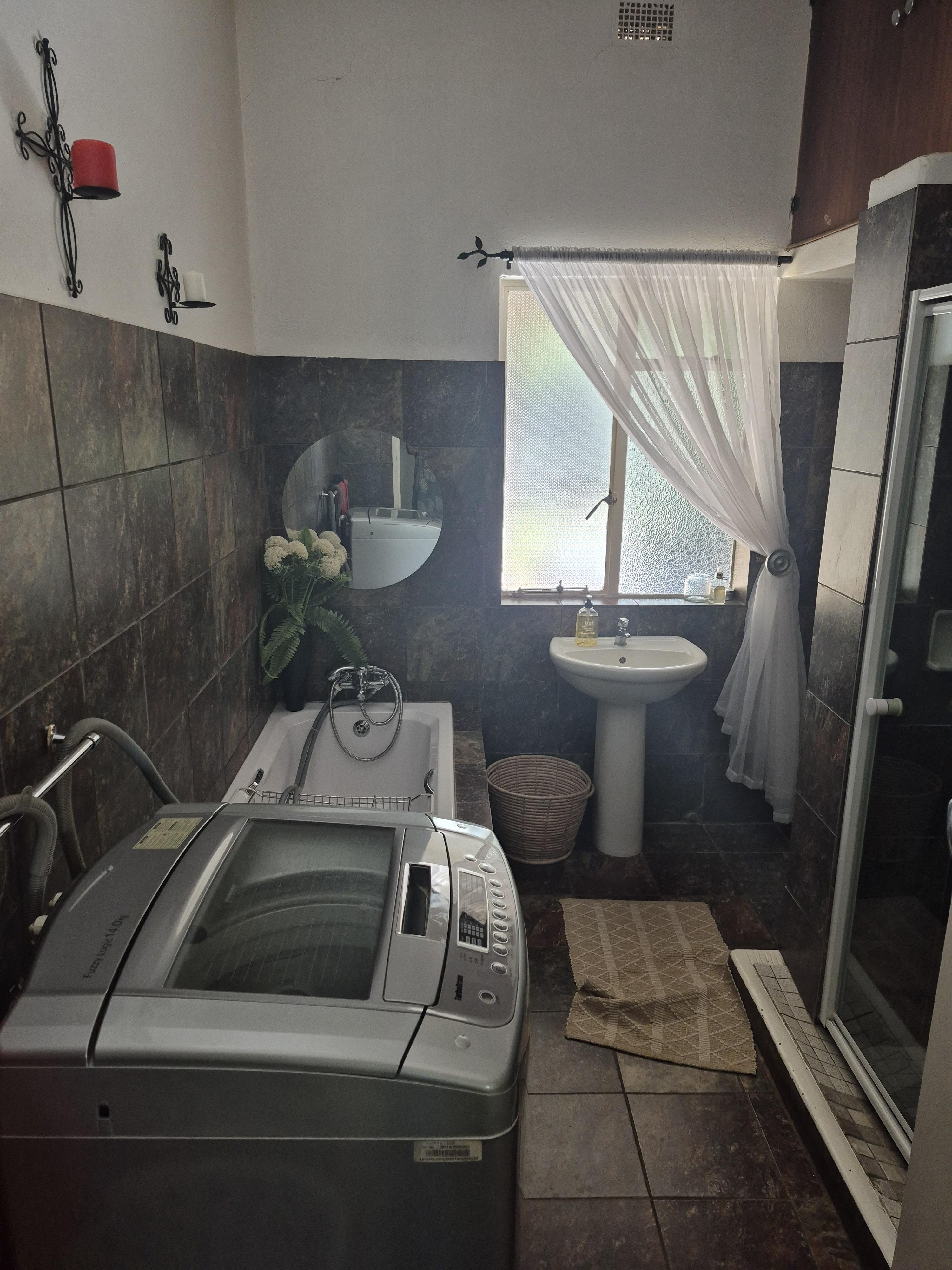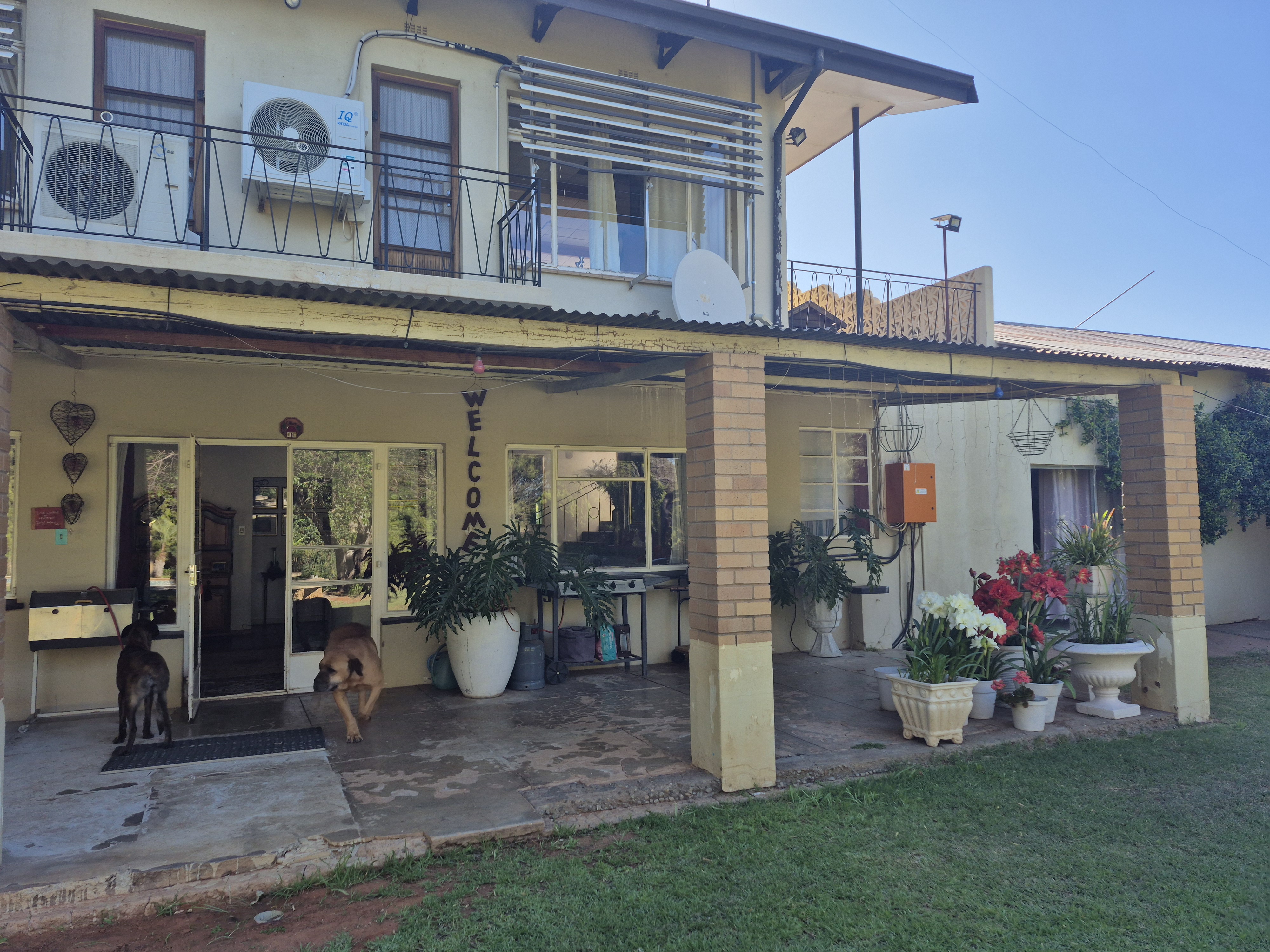 The main double-storey residence (± 460 m2) features 4 bedrooms and 3 bathrooms, including a master suite with generous space and natural light. The home offers a kitchen, open-plan dining and living areas, a bar and entertainment area, and a covered braai patio overlooking the garden – ideal for family gatherings and relaxed outdoor living. Two home offices provide the ideal setup for remote work or business operations.