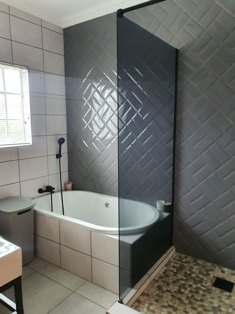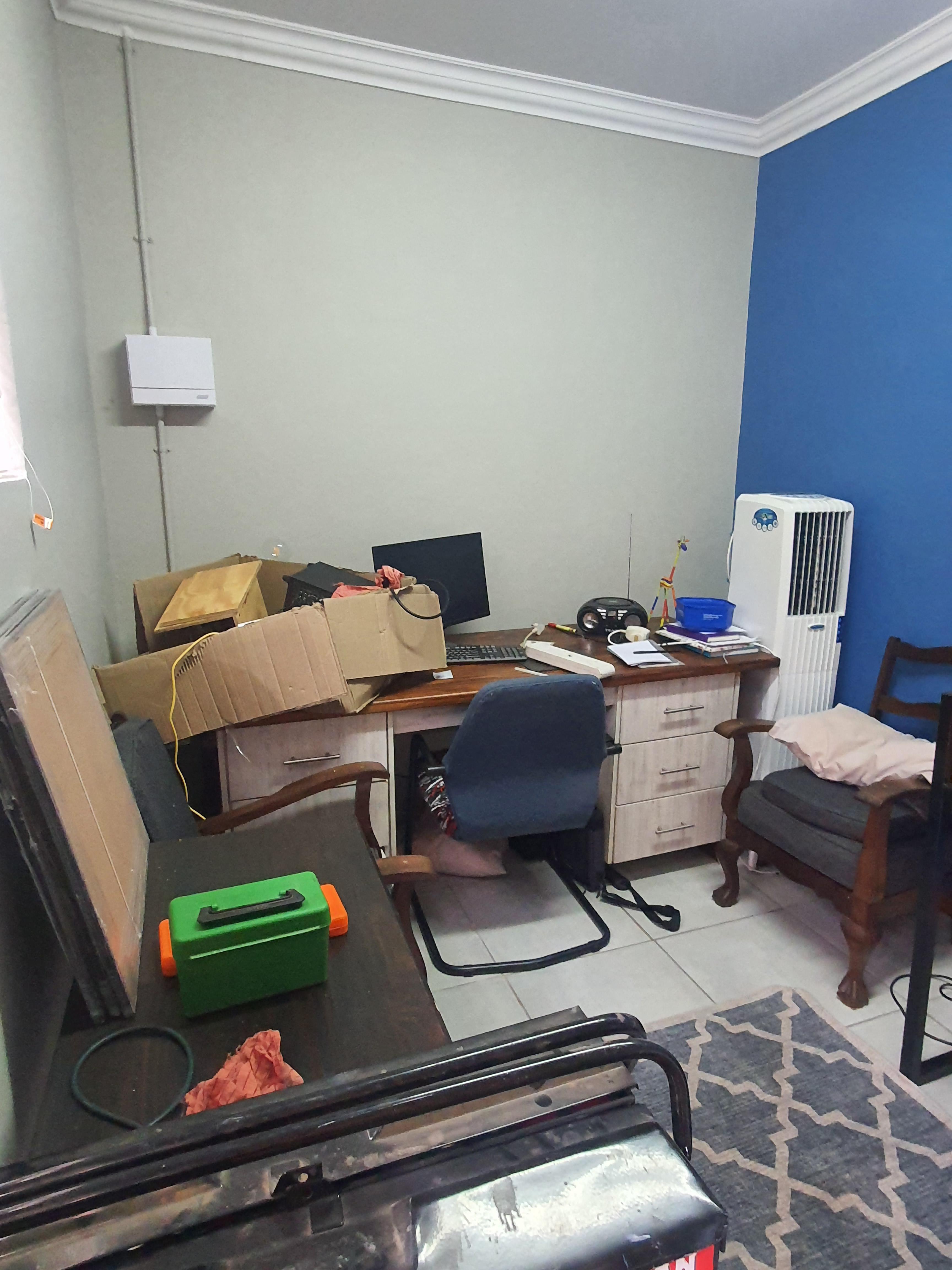 Porch with build in braai and laundry room. Burglar bars, trellidoor's and security gates, alarm system, automatic gate and garage doors. Air conditioners in both rooms, study and living area