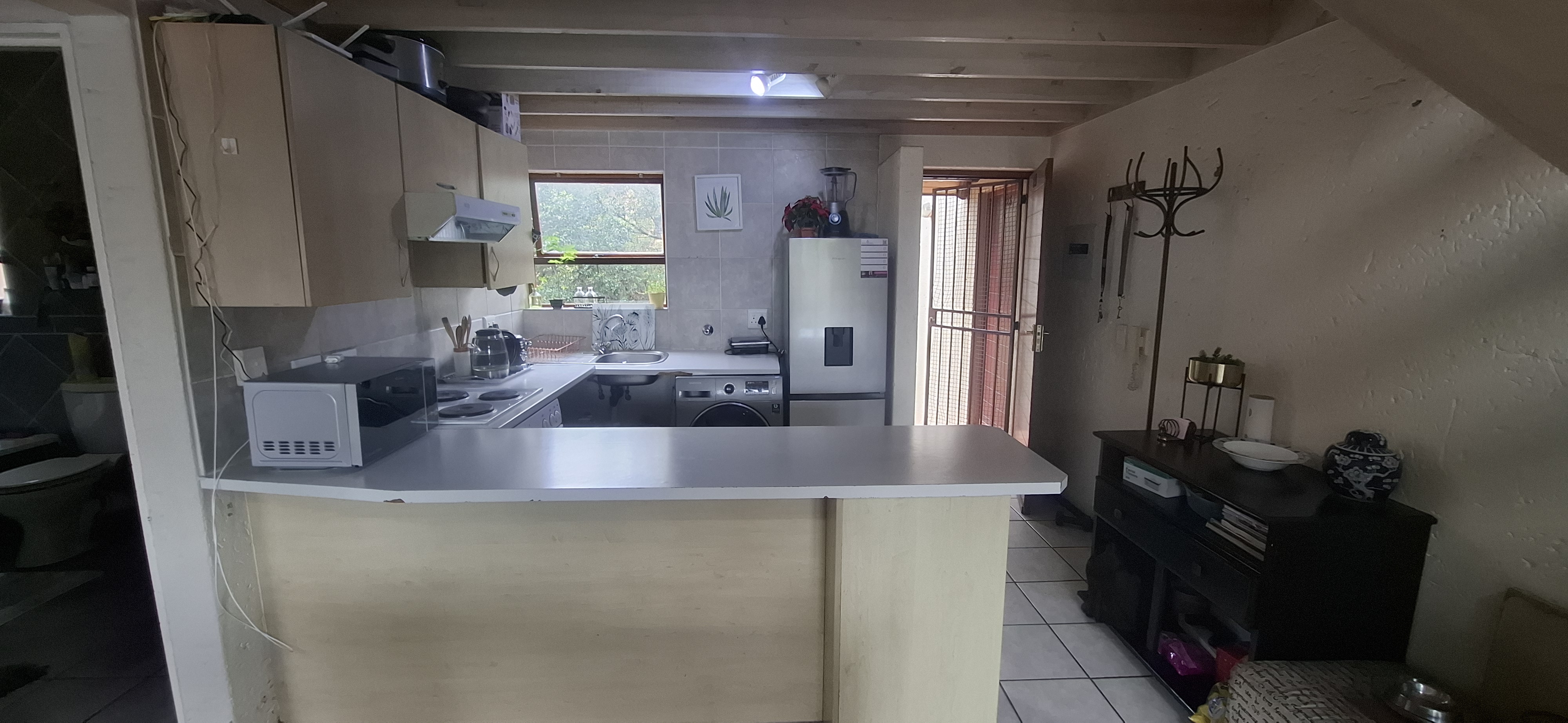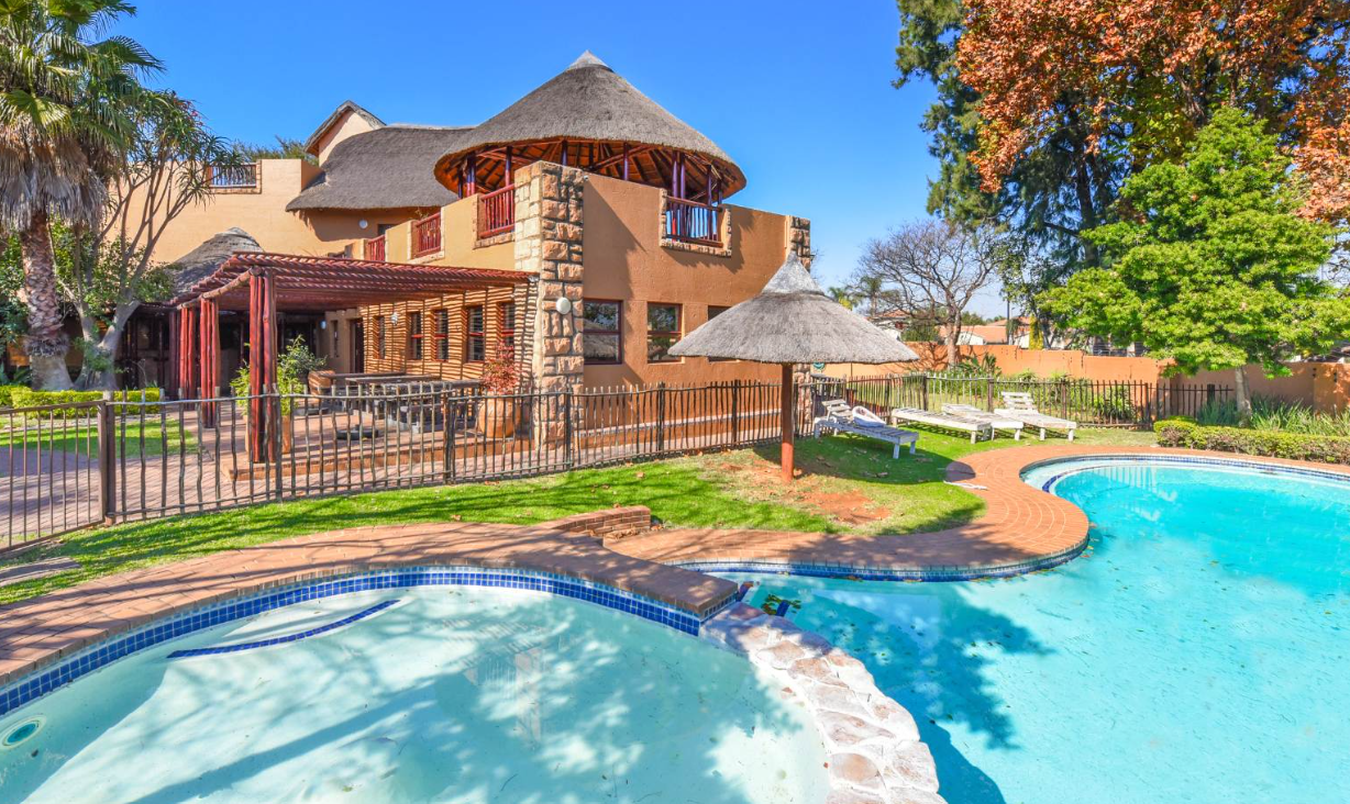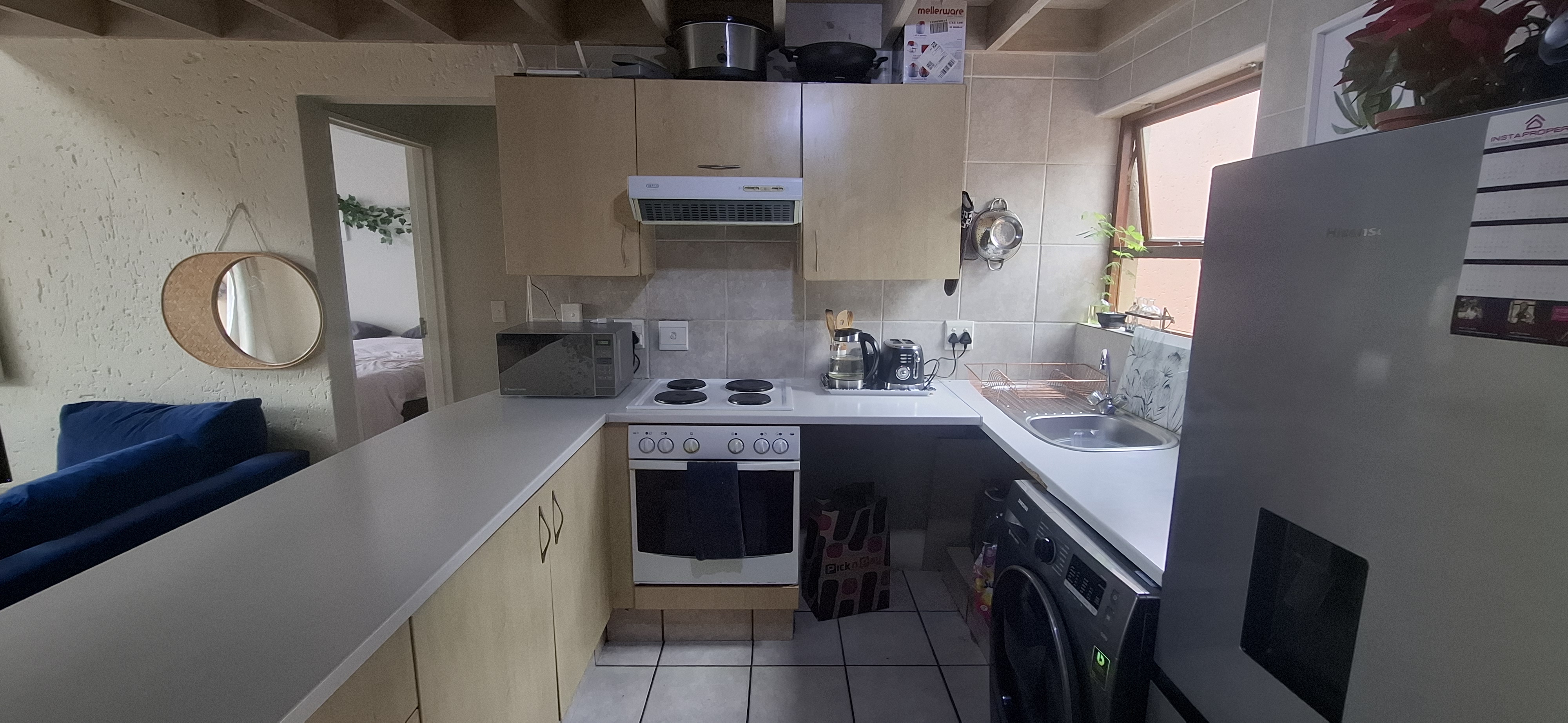 This apartment is located in a secure estate and is accessed via a private staircase. The kitchen is modern and practical, offering wooden countertops, a central island, electric hob and oven, extractor fan, built-in cupboards, and space for a plumbed appliance. The open-plan dining and TV area is fully tiled and leads through a sliding door to a covered balcony. The bedroom is carpeted, fitted with built-in cupboards, and benefits from a north-facing window that allows good natural light. The bathroom has been renovated and includes both a bathtub and a shower. Upstairs, there is a spacious loft that can be used as an additional lounge, home office, or extra bedroom. A second balcony leads off the loft and provides additional outdoor space. The unit is fibre-ready, there is a communal laundromat in the estate, and pets are permitted subject to approval. One covered parking bay is allocated to the apartment, with visitor parking located nearby. The estate offers a clubhouse with restaurant, swimming pools, braai facilities, a children’s play area, tennis court, a bookable function room, and a gym available for residents’ use. Security includes a 24-hour manned guardhouse, controlled access, automated gate and boom system, image recognition, and regular patrols. Douglasdale Shopping Centre is within walking distance, with Fourways Mall and Montecasino a short drive away. There is easy access to Leslie Avenue and Winnie Mandela Drive, providing convenient routes to Sandton and the Gautrain Station. Estate improvements include the replacement of thatch roofs with tiled roofing and refurbished high ceilings.