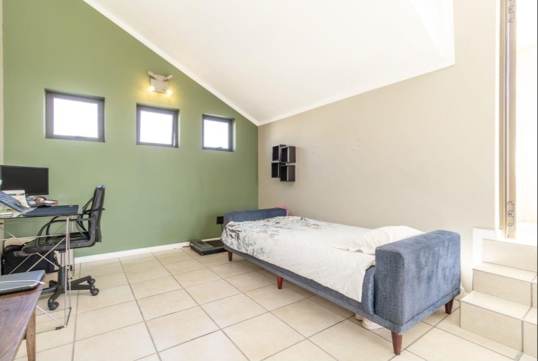 The lounge opens up to a downstairs balcony, perfect for enjoying your morning coffee or unwinding in the evenings. Upstairs, you’ll discover a large balcony with breathtaking views and a braai area, making it an excellent space for entertaining family and friends.