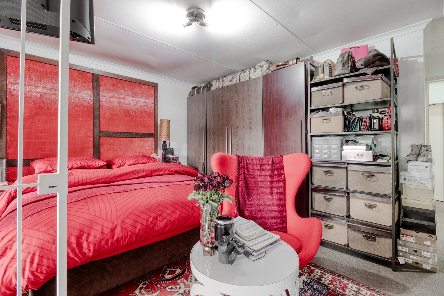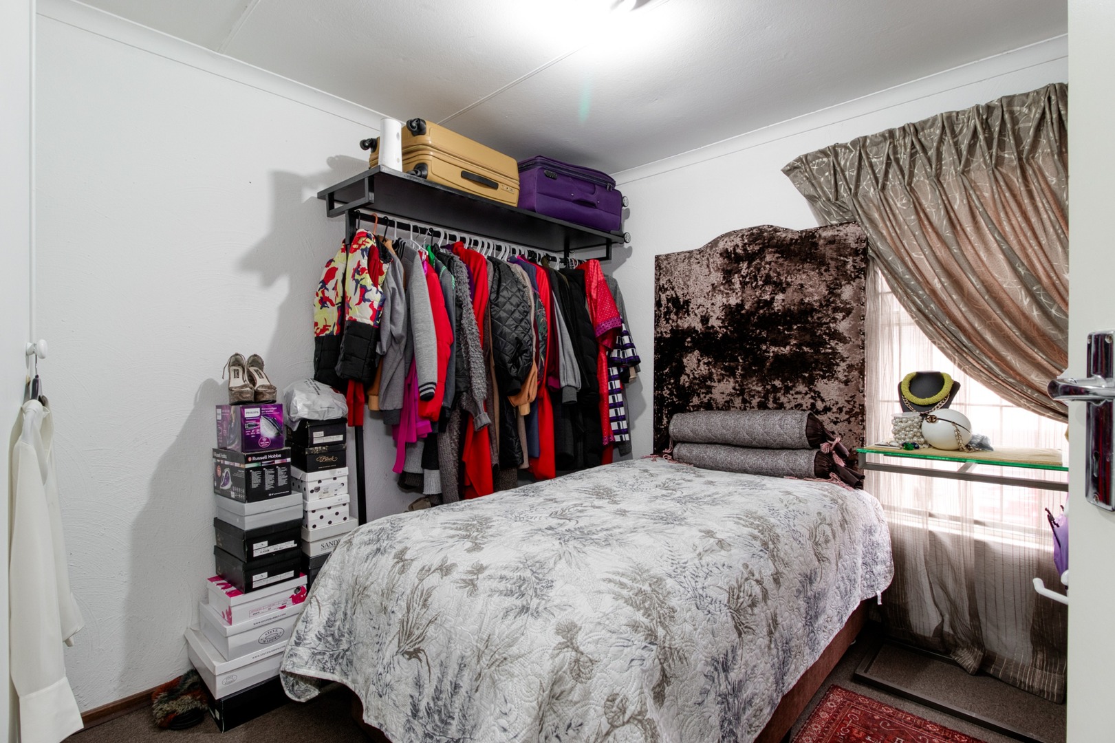 Ascending the stairs, you'll find three generously proportioned bedrooms, all luxuriously carpeted. The master bedroom features an en-suite bathroom complete with a bathtub and a shower, along with access to a balcony. For added security, there's a protective gate at the top of the staircase.