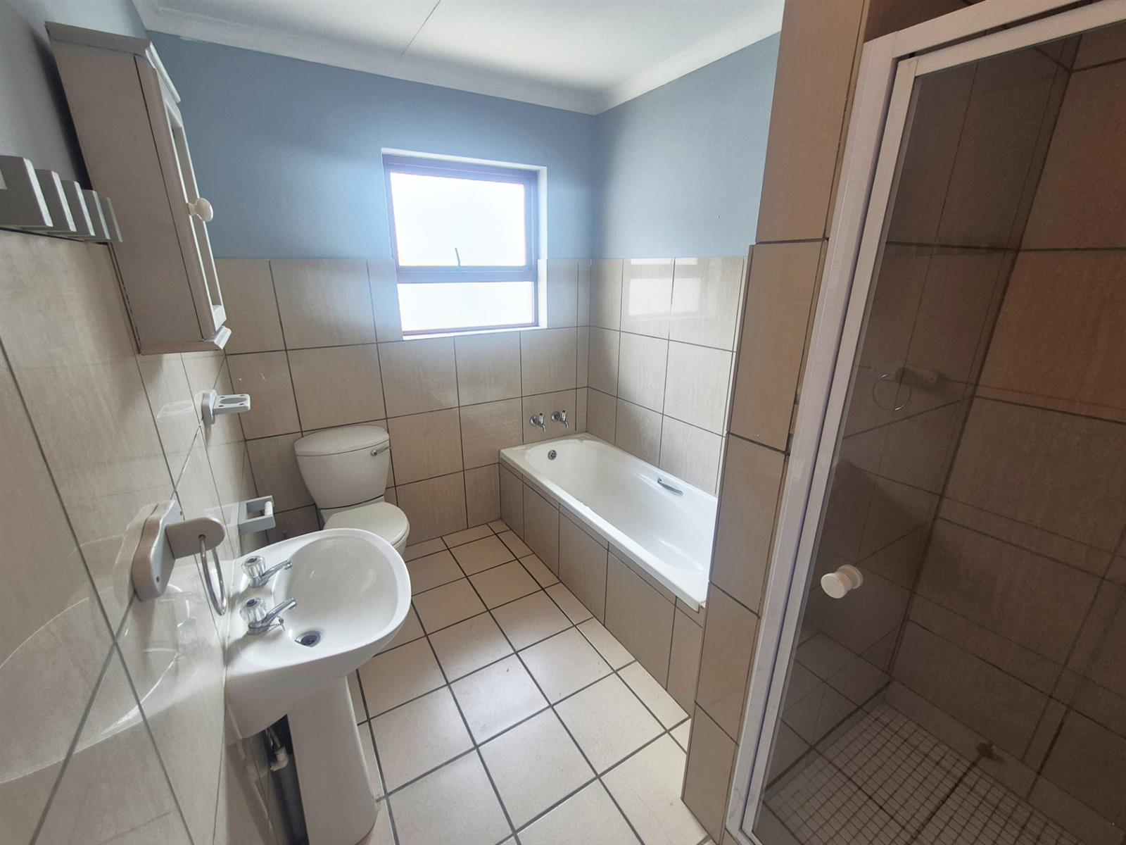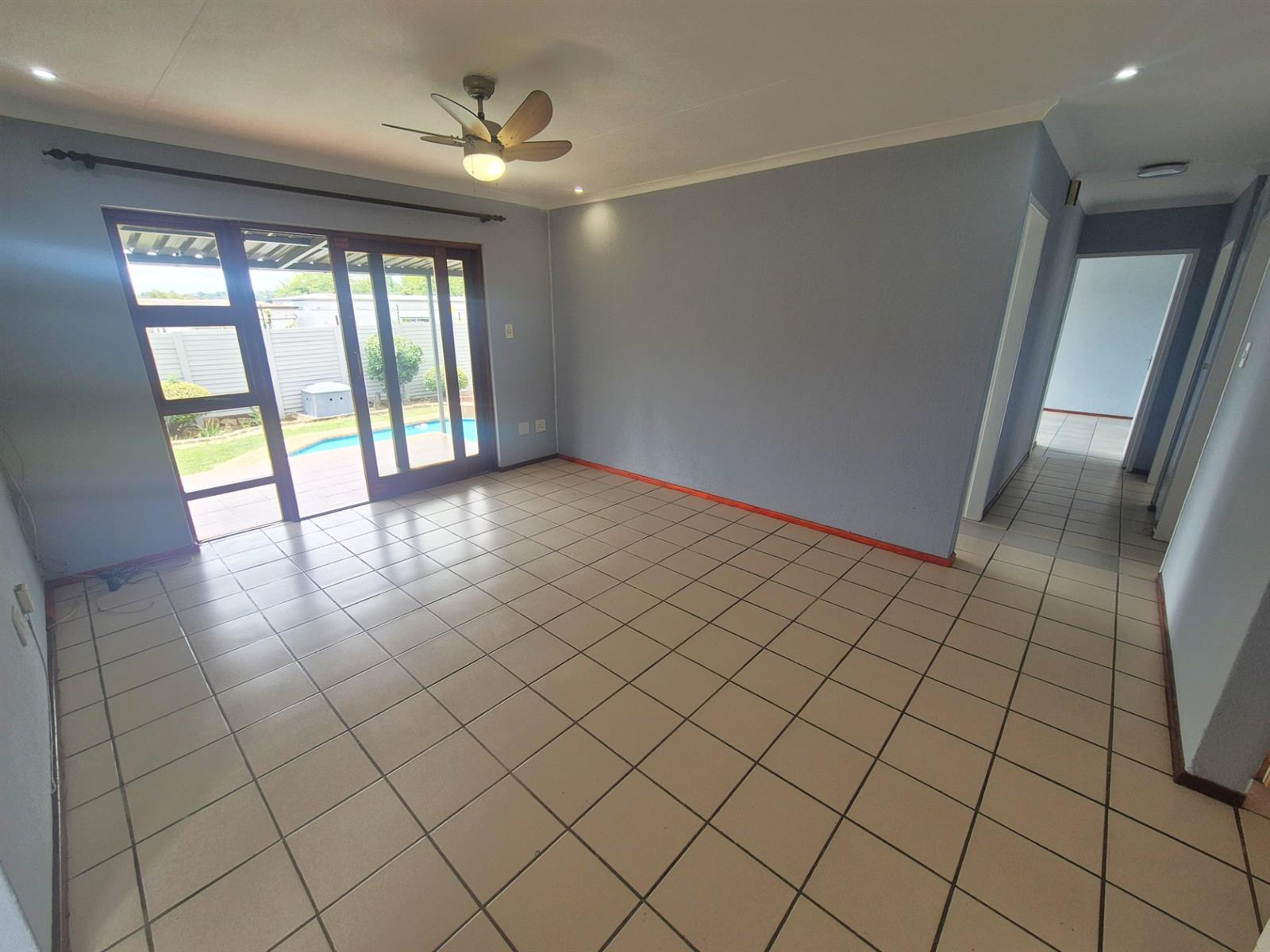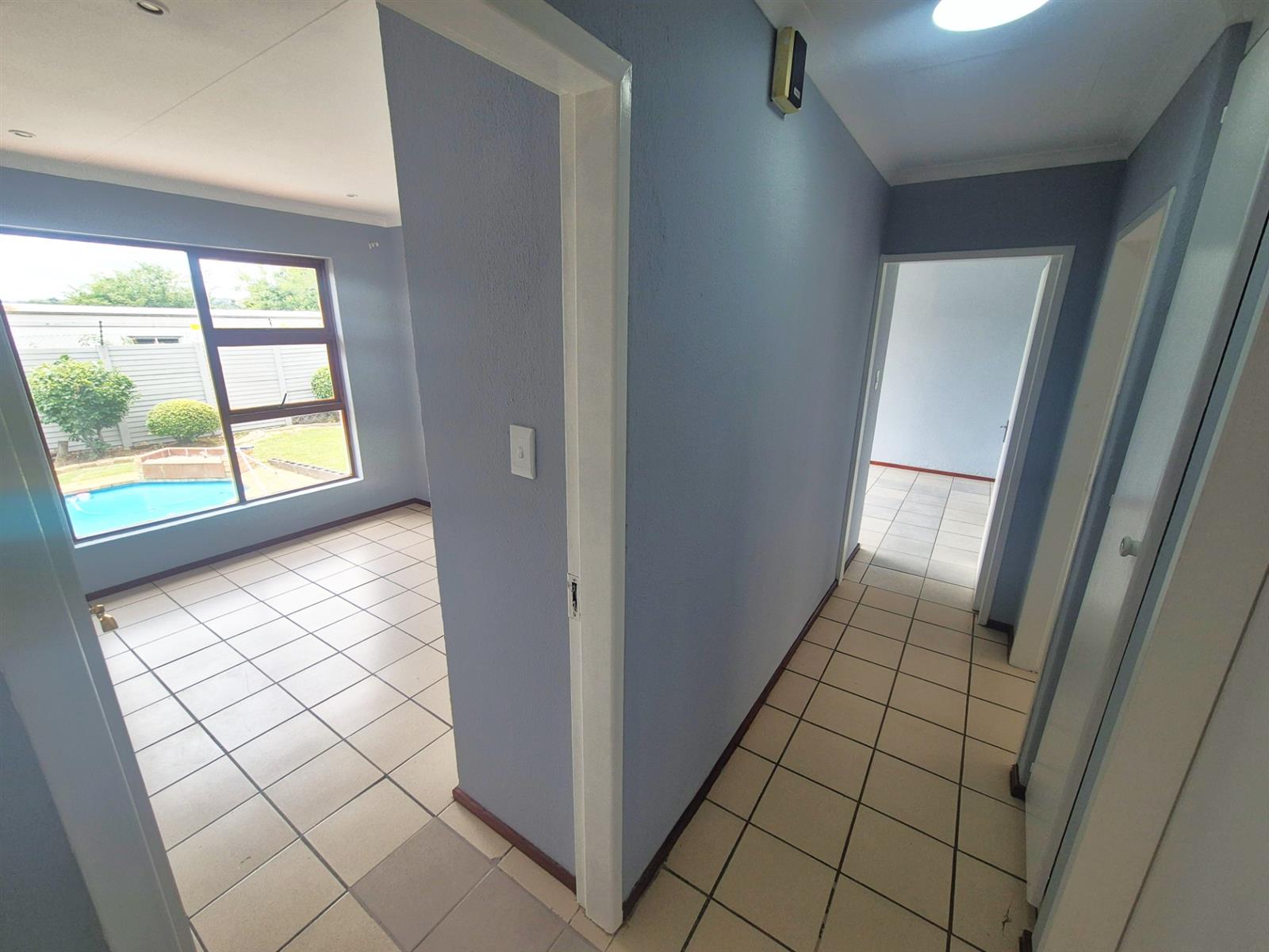 The passage hosts three comfy sized tiled bedrooms, all able to accommodate queen beds. A linen cupboard.