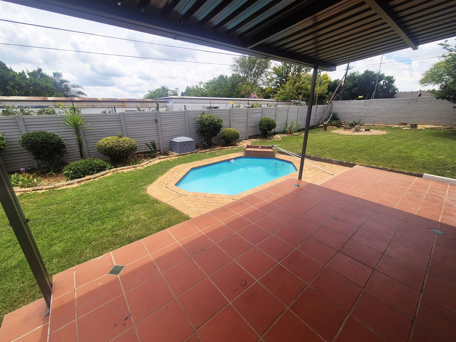 The property offers easy access through an automated single garage door and includes two covered carports for parking convenience. A handy garden shed takes care of all your extra storage needs, while an outdoor toilet and shower add functional versatility to the property. Electric fence on road facing walls.