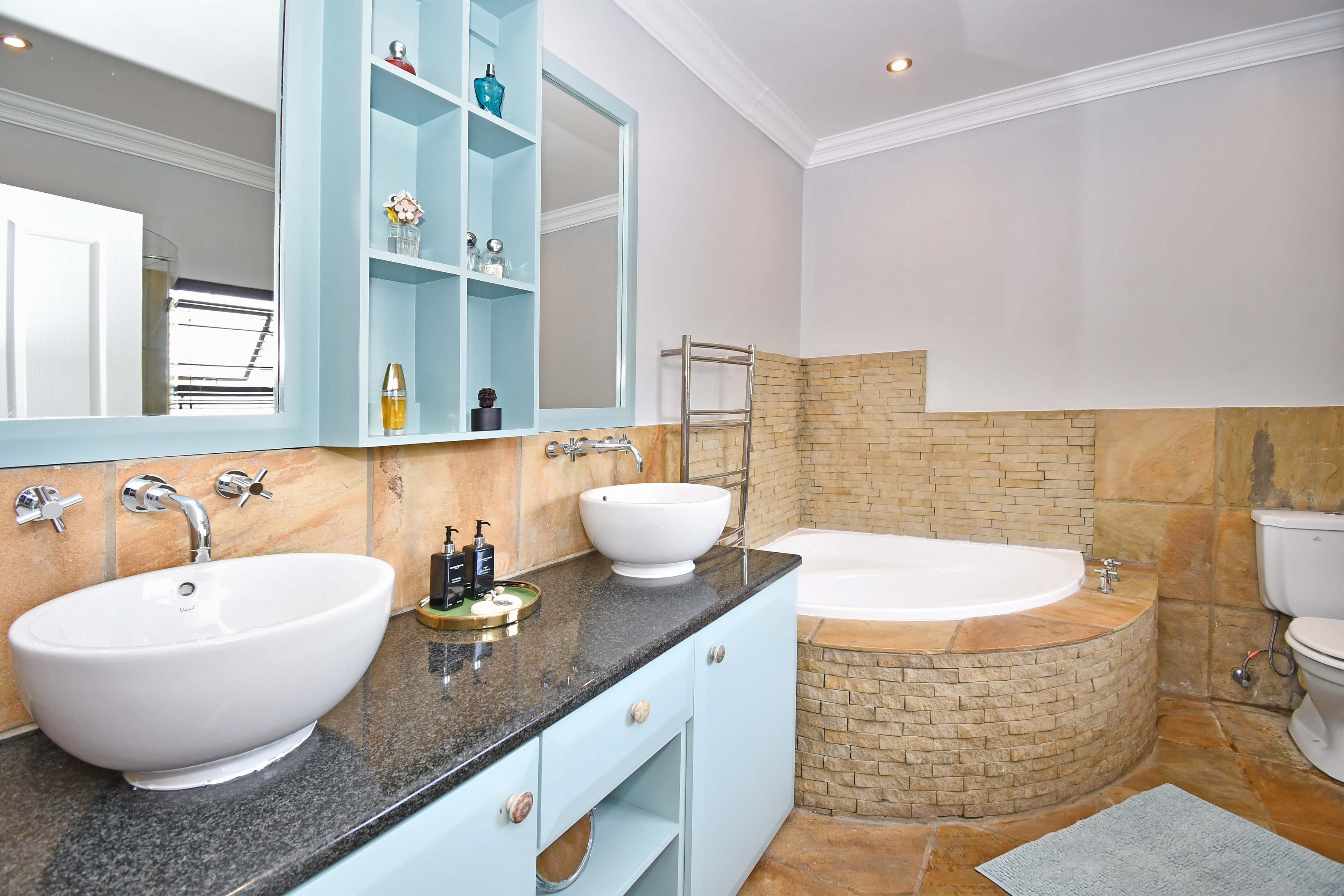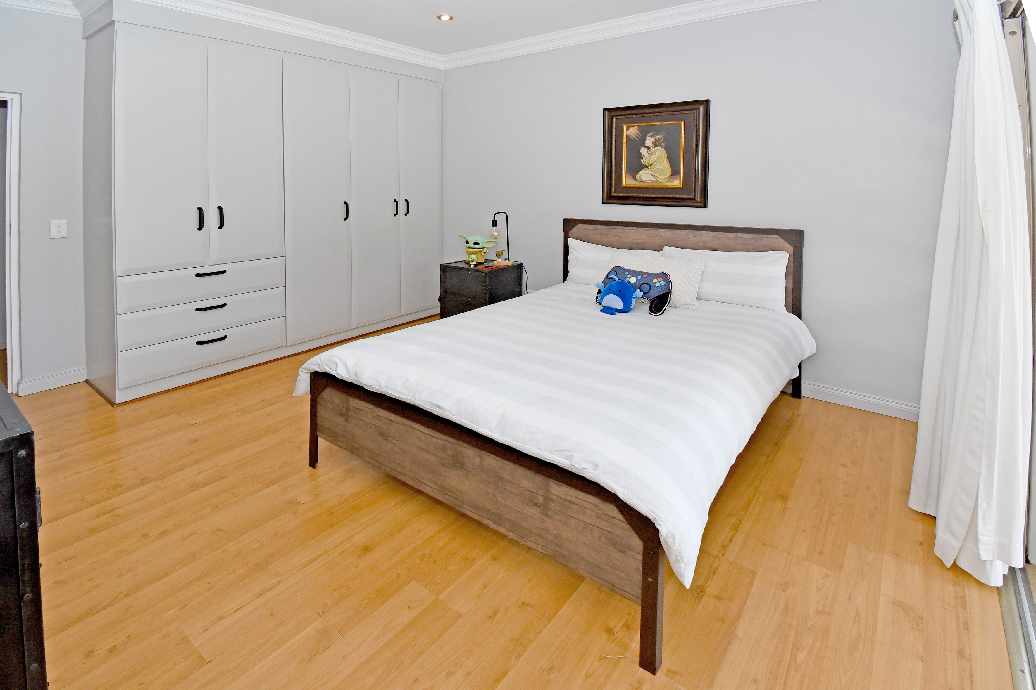 The palatial main bedroom will give you the private space you desire away from the family. Loads of cupboard’s and a main en suite with unique stone tiles and double vanity, bath and shower.