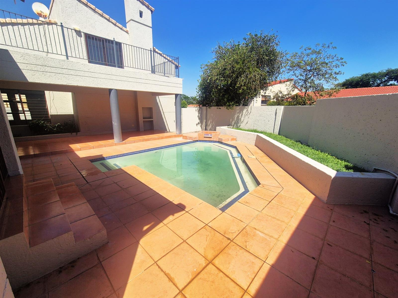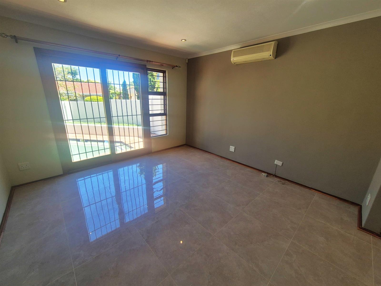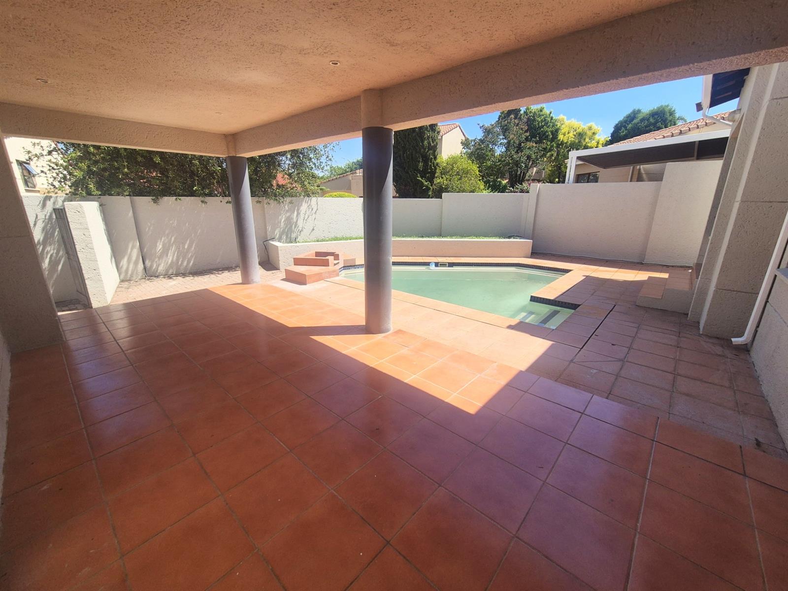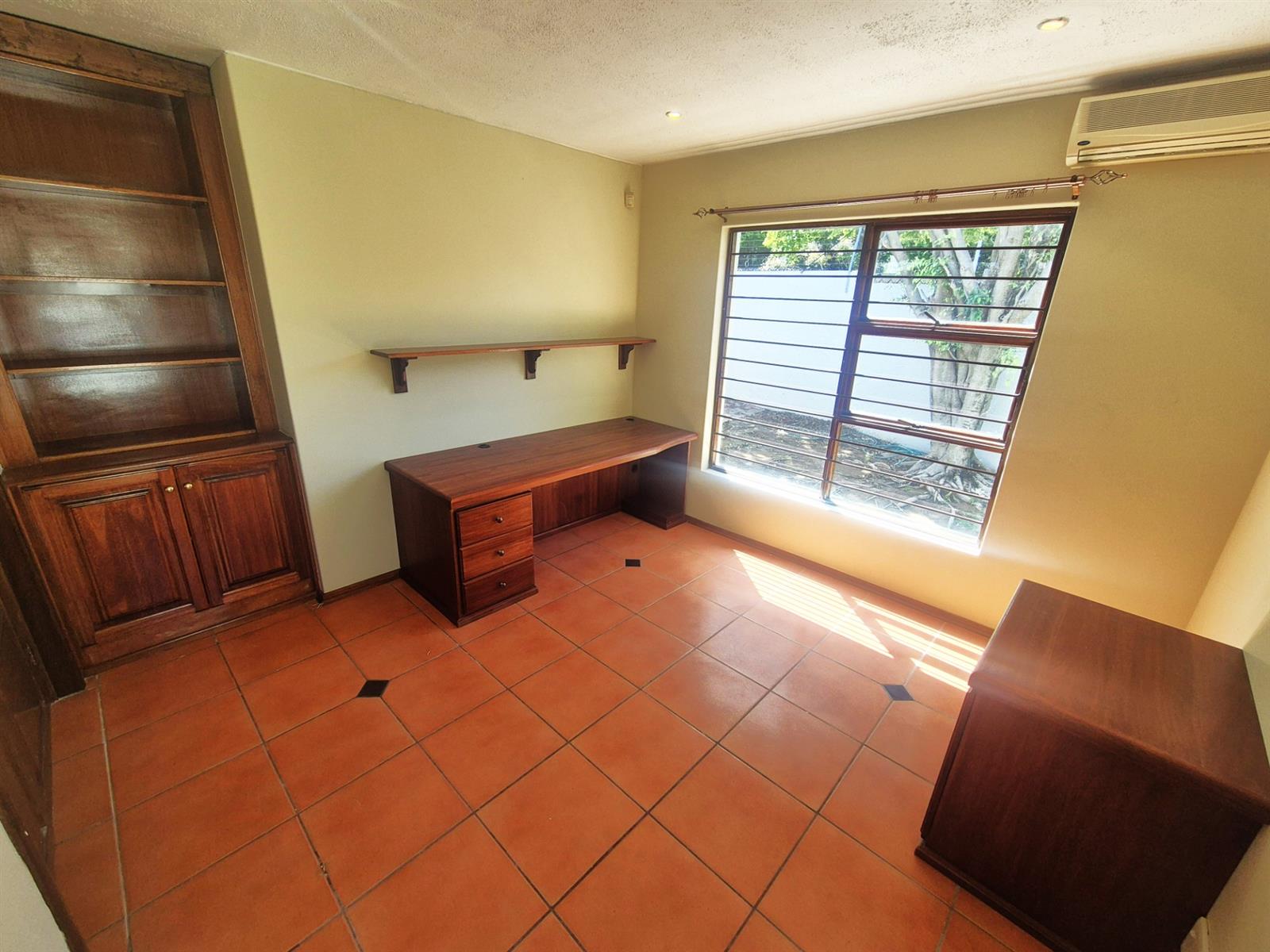 An entrance hall radiantly welcomes you into separate tiled living and dining areas as well as a marvellous additional air-conditioned study which may also be used as a third recreational room. Sliding doors flow off the living area out onto a charming, covered patio with built-in braai overlooking a swimming pool – delightful for entertaining, relaxing and family bonding times. Share stories, laughter and create special moments. Bring along your fury friends of all shapes and sizes!
