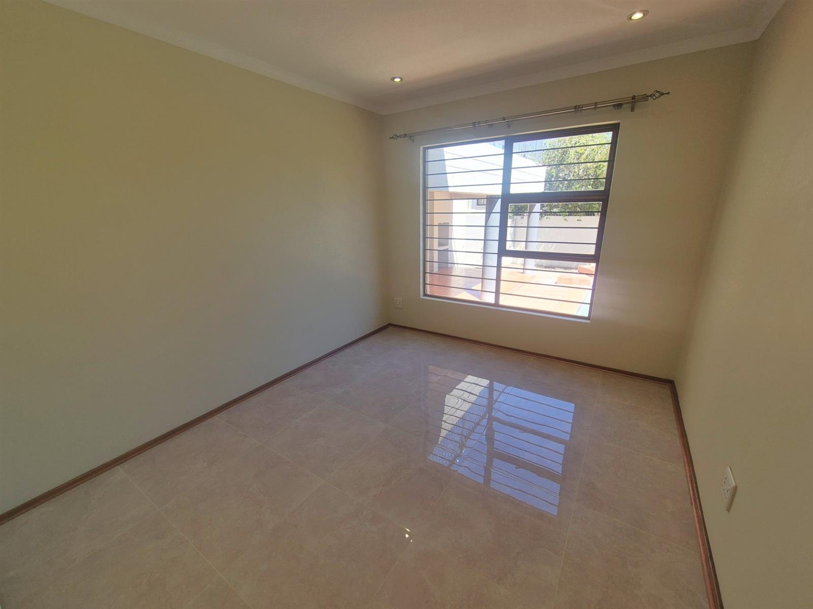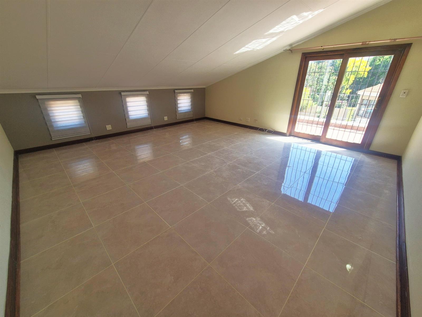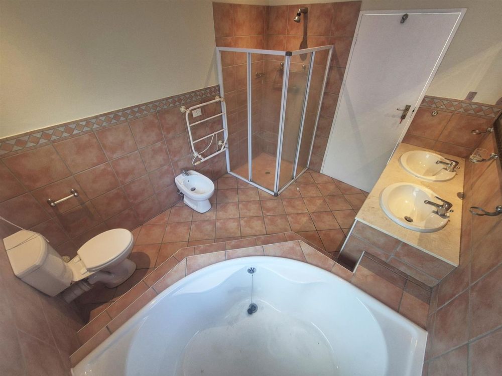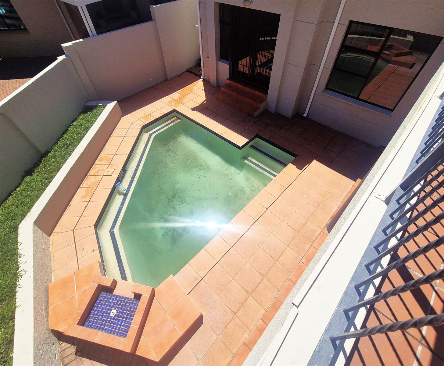 An entrance hall radiantly welcomes you into separate tiled living and dining areas as well as a marvellous additional air-conditioned study which may also be used as a third recreational room. Sliding doors flow off the living area out onto a charming, covered patio with built-in braai overlooking a swimming pool – delightful for entertaining, relaxing and family bonding times. Share stories, laughter and create special moments. Bring along your fury friends of all shapes and sizes!