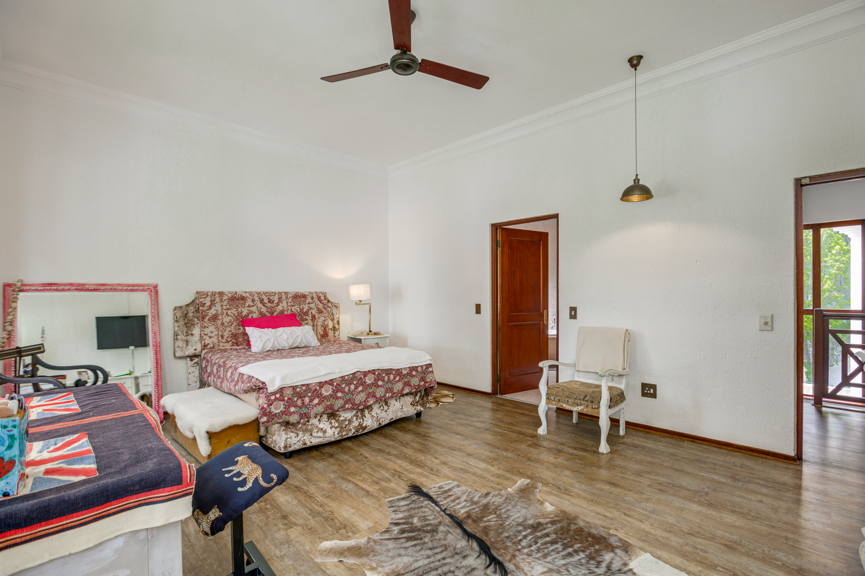The main bedroom is expansive and luxurious, featuring a large walk-in closet and a full en-suite bathroom, providing a private retreat within the home.