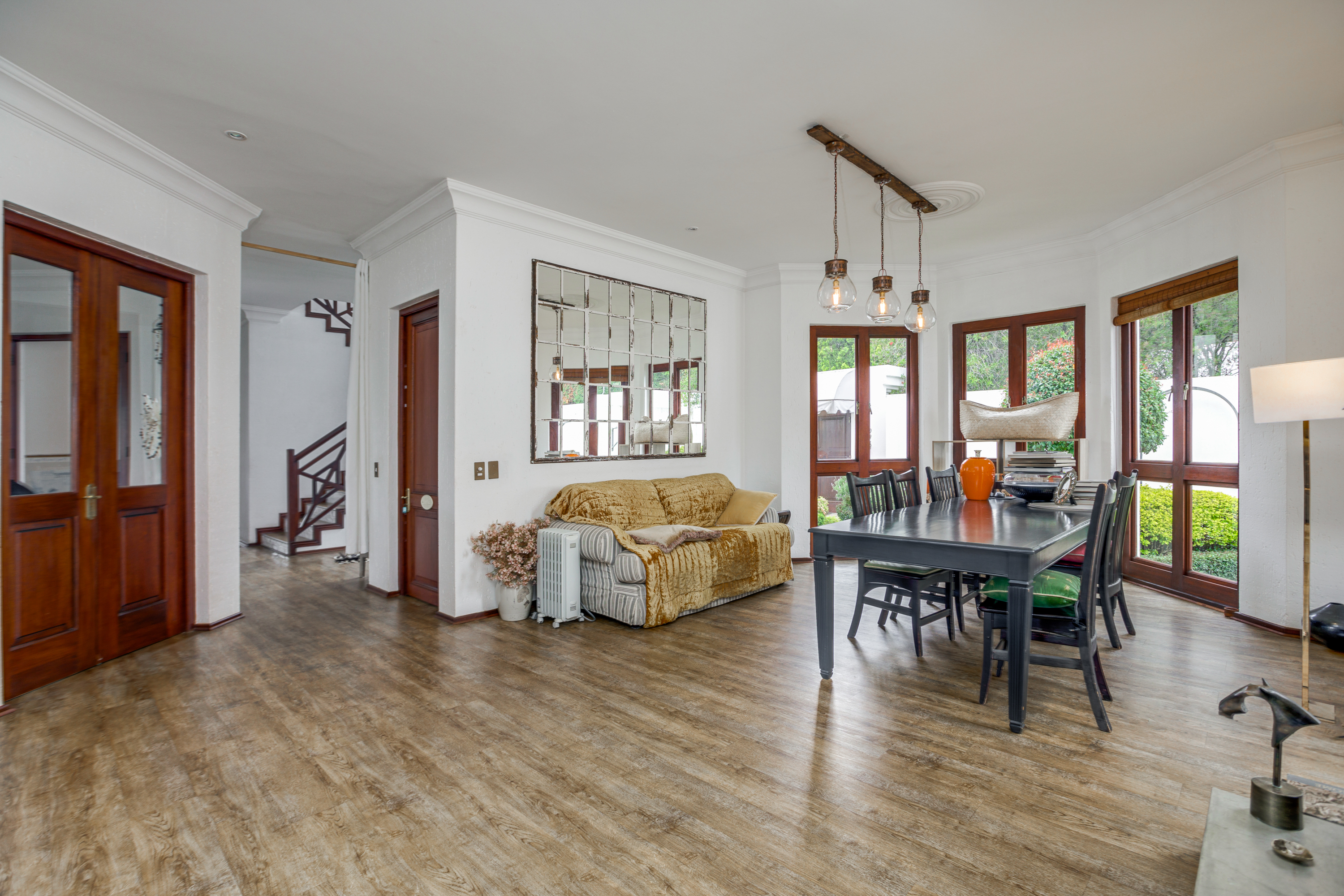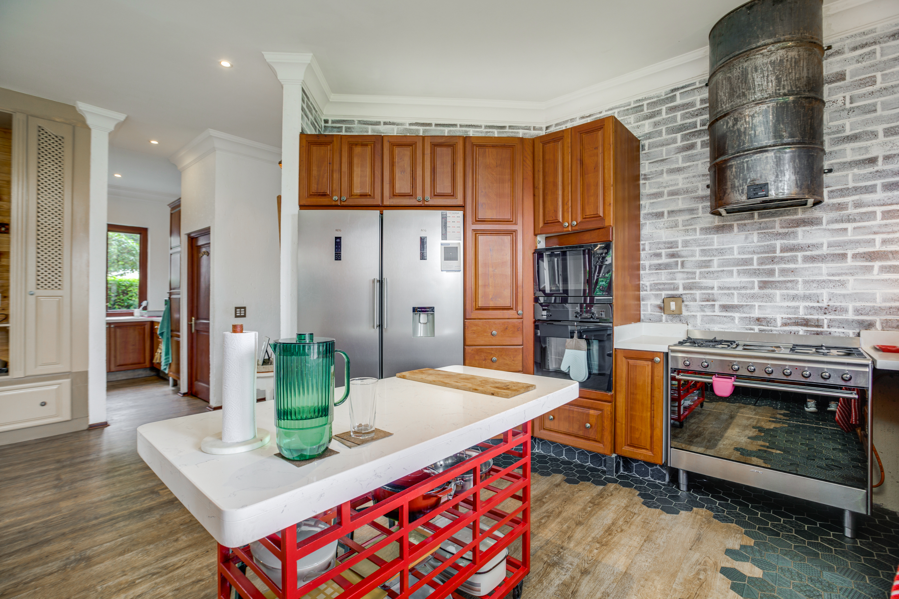 This large three-bedroom cluster home showcases a modern, chic design defined by high ceilings and an abundance of large windows that flood the interior with natural light throughout the day.