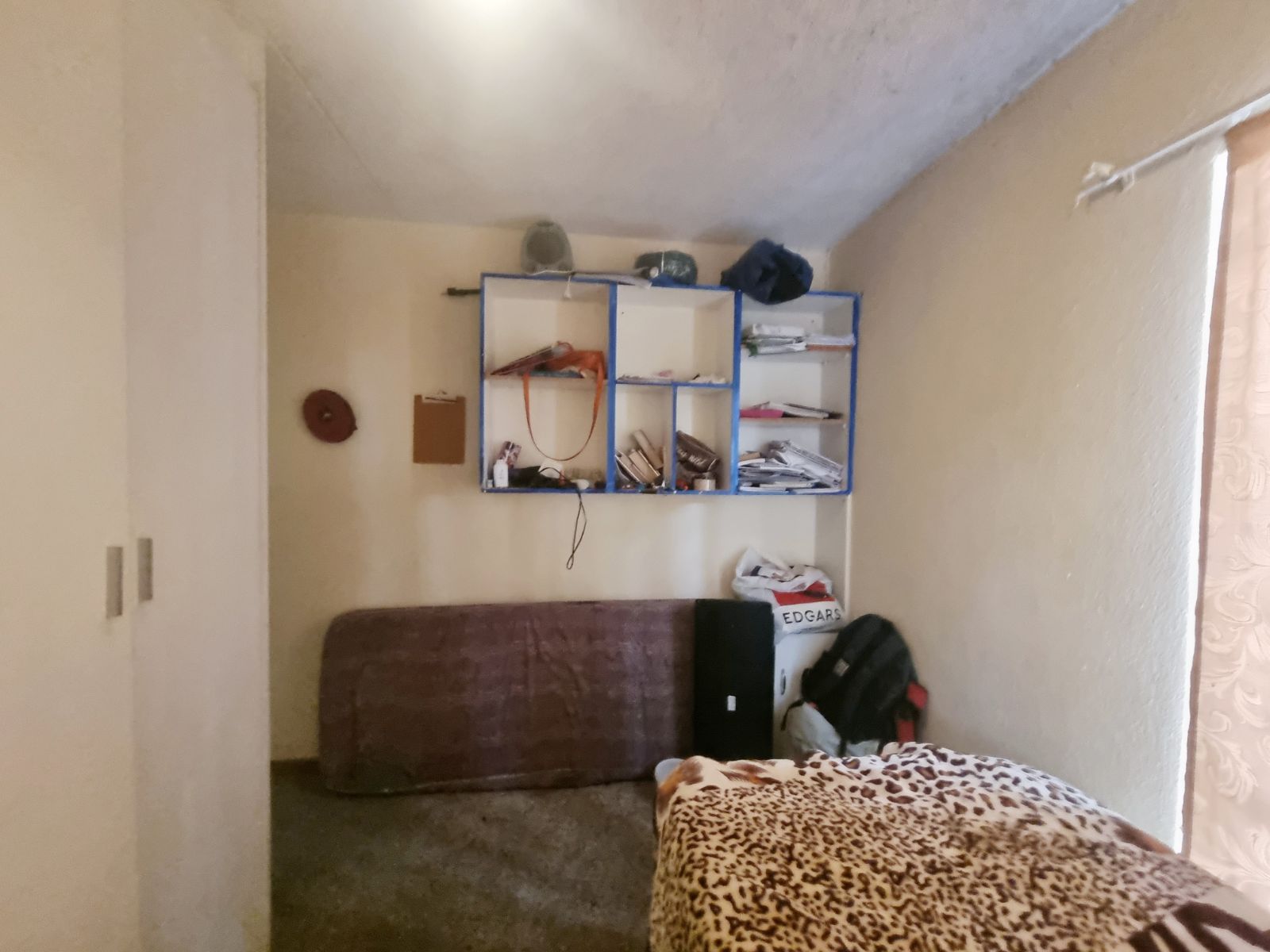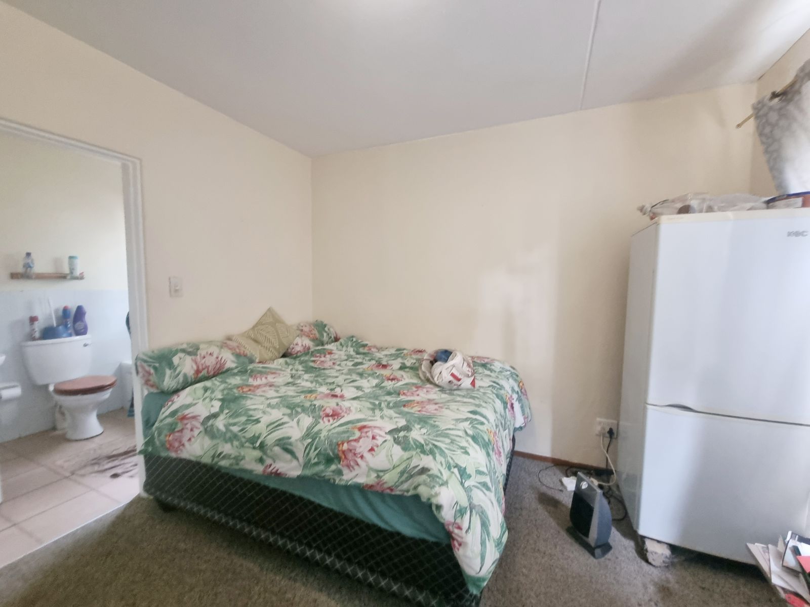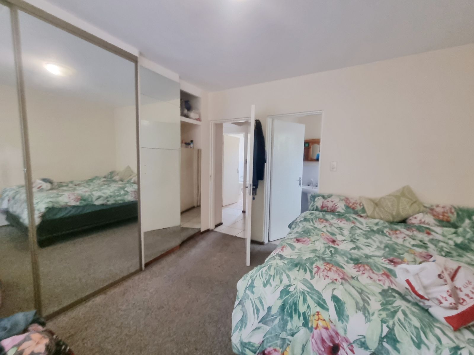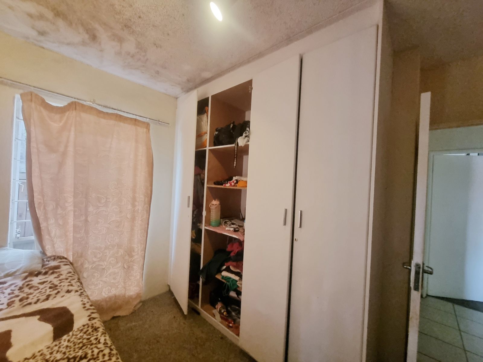The kitchen offers good cupboard space; however, some kitchen cupboard doors require attention. Bedroom cupboard doors also need maintenance, new carpets are required, and one bedroom has damp on the ceiling, which will need to be addressed.