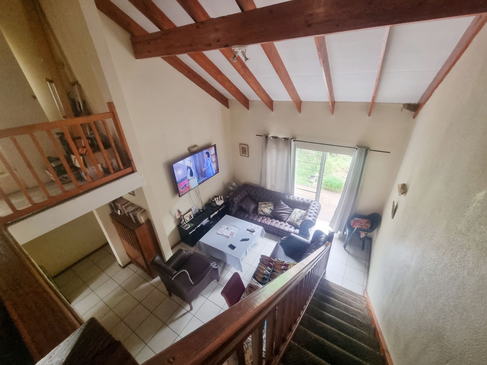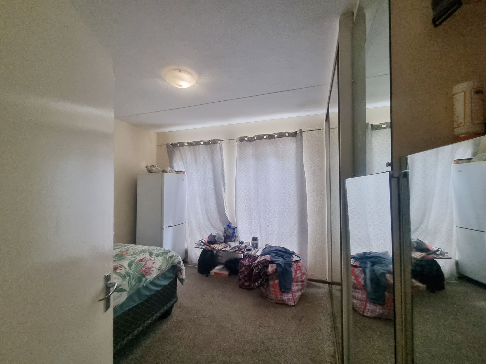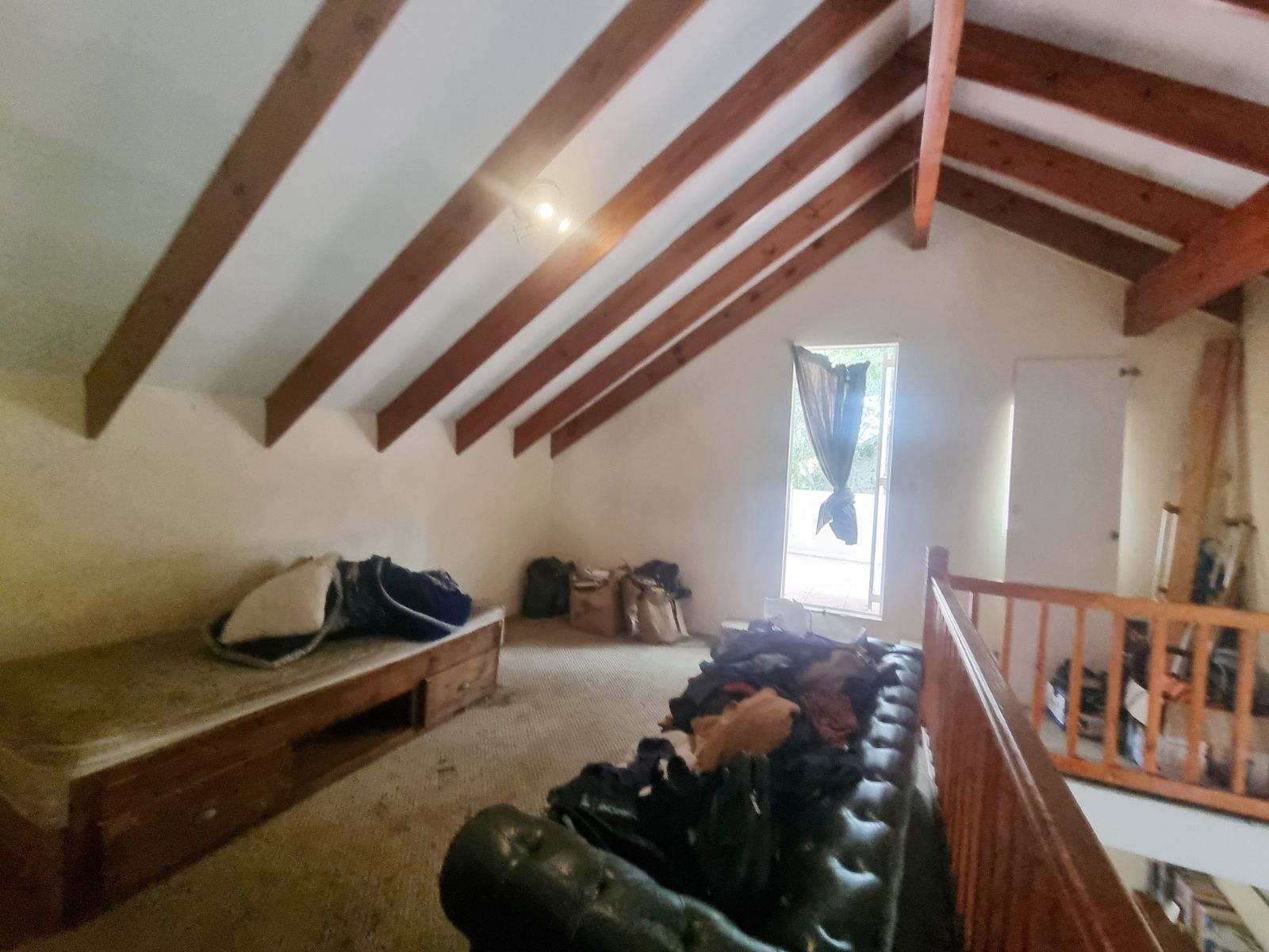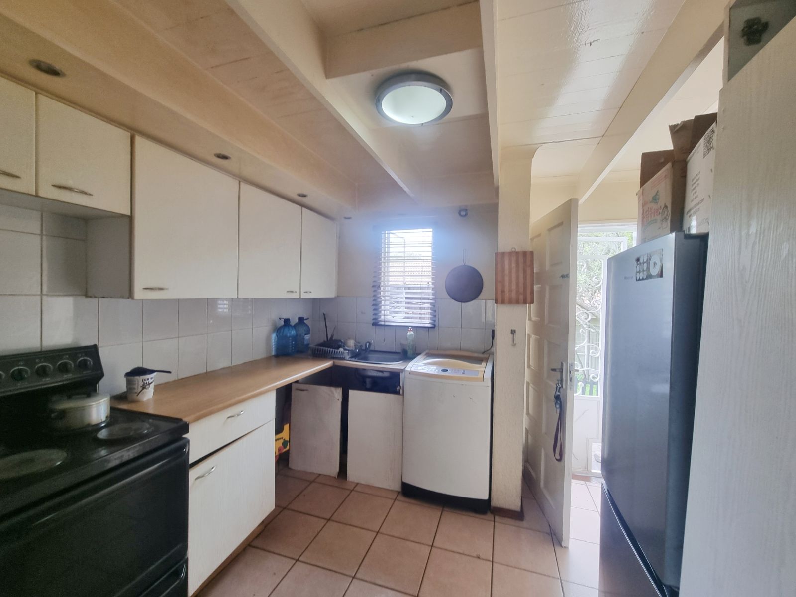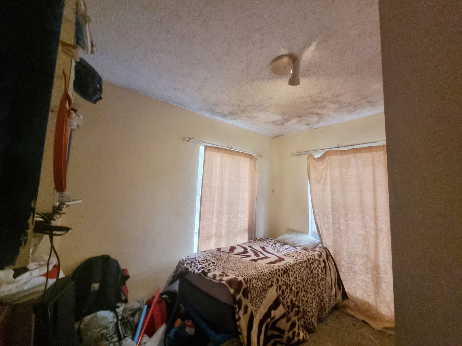 The kitchen offers good cupboard space; however, some kitchen cupboard doors require attention. Bedroom cupboard doors also need maintenance, new carpets are required, and one bedroom has damp on the ceiling, which will need to be addressed.