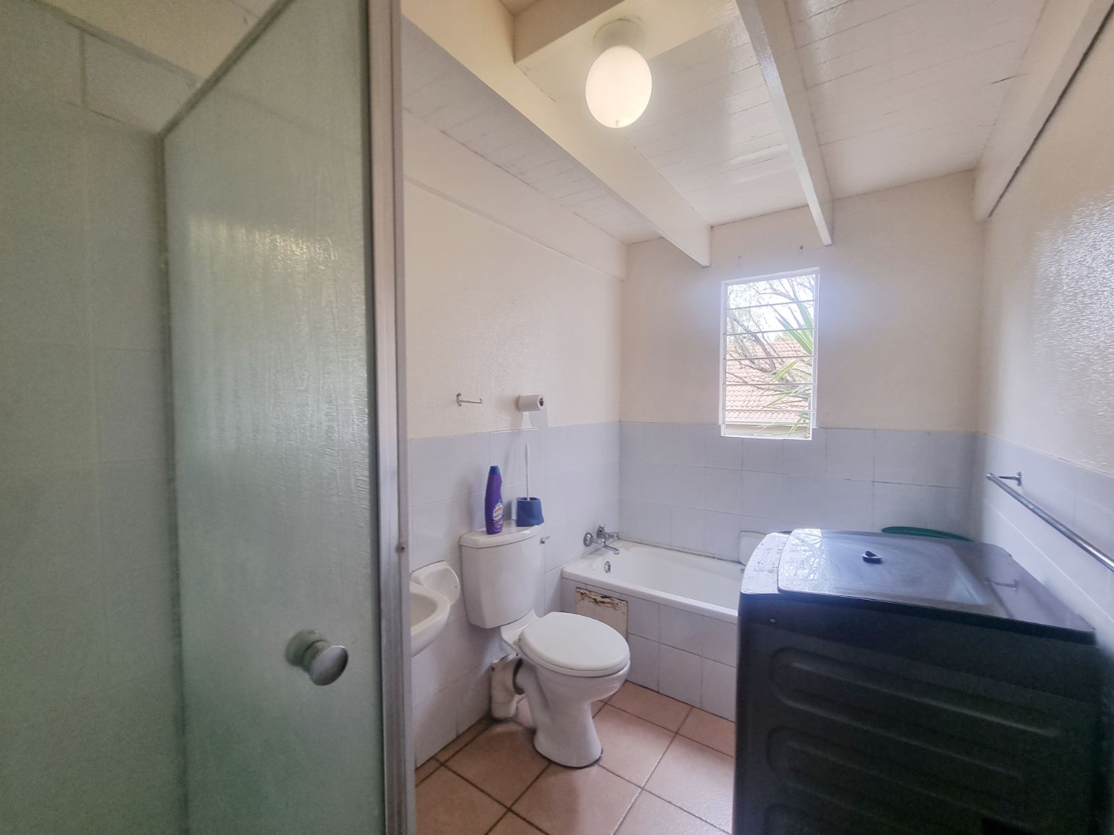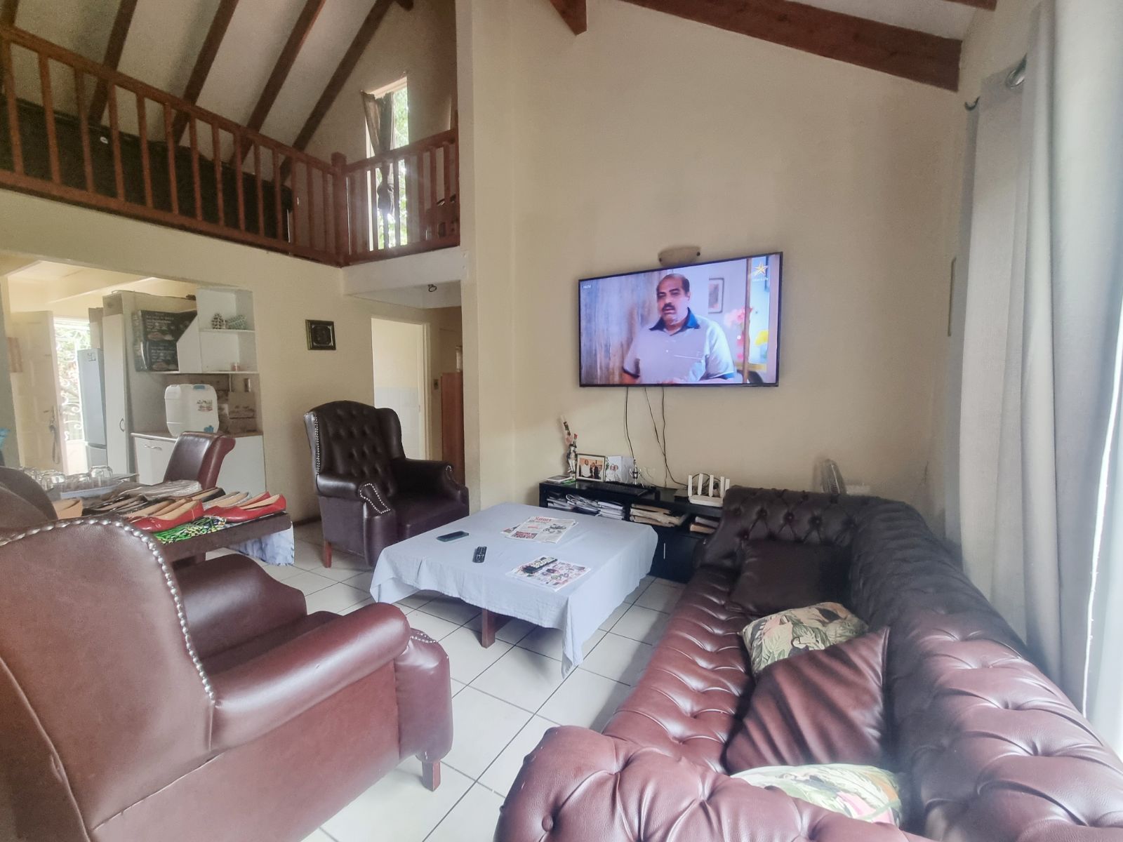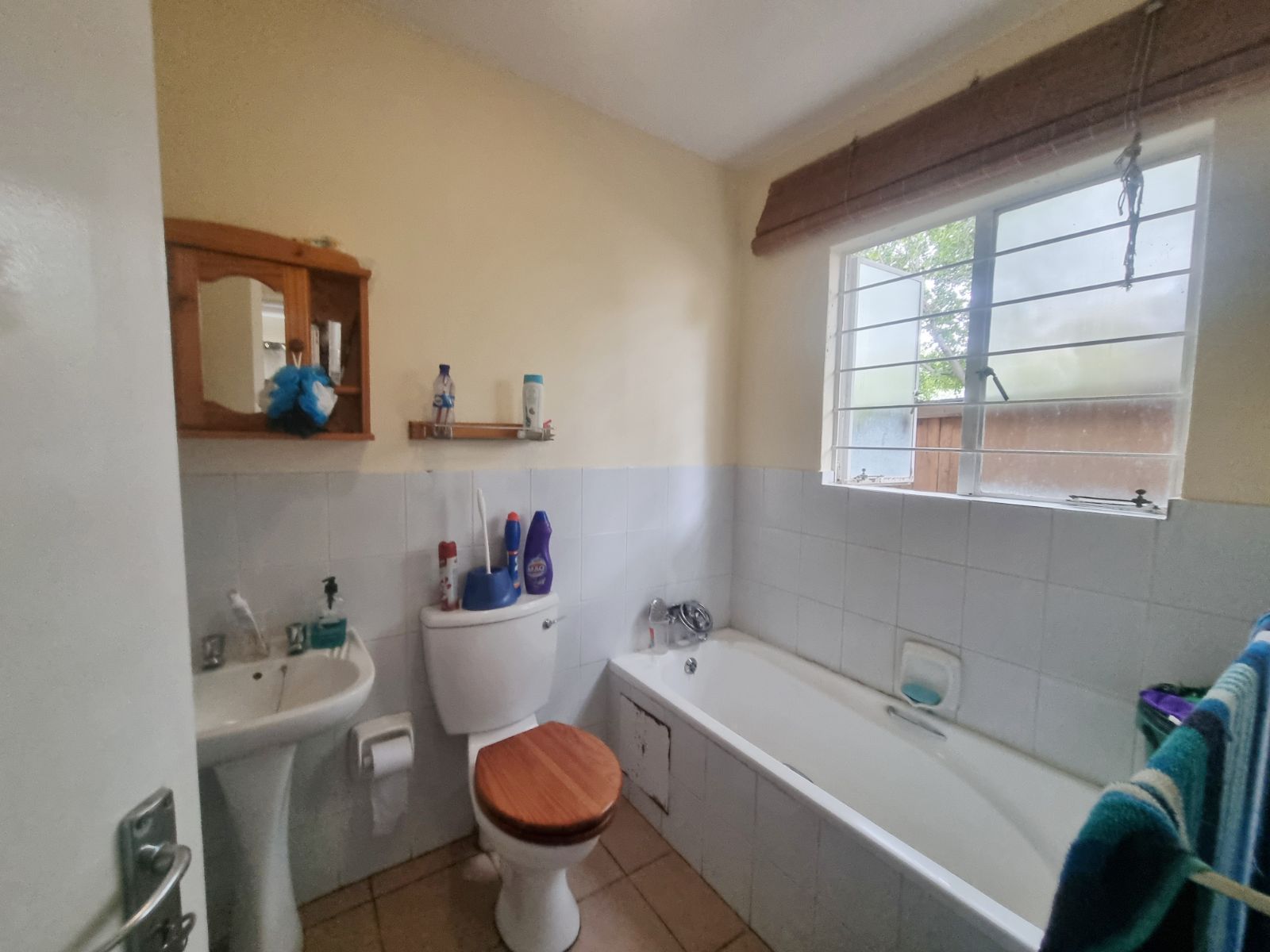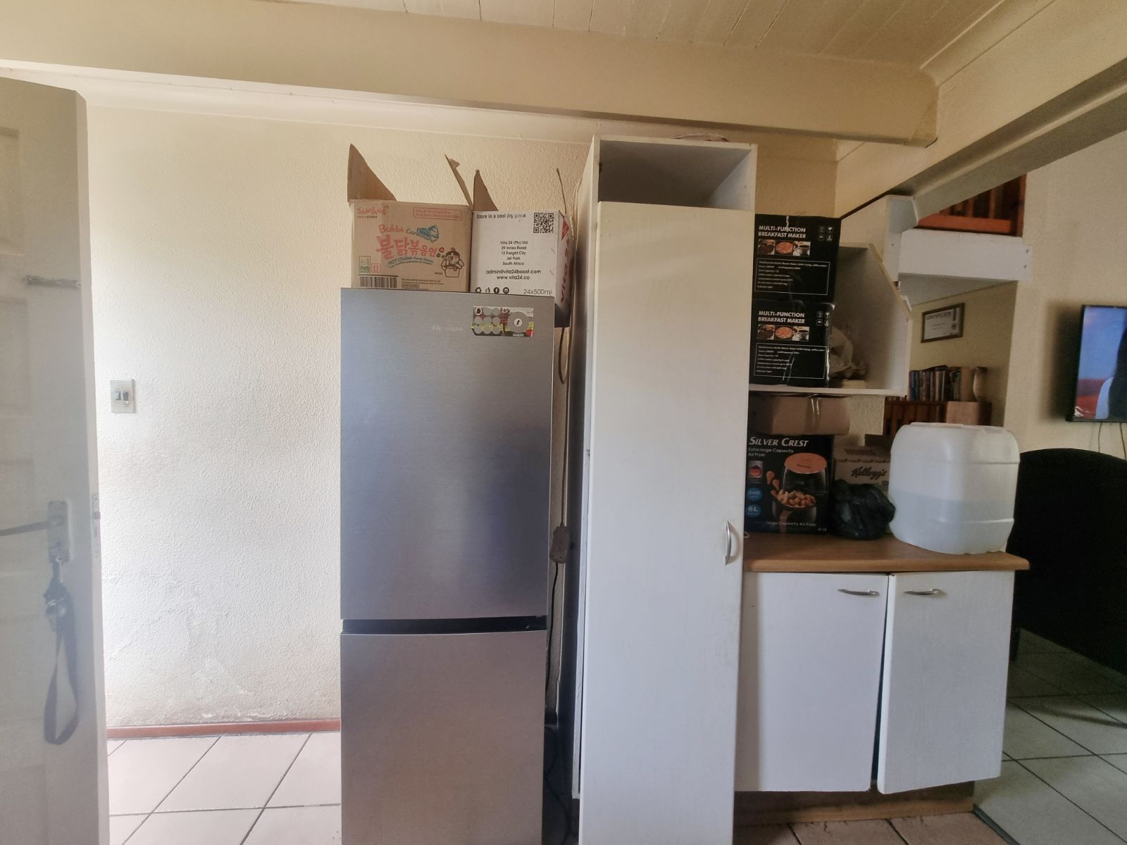 The kitchen offers good cupboard space; however, some kitchen cupboard doors require attention. Bedroom cupboard doors also need maintenance, new carpets are required, and one bedroom has damp on the ceiling, which will need to be addressed.