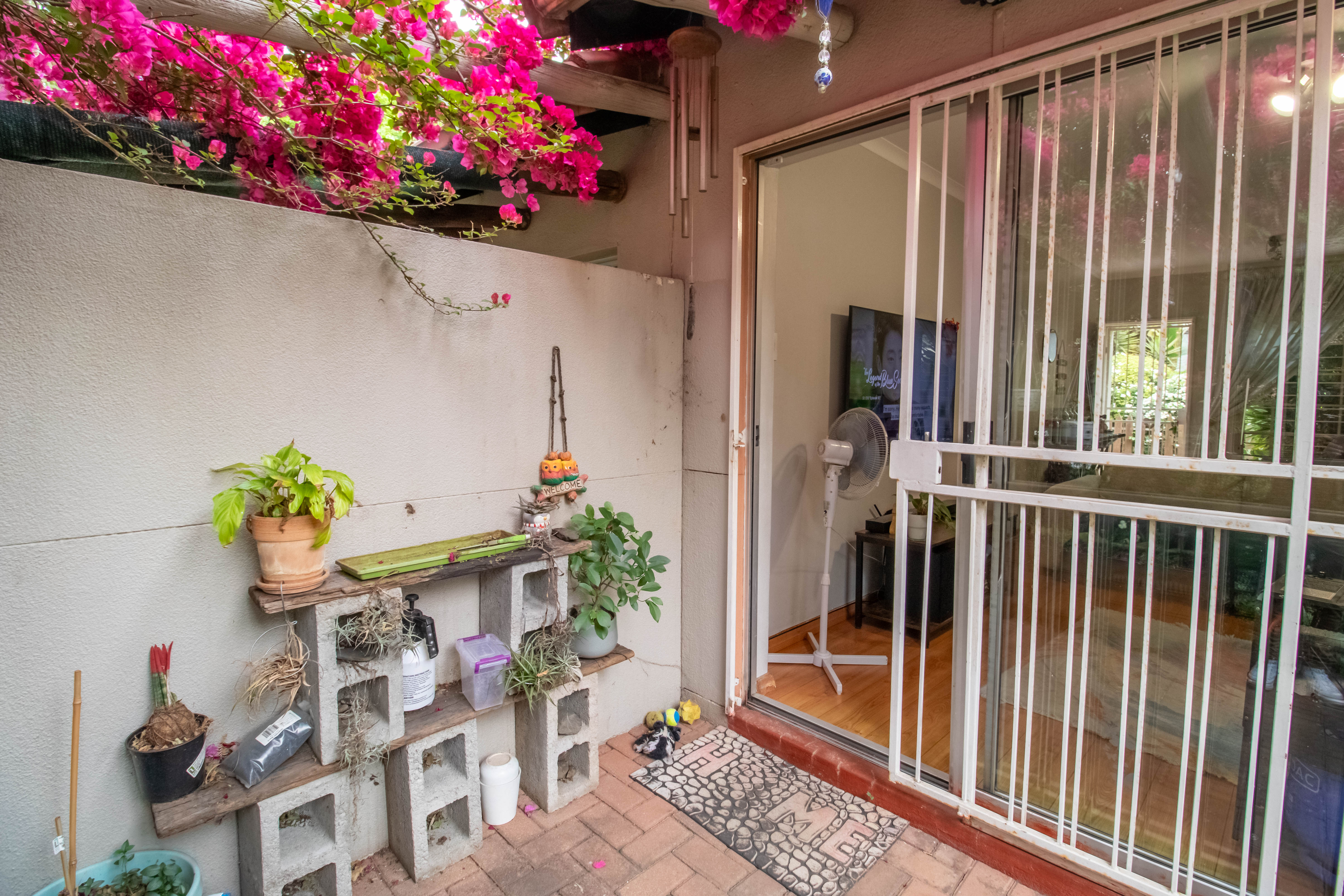 Comprising 2 bedrooms (main ensuite), 2 bathrooms and an open plan kitchen and living area. The kitchen has BIC, a breakfast nook and space for one under counter appliance. The kitchen opens out to a private laundry area, while the lounge opens out to a pretty bougainvillea covered patio and picket fence enclosed garden.