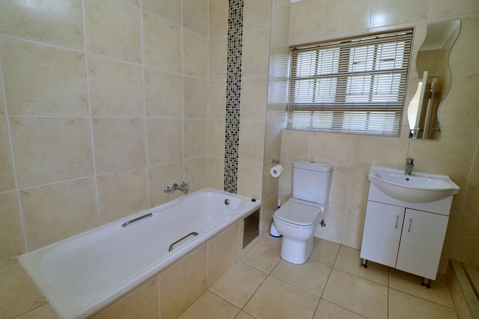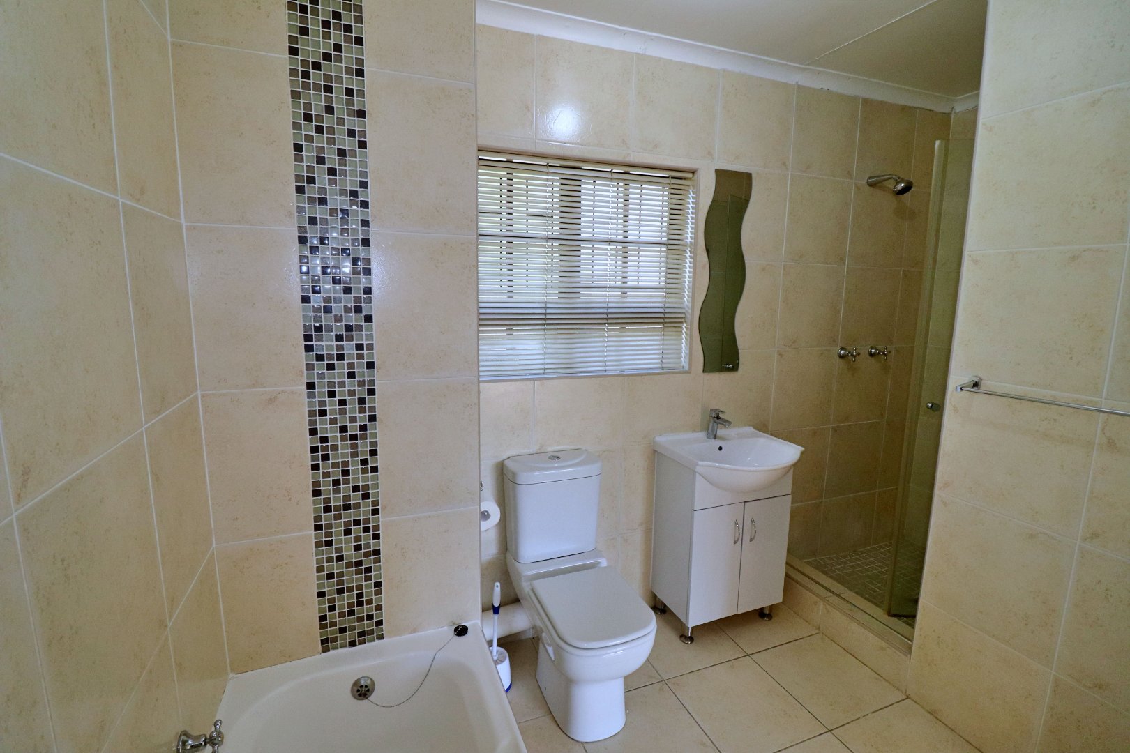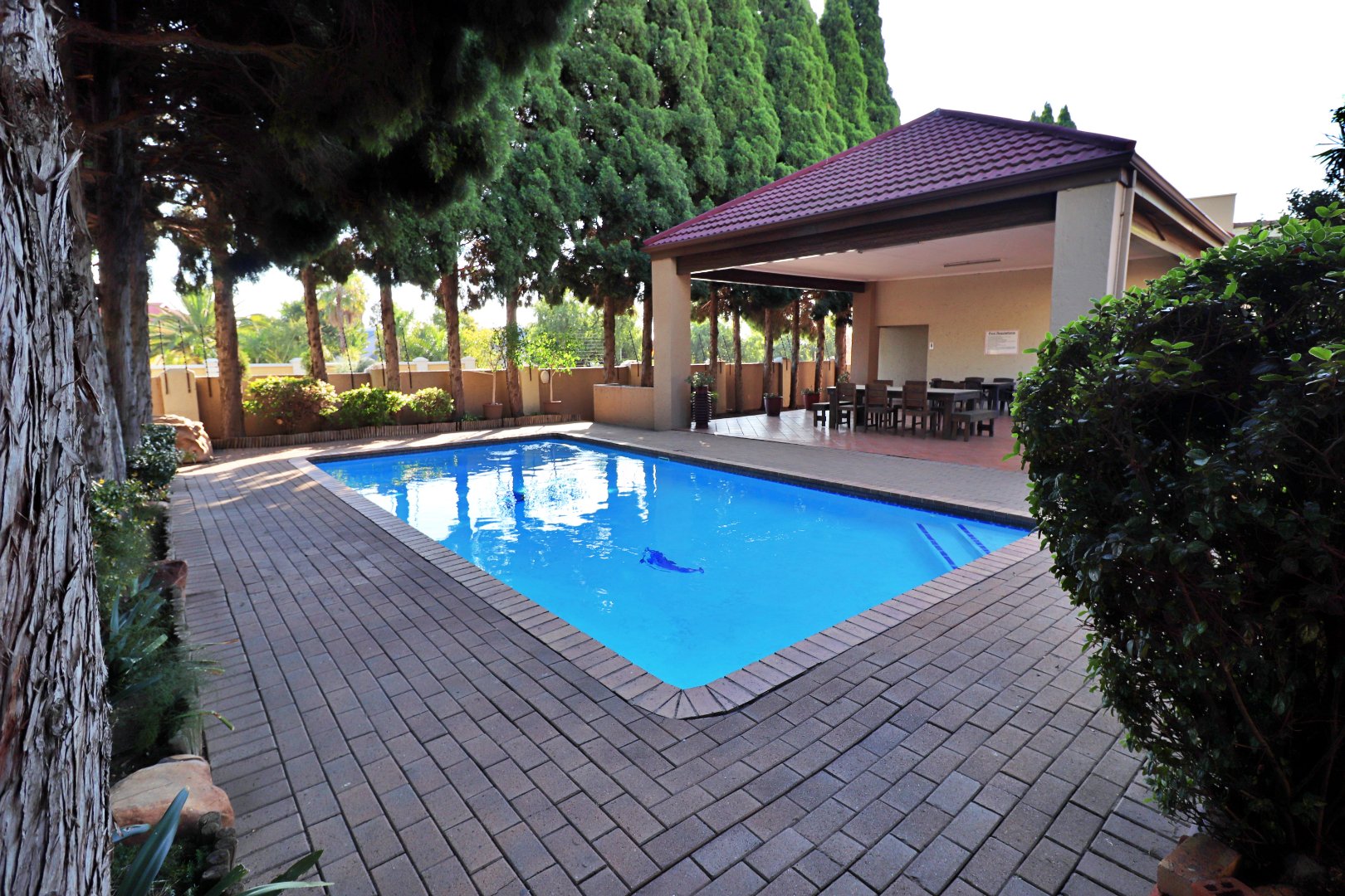 This spacious 1-bedroom flat offers 83 m2 of comfortable and practical living in a secure, double-boomed area with 24-hour guarded access control. The unit features a tiled, open-plan layout with a neat fitted kitchen, a generous lounge, and a modern en-suite bathroom. A study off the bedroom provides a quiet space for work or reading, while a store room under the stairs with washing machine connections adds extra convenience. Residents can enjoy the complex’s shared pool and braai area, and the flat operates on prepaid electricity. This is an ideal home for singles, couples, or investors seeking secure and easy living.