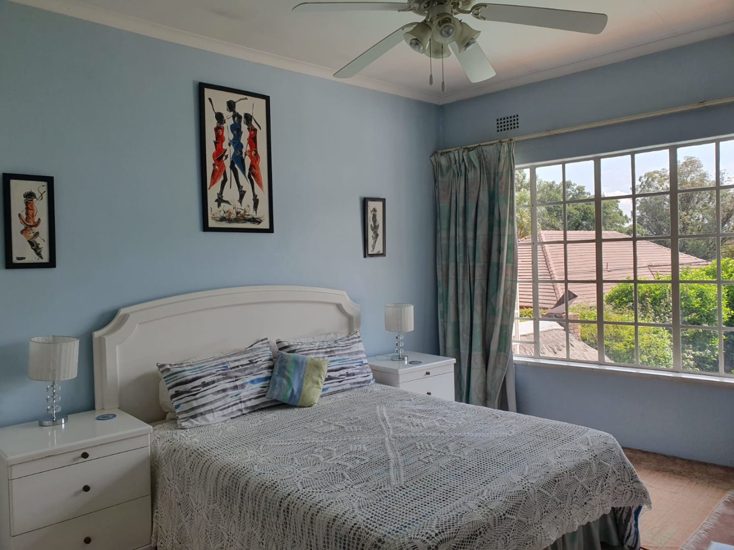 Double automated tandem garage with direct access and 3 extra storage spaces. Domestic quarters with two rooms, a kitchen area, and bathroom facilities. The immaculate garden and solar-heated pool area are well established. A covered entertainment area with a built-in gas braai, with another lapa between the lounge and the flat's garden area.