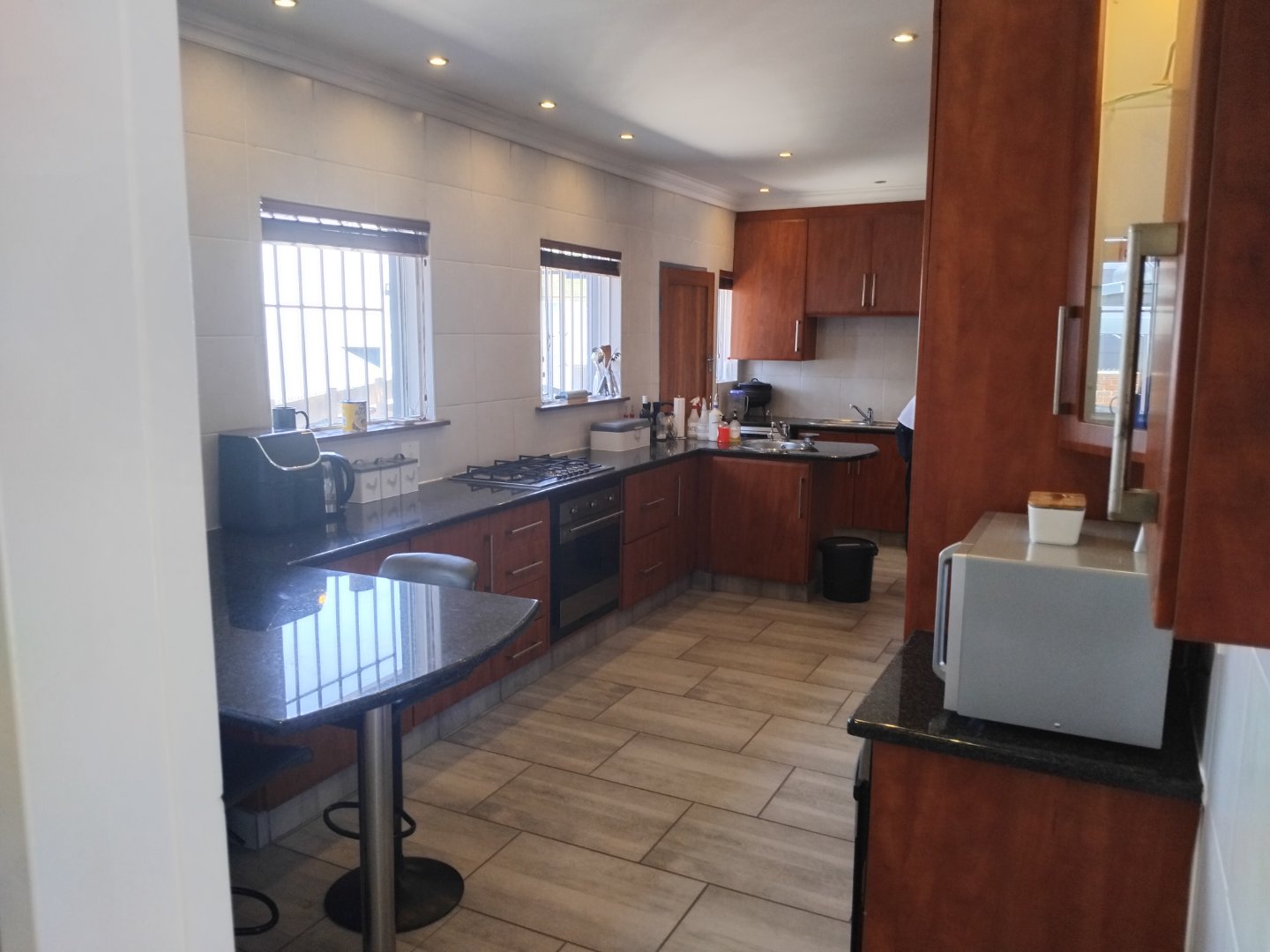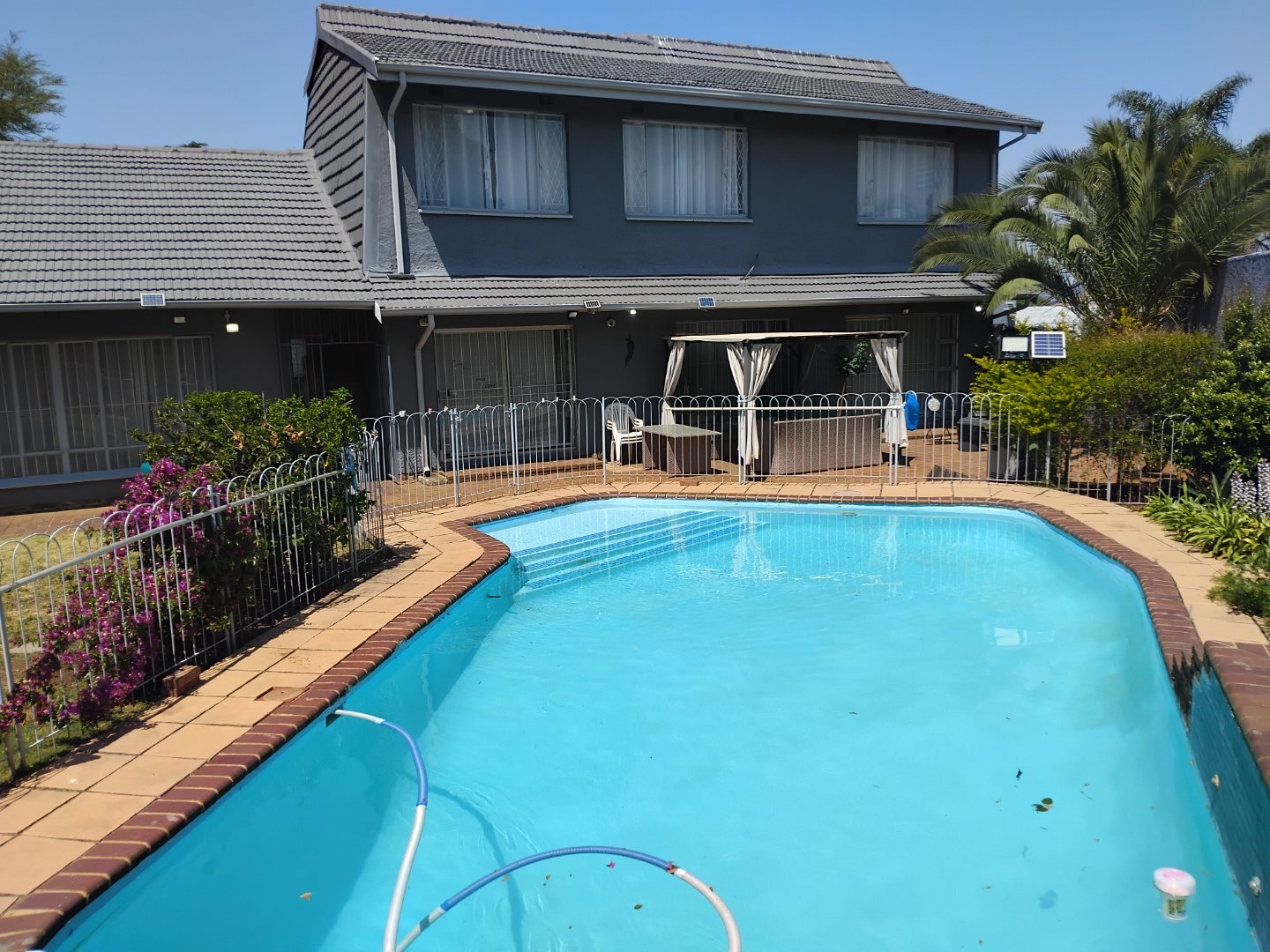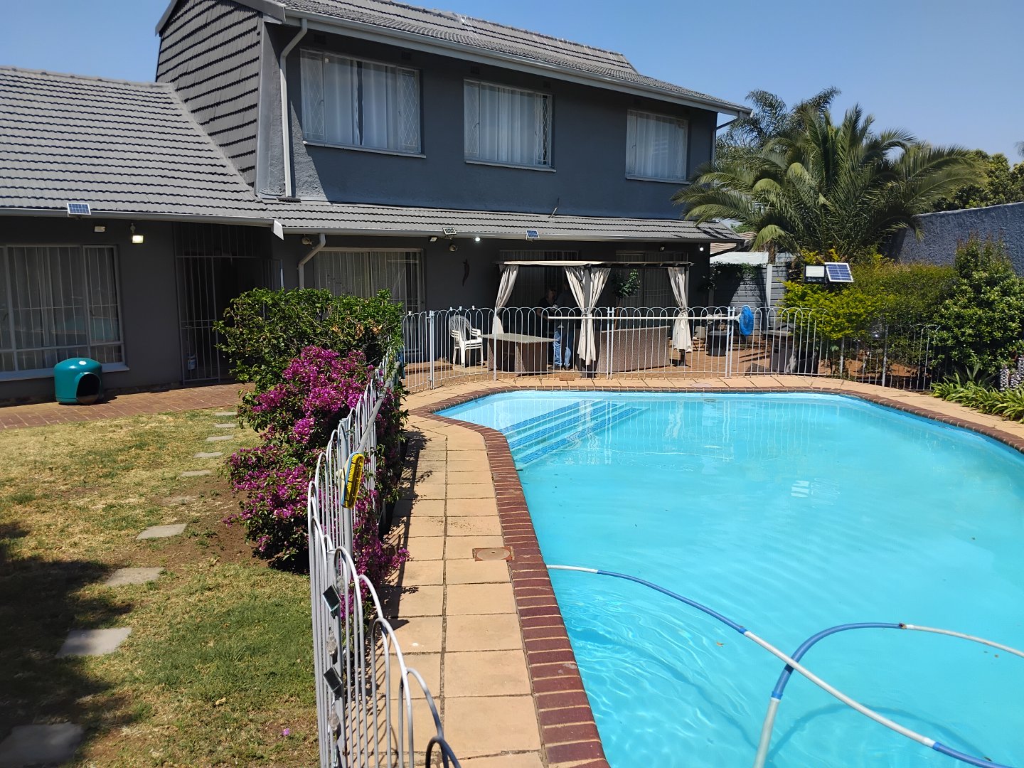 Discover comfort and space in this beautifully maintained 6-bedroom home, perfectly situated on a generous 991 m2 stand. Ideal for a large family, the property boasts 3 bathrooms (including a main en-suite), a granite-top kitchen with a cozy breakfast nook, and a separate dining room for formal meals. The spacious lounge and dedicated study offer plenty of room for relaxation and work. Outside, enjoy a sparkling pool, built-in braai area, and additional parking alongside the garage and carport. With staff accommodation and all the features for convenient family living, this home is a must-see.
