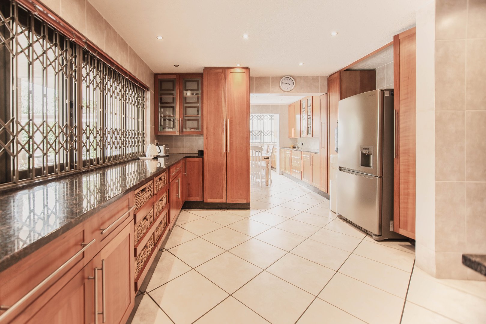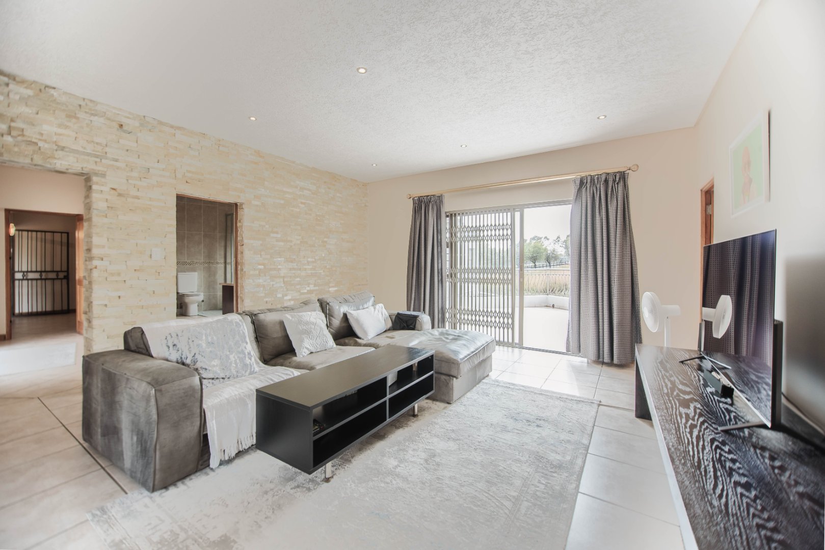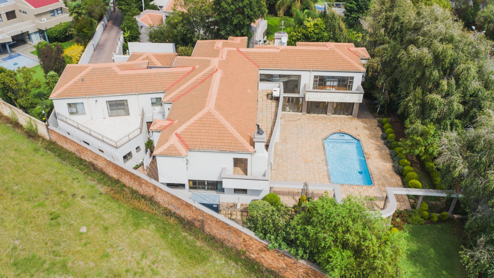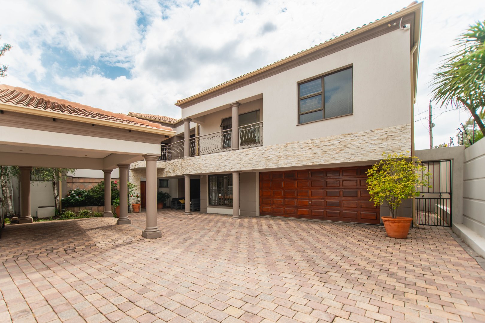 This expansive 5-bedroom home offers the perfect blend of comfort and style, set on a generous 1,664 m2 stand. Featuring multiple living spaces including a lounge, TV room, family room, and a separate dining room, it’s ideal for both everyday living and hosting guests. The modern kitchen, finished with granite counters and a breakfast nook, is complemented by a pub for entertaining. With 4.5 bathrooms, a study, and a main en-suite, there’s ample space for the whole family. Outdoor living is a pleasure with a pool, braai area, and beautiful grounds. Additional features include staff accommodation, double garages, two carports, and extra parking. Enjoy the convenience of prepaid electricity and the comfort of a home designed for both relaxation and entertaining.
