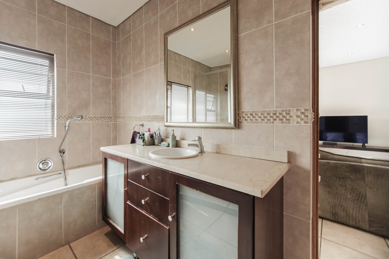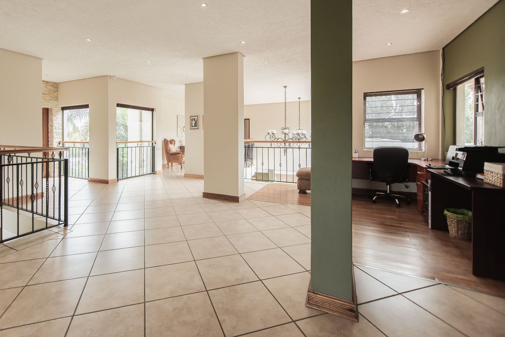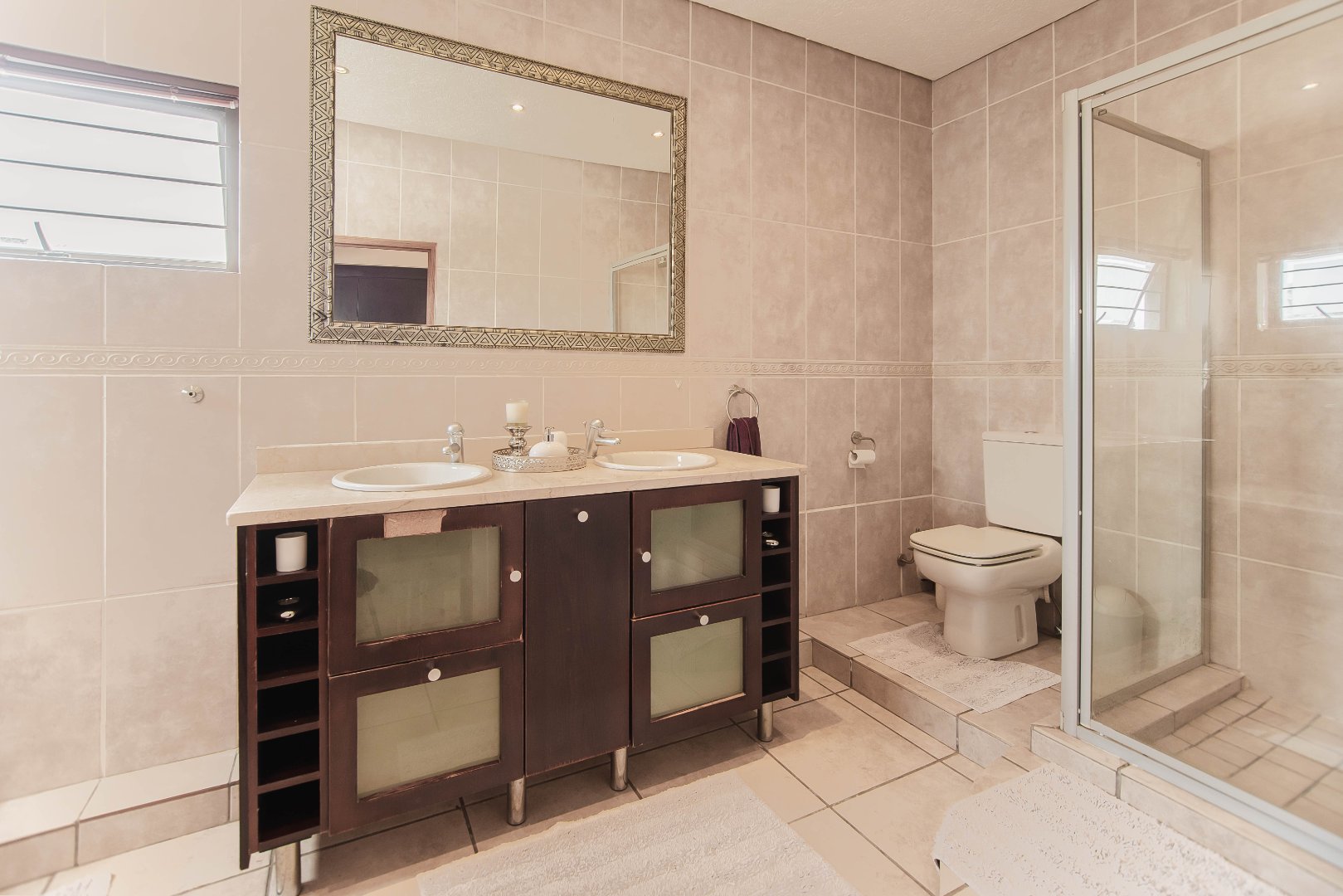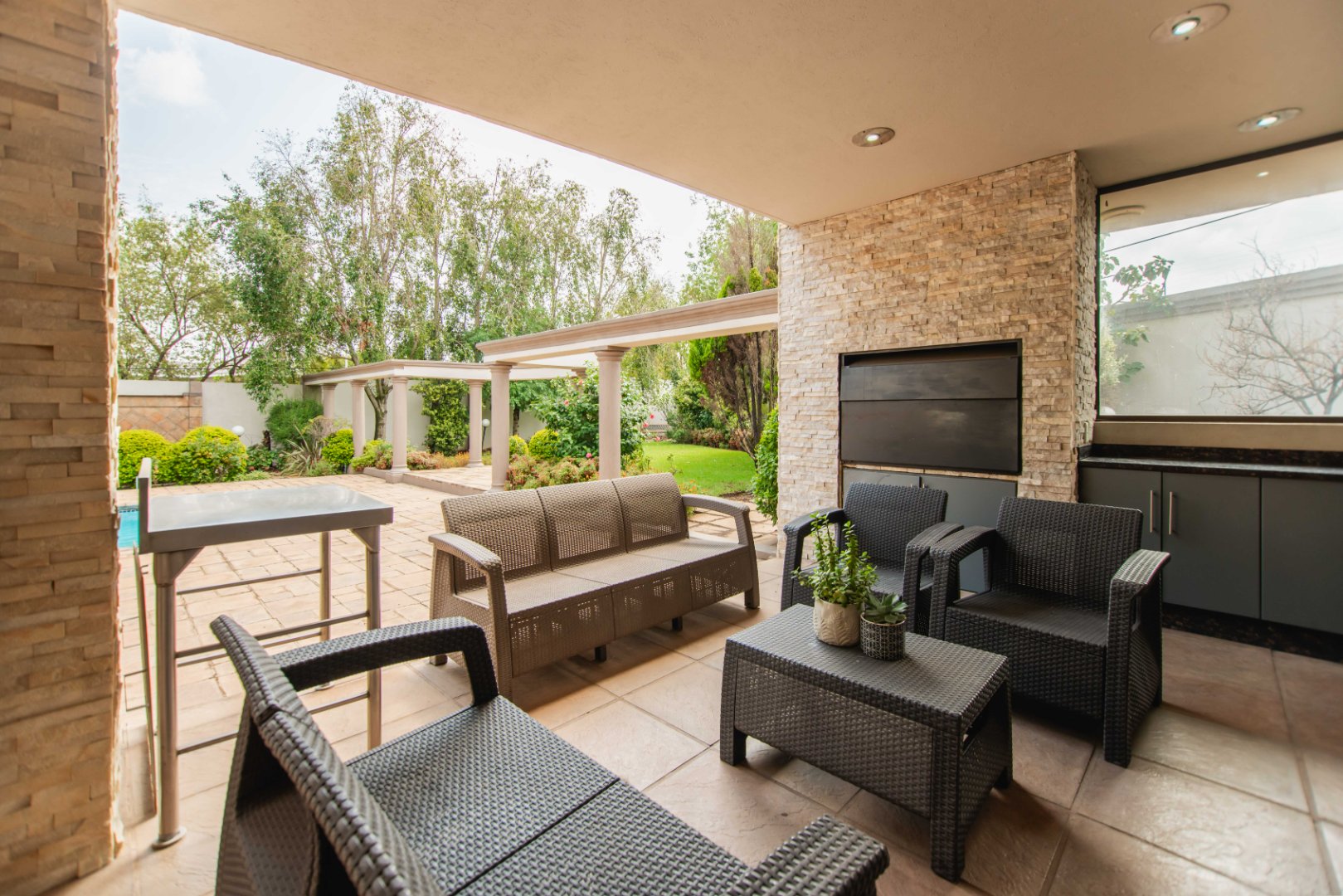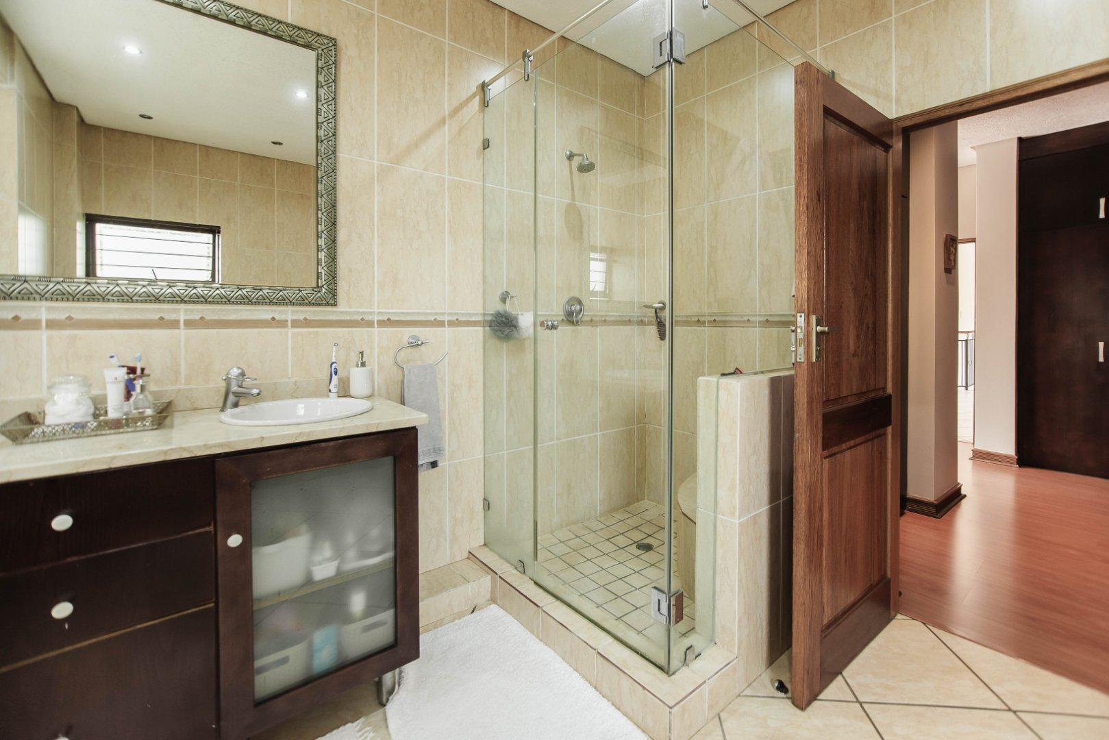 This expansive 5-bedroom home offers the perfect blend of comfort and style, set on a generous 1,664 m2 stand. Featuring multiple living spaces including a lounge, TV room, family room, and a separate dining room, it’s ideal for both everyday living and hosting guests. The modern kitchen, finished with granite counters and a breakfast nook, is complemented by a pub for entertaining. With 4.5 bathrooms, a study, and a main en-suite, there’s ample space for the whole family. Outdoor living is a pleasure with a pool, braai area, and beautiful grounds. Additional features include staff accommodation, double garages, two carports, and extra parking. Enjoy the convenience of prepaid electricity and the comfort of a home designed for both relaxation and entertaining.