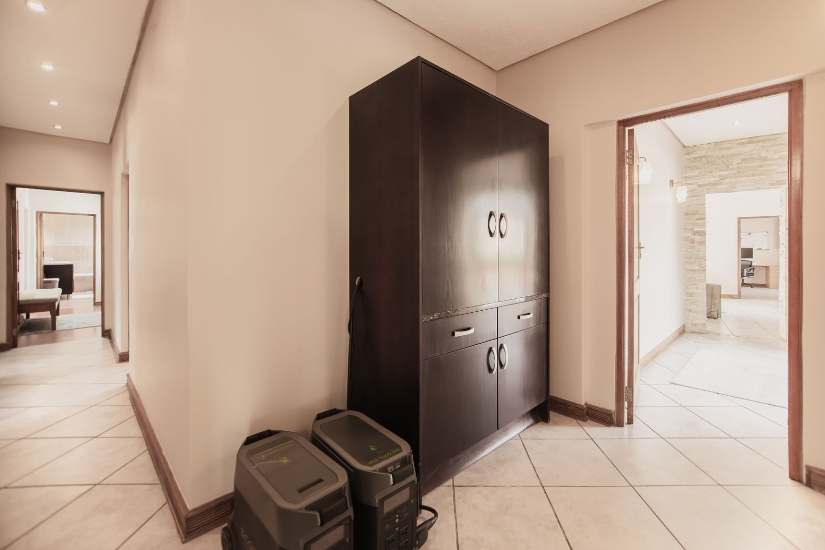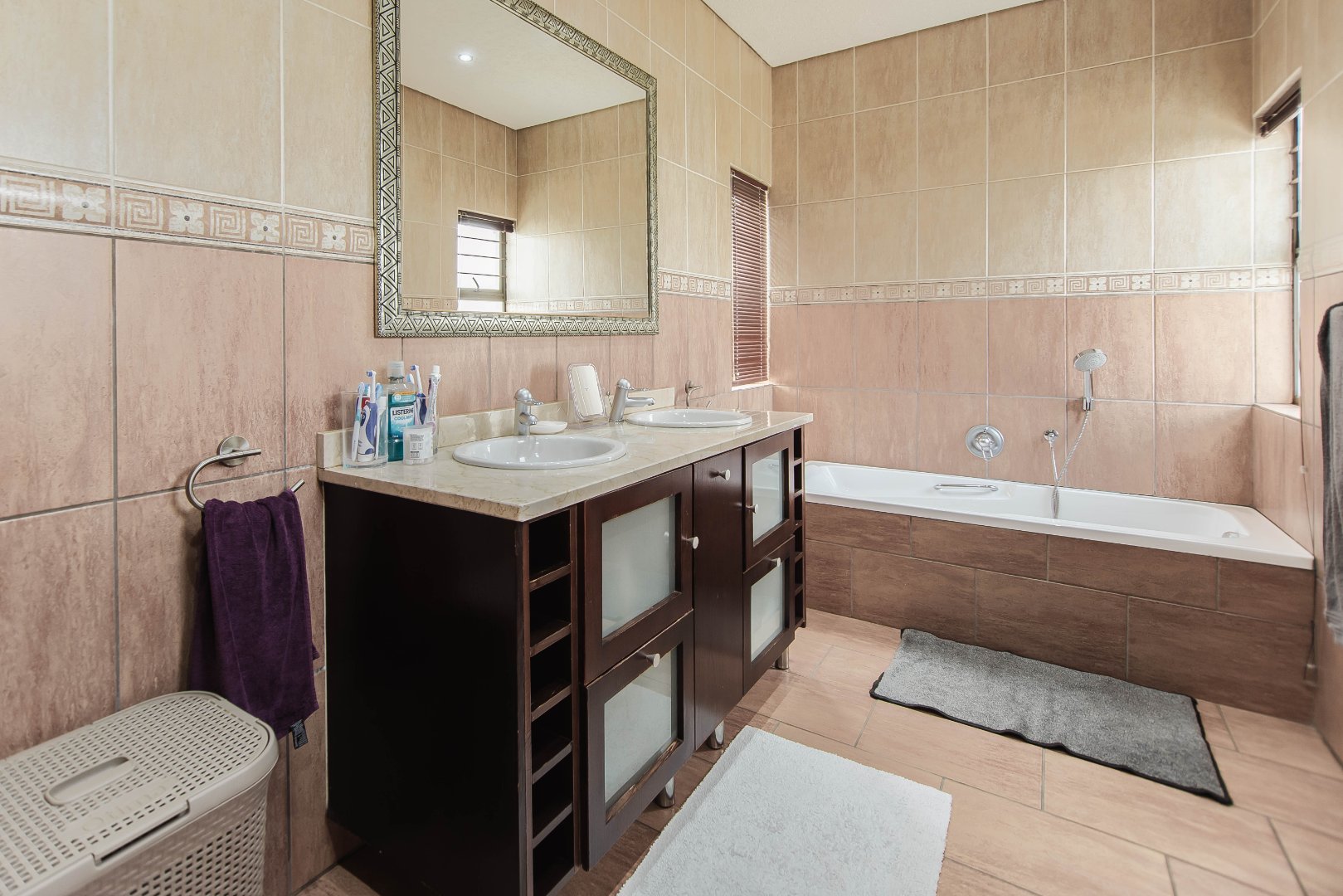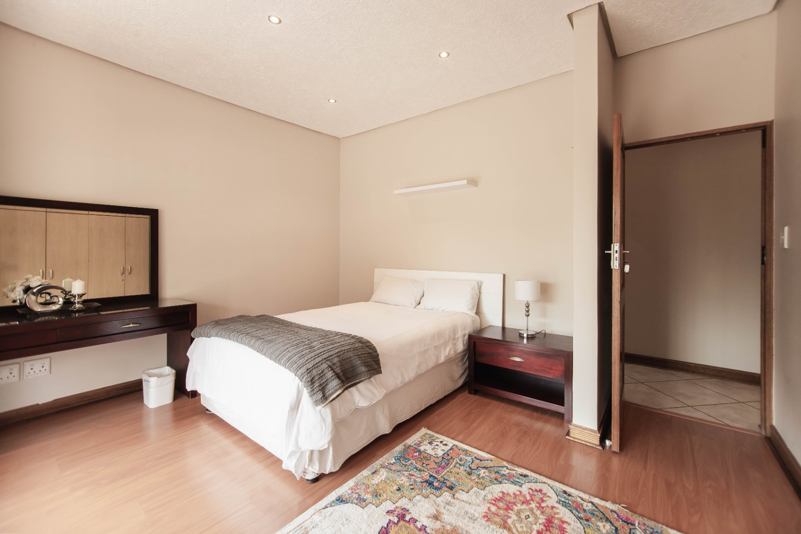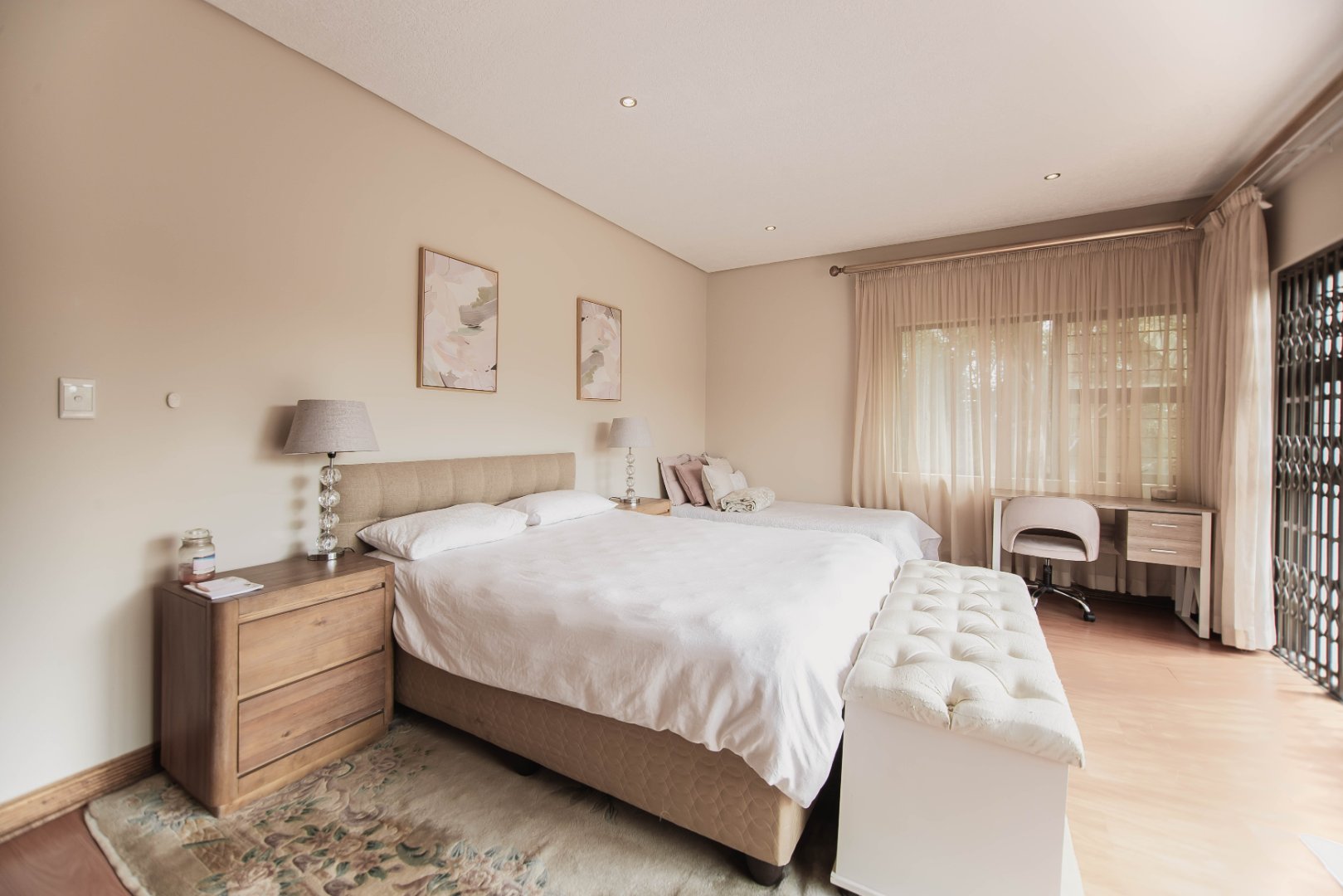 This expansive 5-bedroom home offers the perfect blend of comfort and style, set on a generous 1,664 m2 stand. Featuring multiple living spaces including a lounge, TV room, family room, and a separate dining room, it’s ideal for both everyday living and hosting guests. The modern kitchen, finished with granite counters and a breakfast nook, is complemented by a pub for entertaining. With 4.5 bathrooms, a study, and a main en-suite, there’s ample space for the whole family. Outdoor living is a pleasure with a pool, braai area, and beautiful grounds. Additional features include staff accommodation, double garages, two carports, and extra parking. Enjoy the convenience of prepaid electricity and the comfort of a home designed for both relaxation and entertaining.