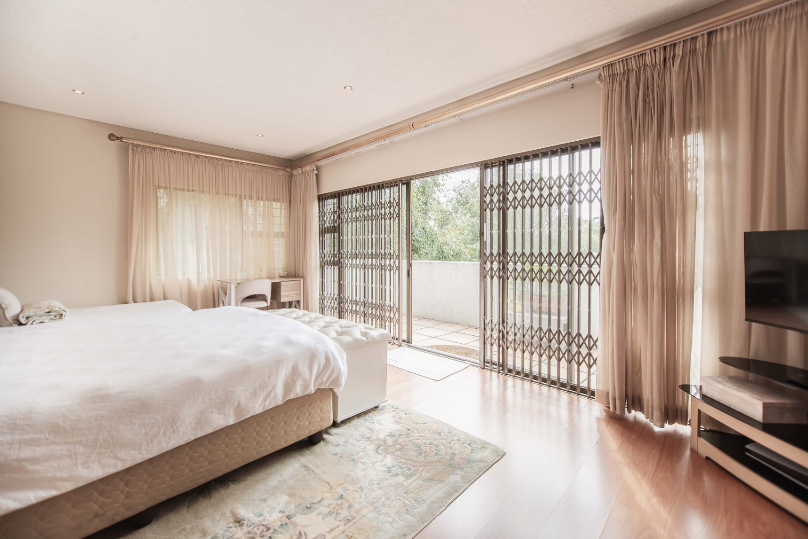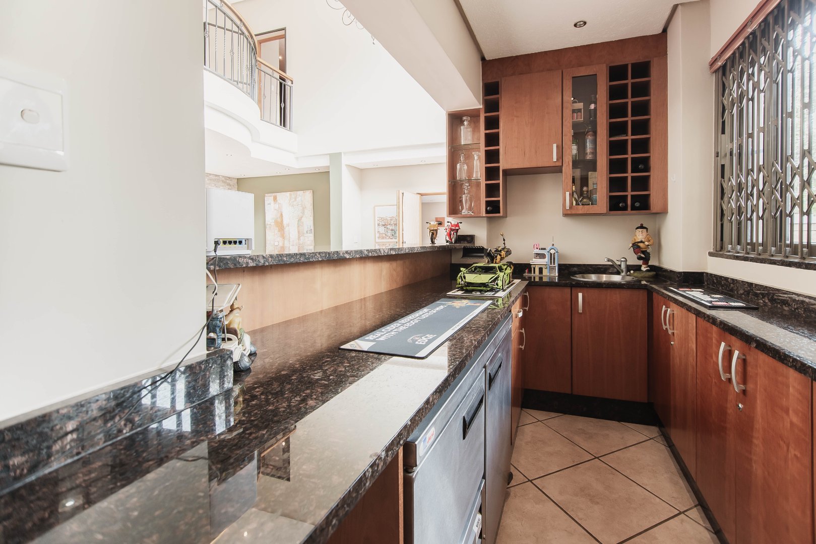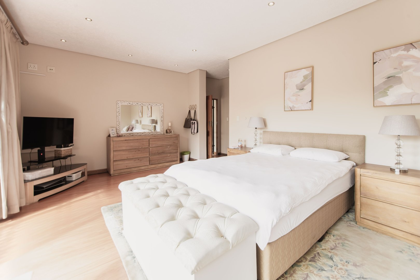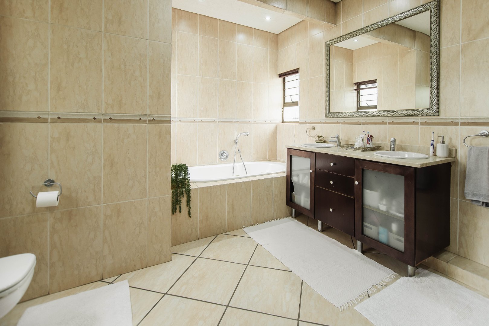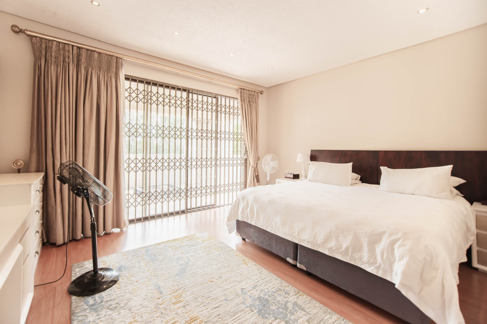 This expansive 5-bedroom home offers the perfect blend of comfort and style, set on a generous 1,664 m2 stand. Featuring multiple living spaces including a lounge, TV room, family room, and a separate dining room, it’s ideal for both everyday living and hosting guests. The modern kitchen, finished with granite counters and a breakfast nook, is complemented by a pub for entertaining. With 4.5 bathrooms, a study, and a main en-suite, there’s ample space for the whole family. Outdoor living is a pleasure with a pool, braai area, and beautiful grounds. Additional features include staff accommodation, double garages, two carports, and extra parking. Enjoy the convenience of prepaid electricity and the comfort of a home designed for both relaxation and entertaining.