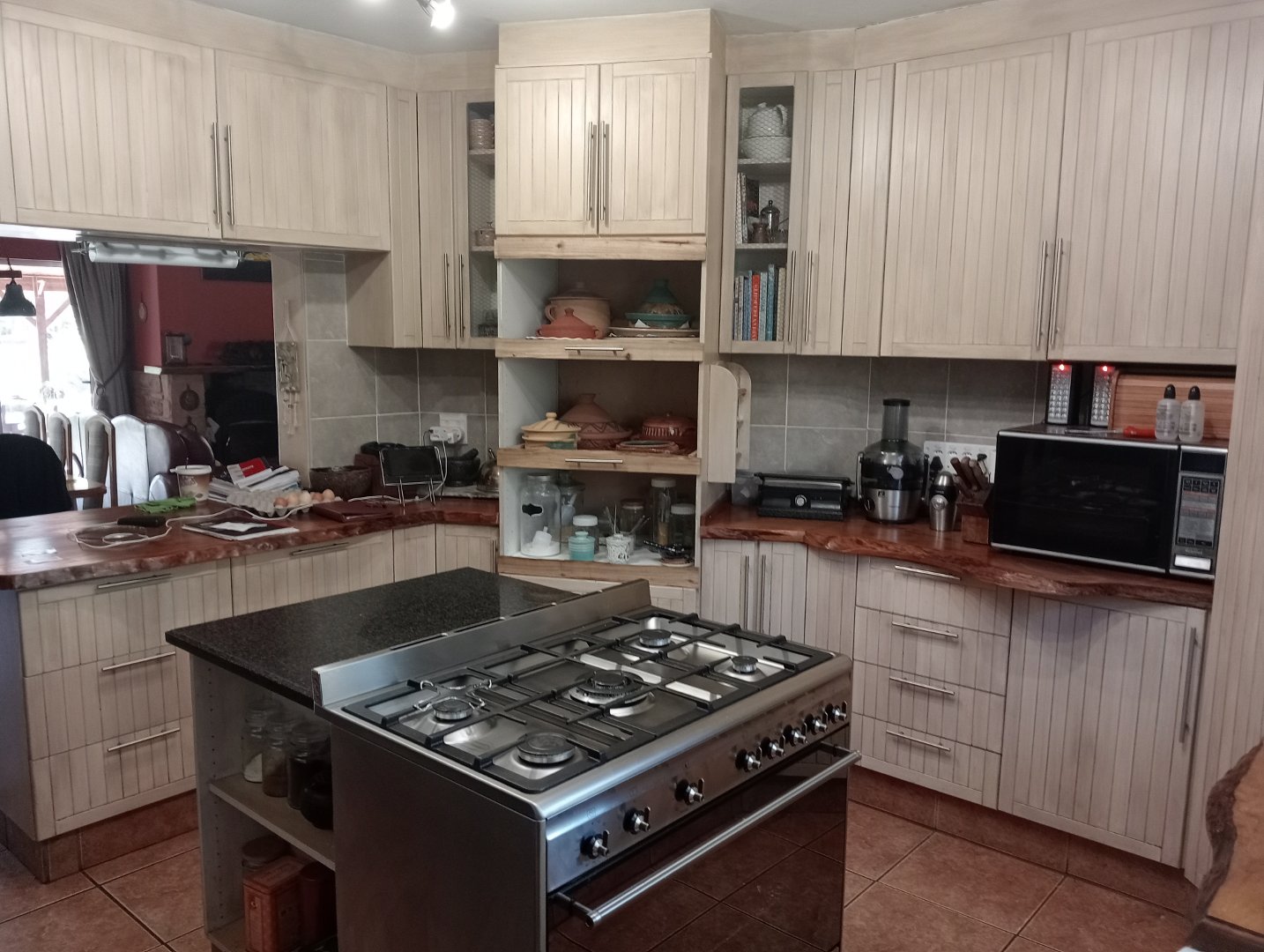 Kitchen is Custom designed with Plain tree Counter tops, Modern with a farm style feel, Built in Cupboards, Centre Island, Pantry, Scullrey, Laundry room with Fitting for all appliances, washing machine, tumble dryer, dishwasher.