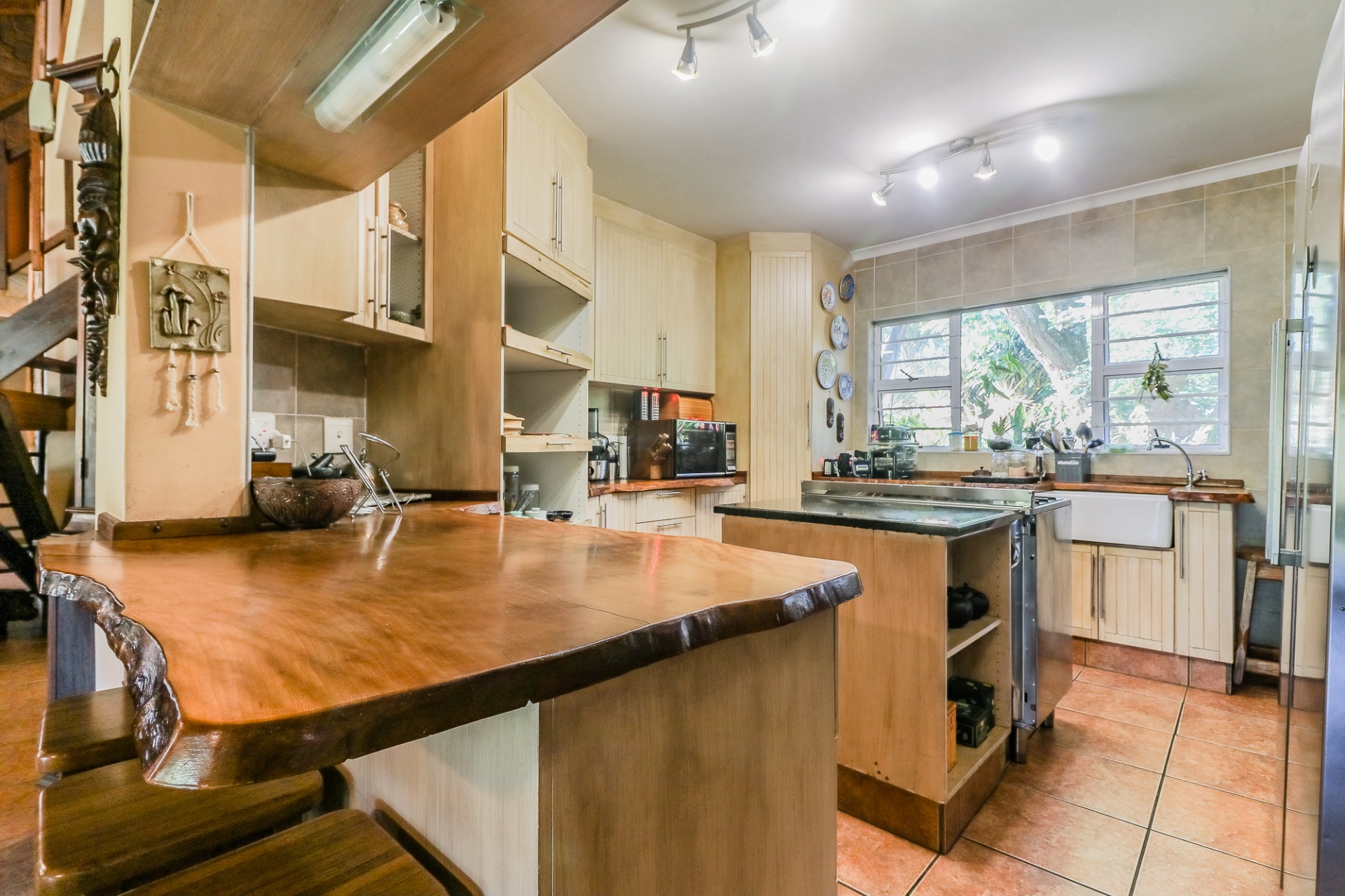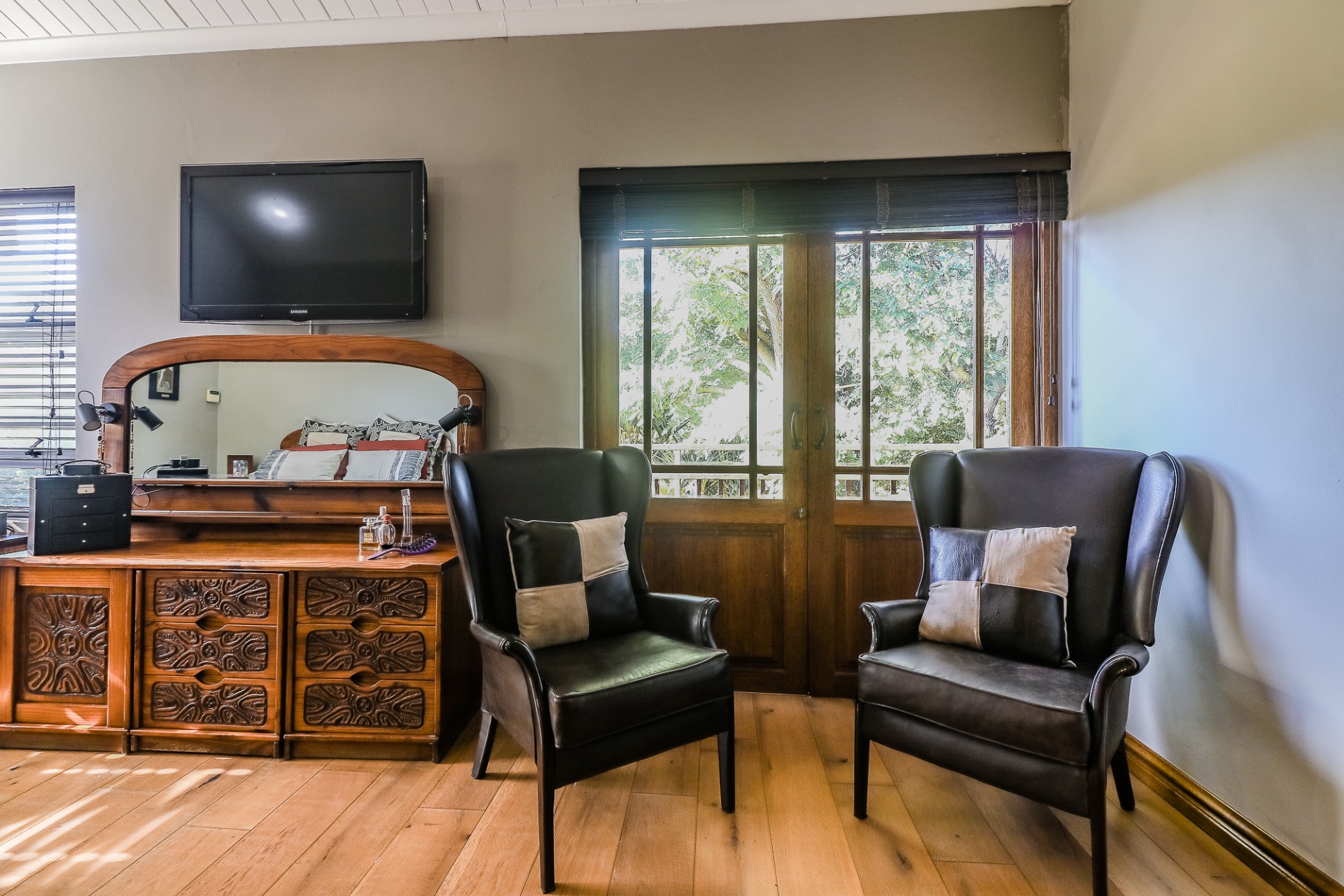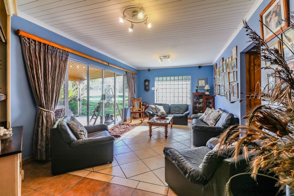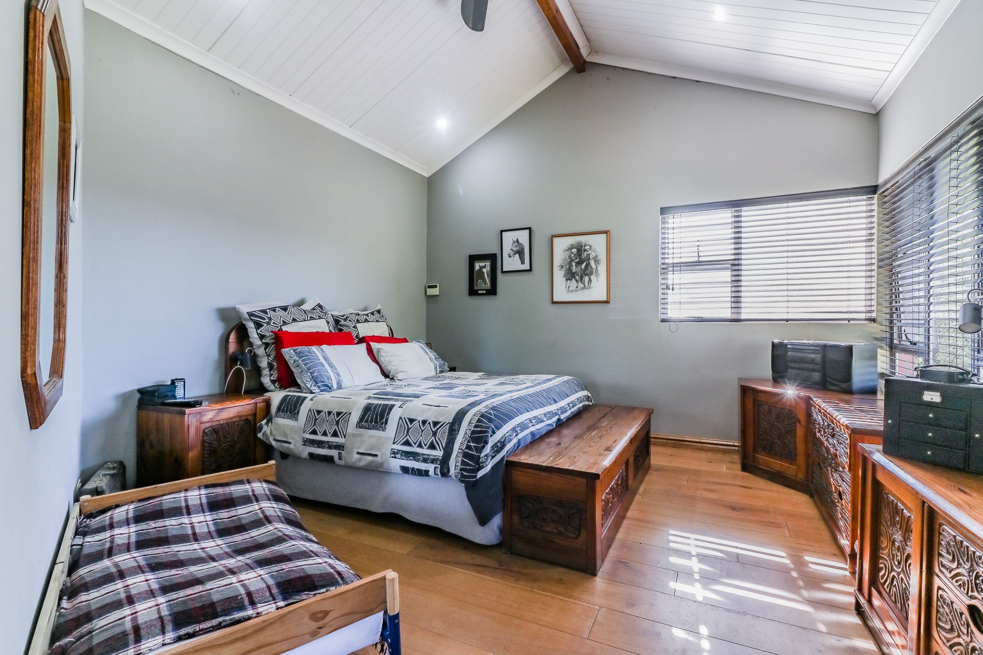 The pub, open plan dining room & lounge with feature fireplace offer warmth, charm & opens onto a deep all weather verandah with built braai. Accessed via large sliding glass doors, It runs the entire length of the house & extends onto the garden with pool & feature waterfall.