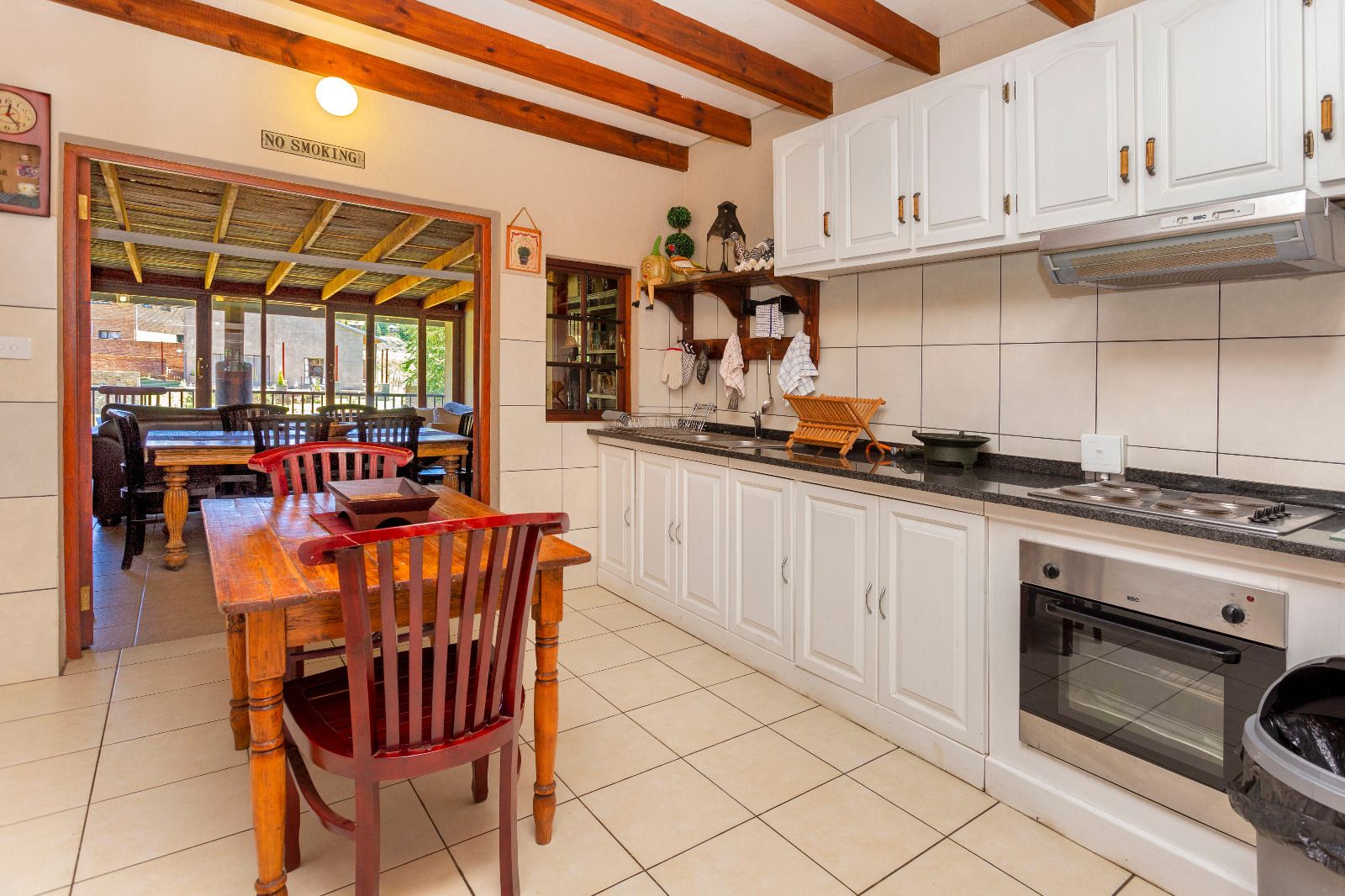 The property’s design, including wooden beam ceilings, a spacious veranda with stunning highveld views, and a picturesque garden, enhances its charm and appeal. Investors will appreciate the well-maintained condition and aesthetic appeal that make it a turnkey investment opportunity