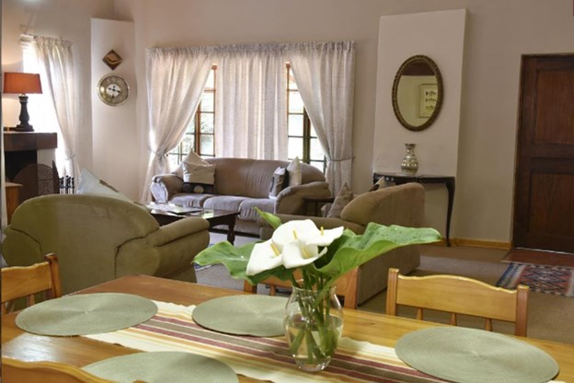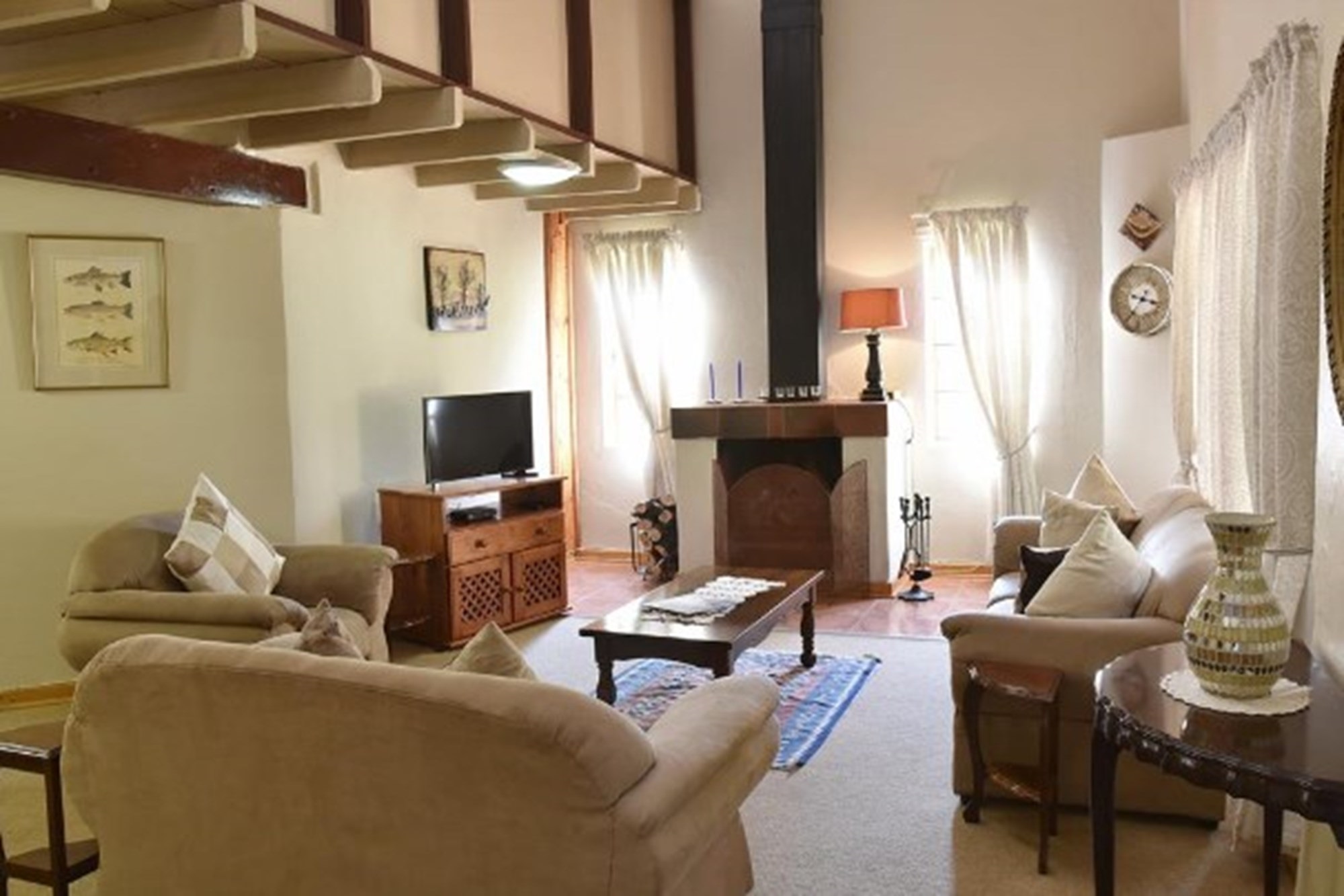 The property features three distinct, self-contained units designed to accommodate a variety of group sizes and preferences. Options include a two-sleeper unit, a four-sleeper unit, and a six-sleeper unit. Each unit includes a fully equipped kitchen, comfortable lounge and dining areas, cozy fireplaces for cool evenings, and DSTV for entertainment. Outdoors, guests can enjoy patios with braai facilities and a large garden, complete with a children’s play area for families.