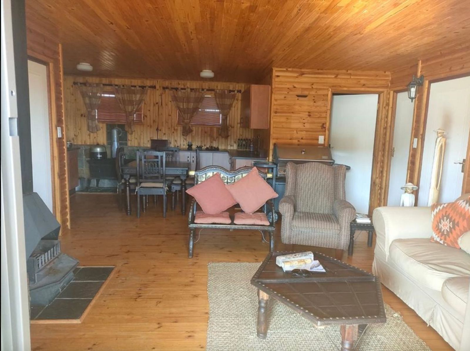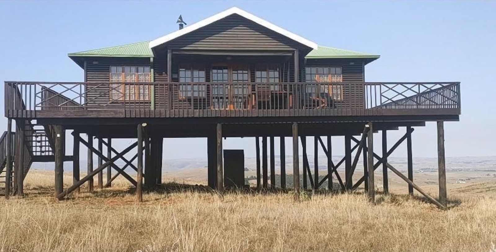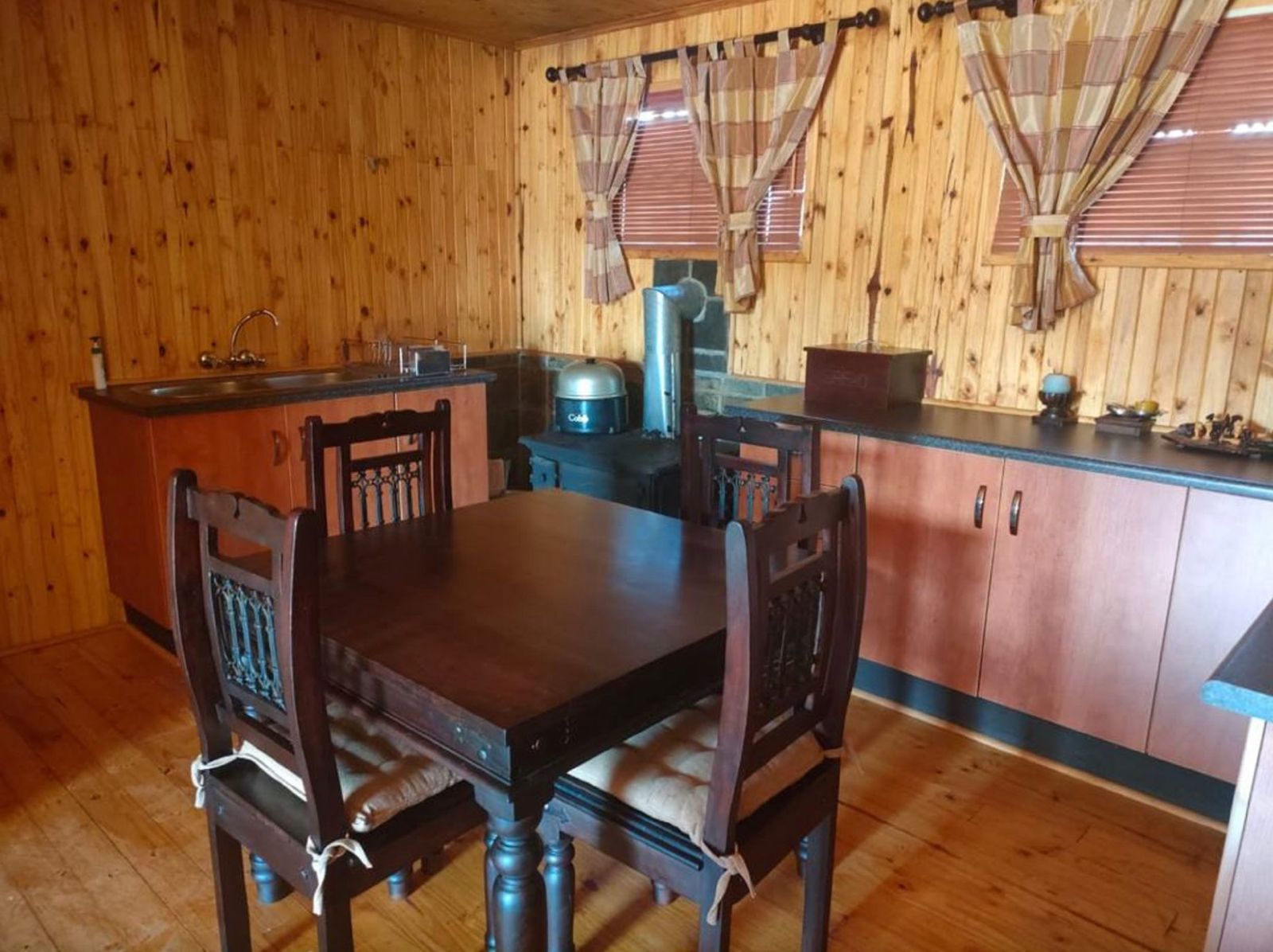A wooden log cabin that is built on a 330ha private estate consisting of 15 dams and