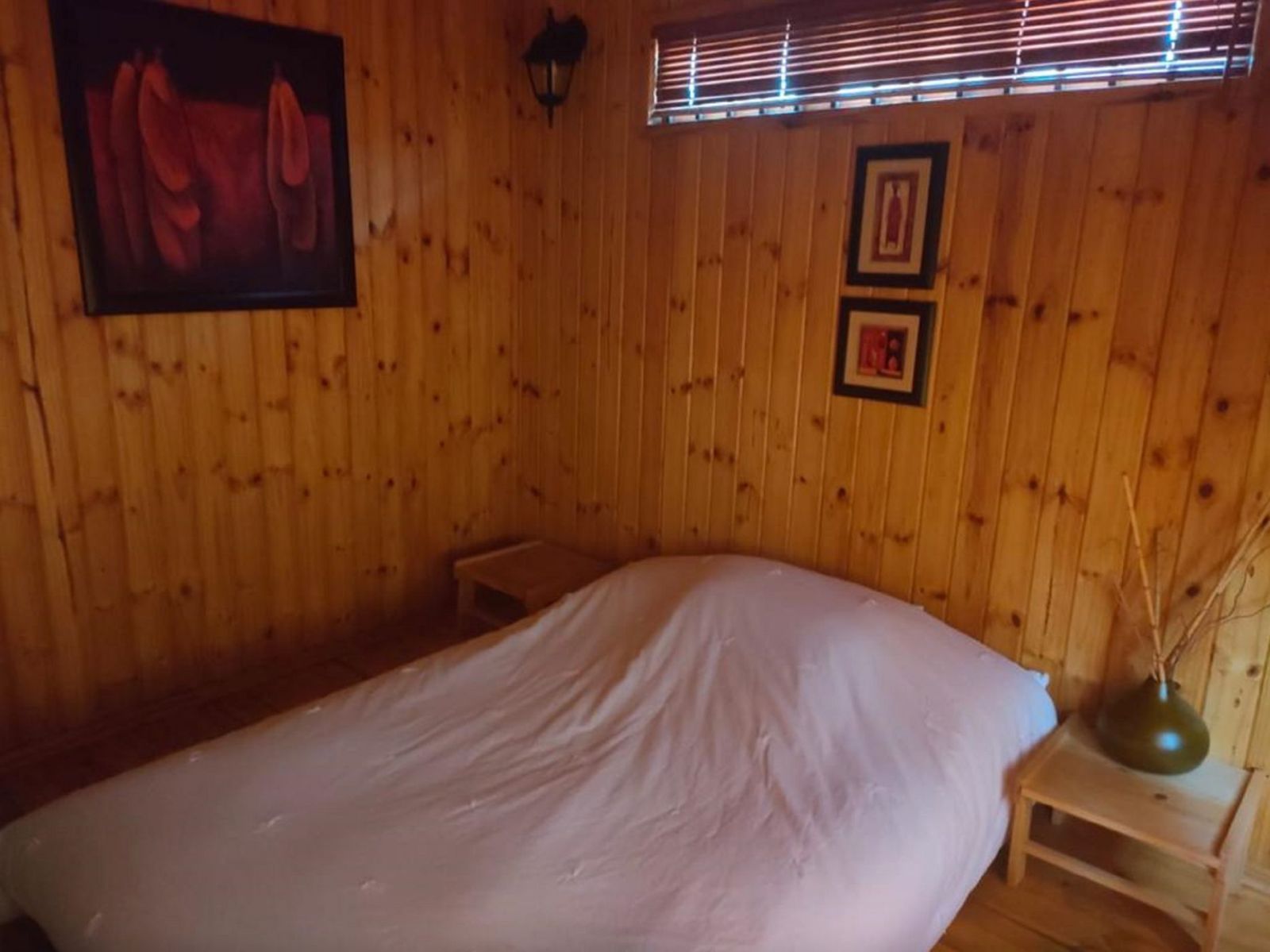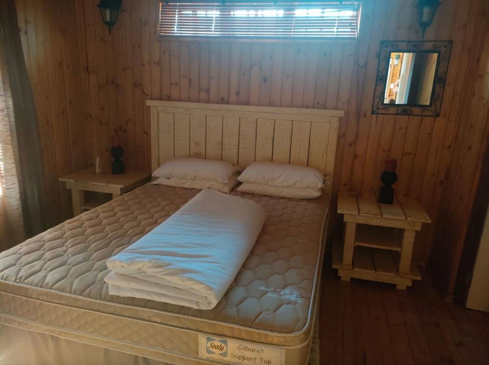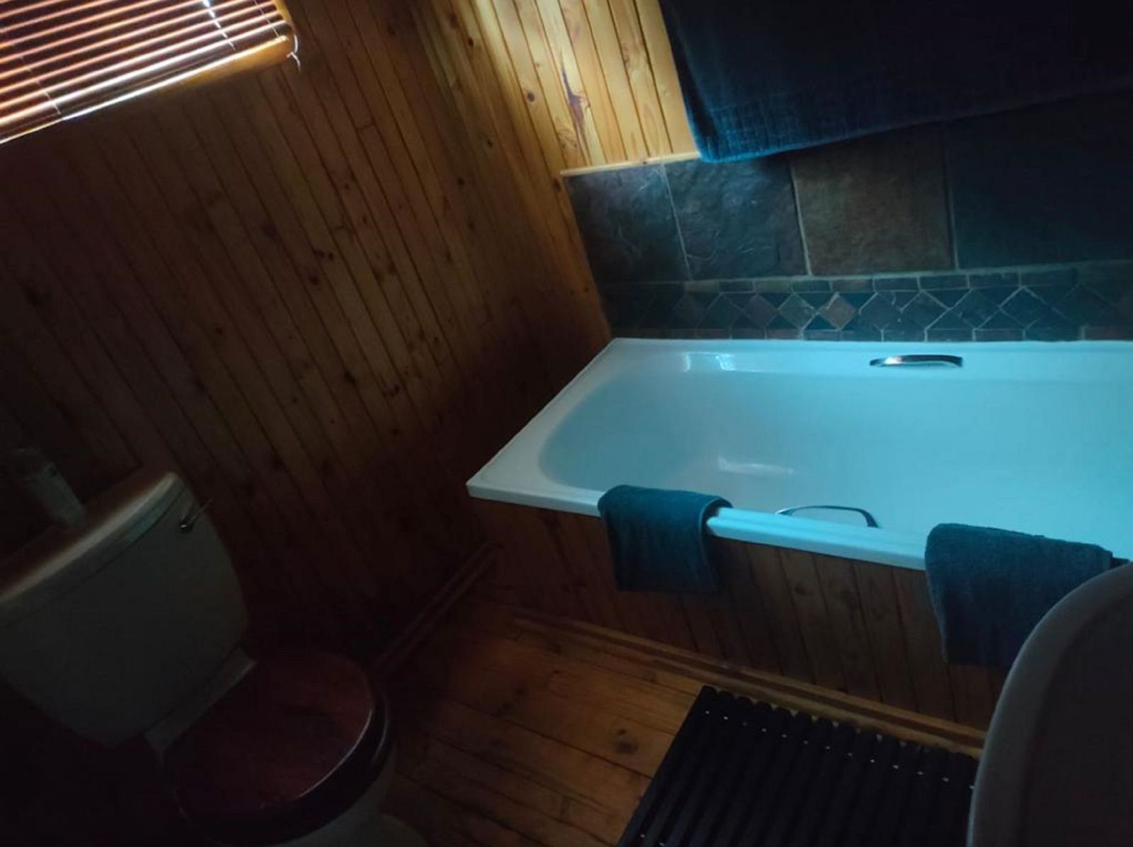 A wooden log cabin that is built on a 330ha private estate consisting of 15 dams and