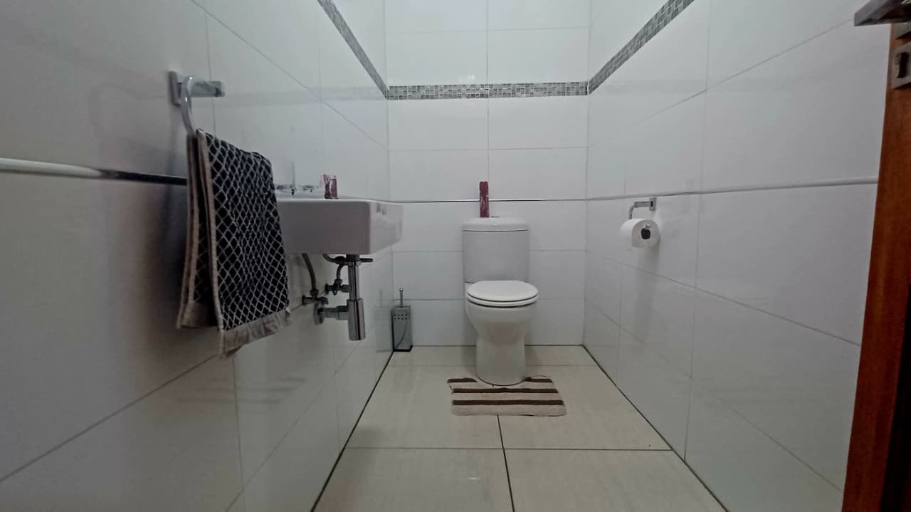 - A separate guest toilet with a basin adds an extra layer of convenience