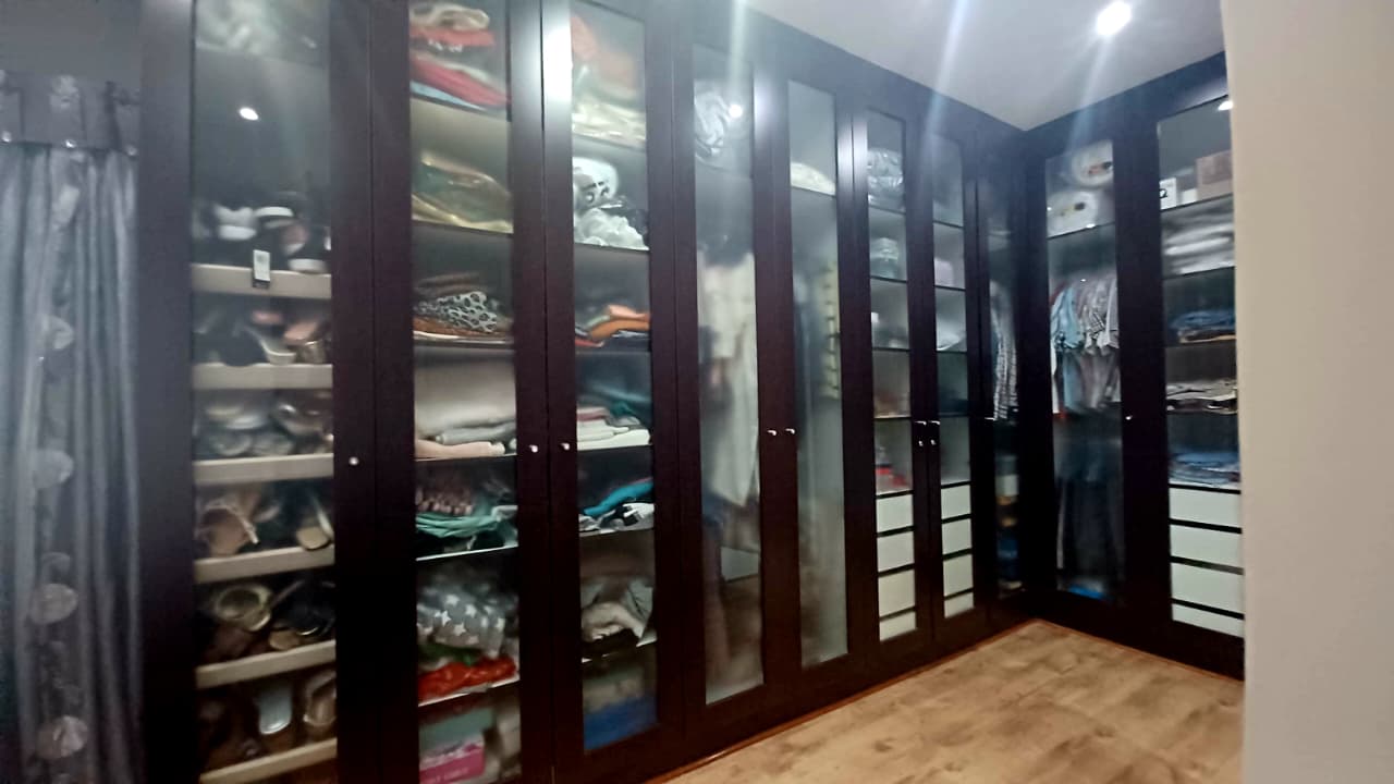 - 3 spacious bedrooms, each with big windows, modern glass and mirror built-in cupboards, and laminated floors