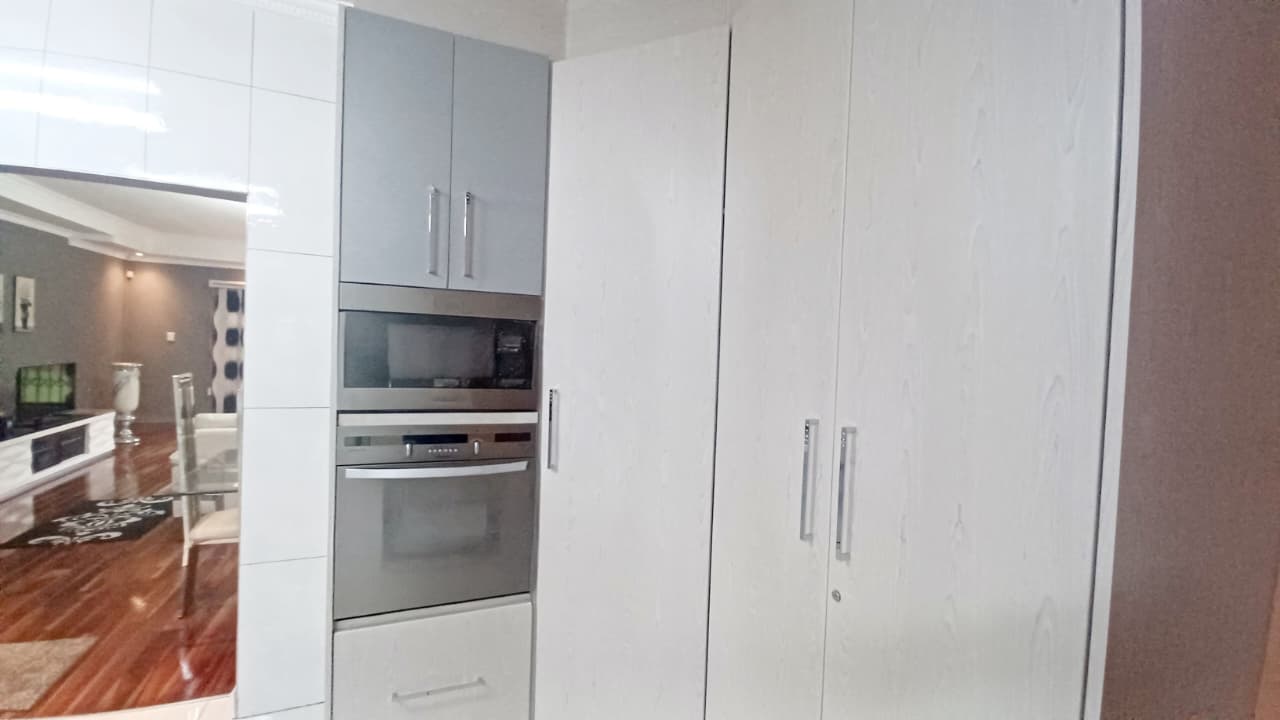 - A modern kitchen with lots of built-in cupboards and counter space, perfect for cooking and meal prep