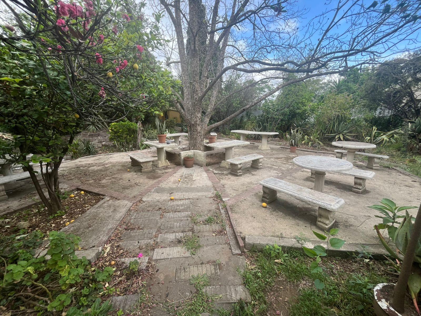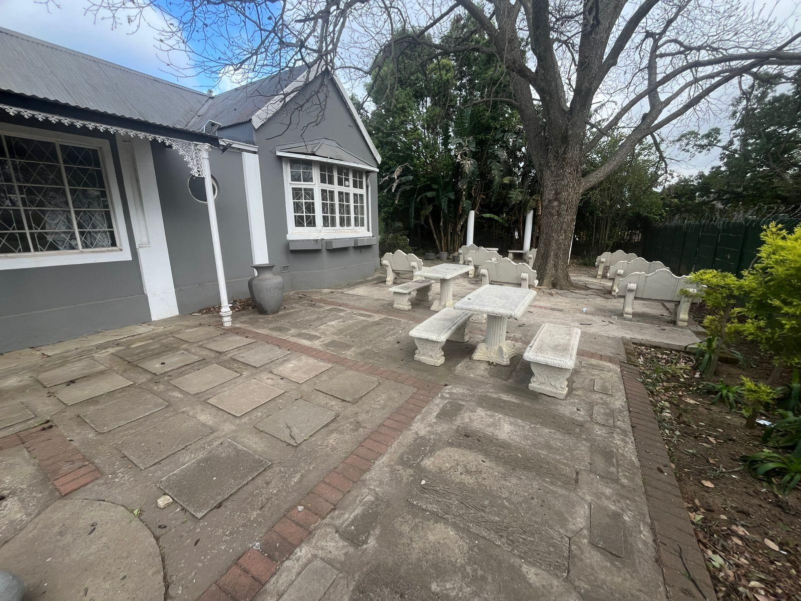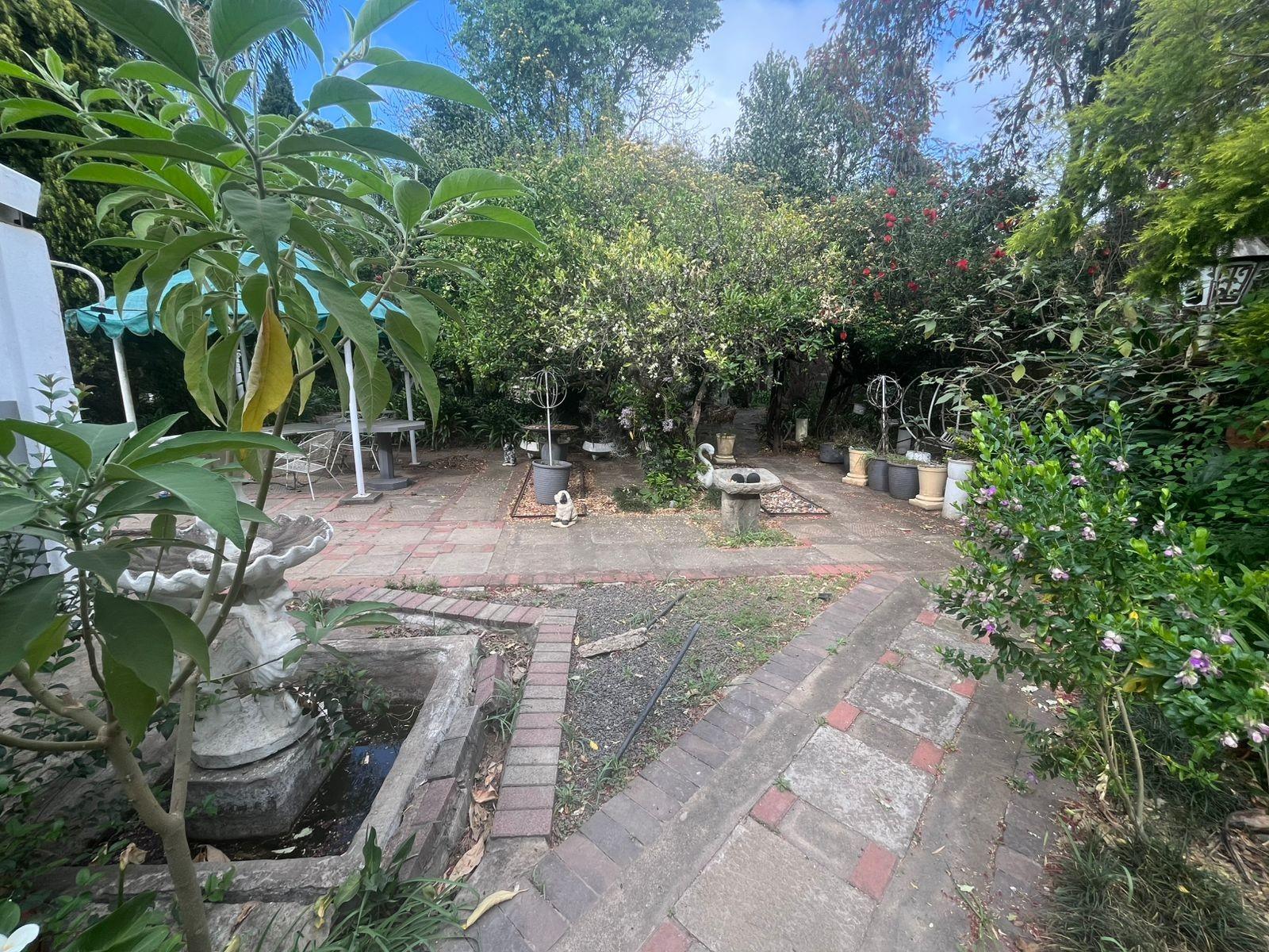 The property boasts a large, tranquil garden with mature greenery, providing a peaceful retreat for children, pets, and outdoor activities. The yard is perfect for family braais, entertaining, or even creating a landscaped oasis.