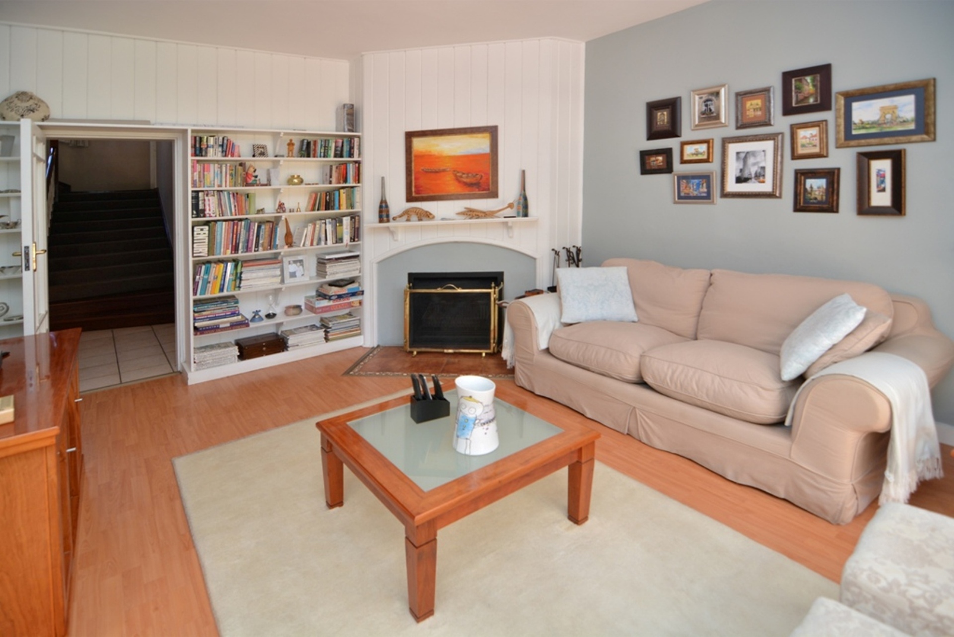 All living areas exit to the large landscaped garden with a sparkling pool. Two bedrooms (volumes of cupboards with a built-in study) on the lower level and a shared bathroom.
