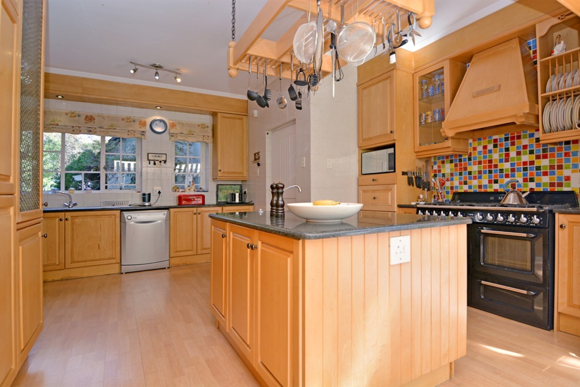 Beautiful classic fitted kitchen with a stunning, high spec 6-plate gas stove and handy kitchen island leading to sunny second dining area. Two guest toilets amidst the large staircase. Huge main bedroom suite with lovely en-suite bathroom. Two additional bedrooms with built-in cupboards and shared bathroom.