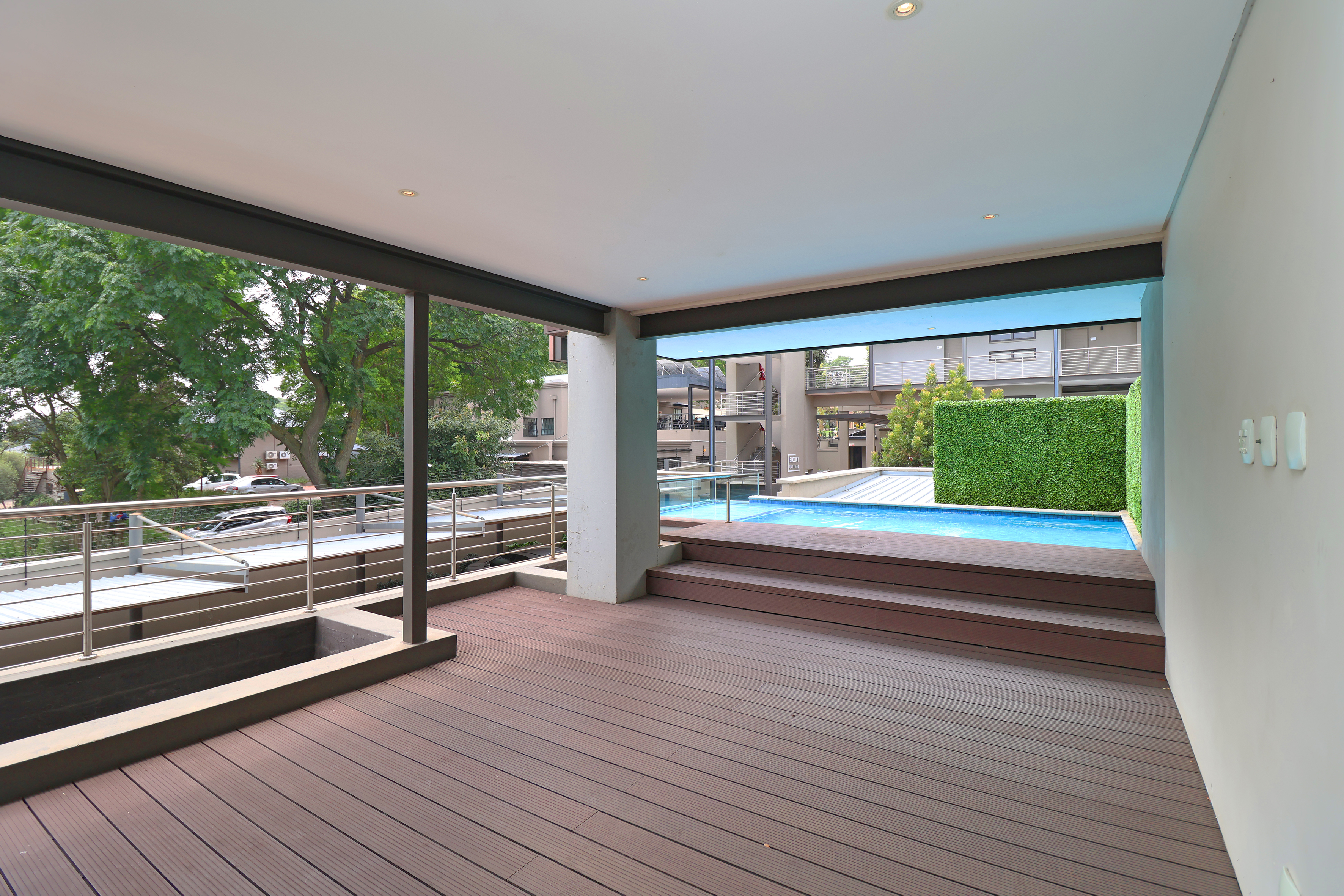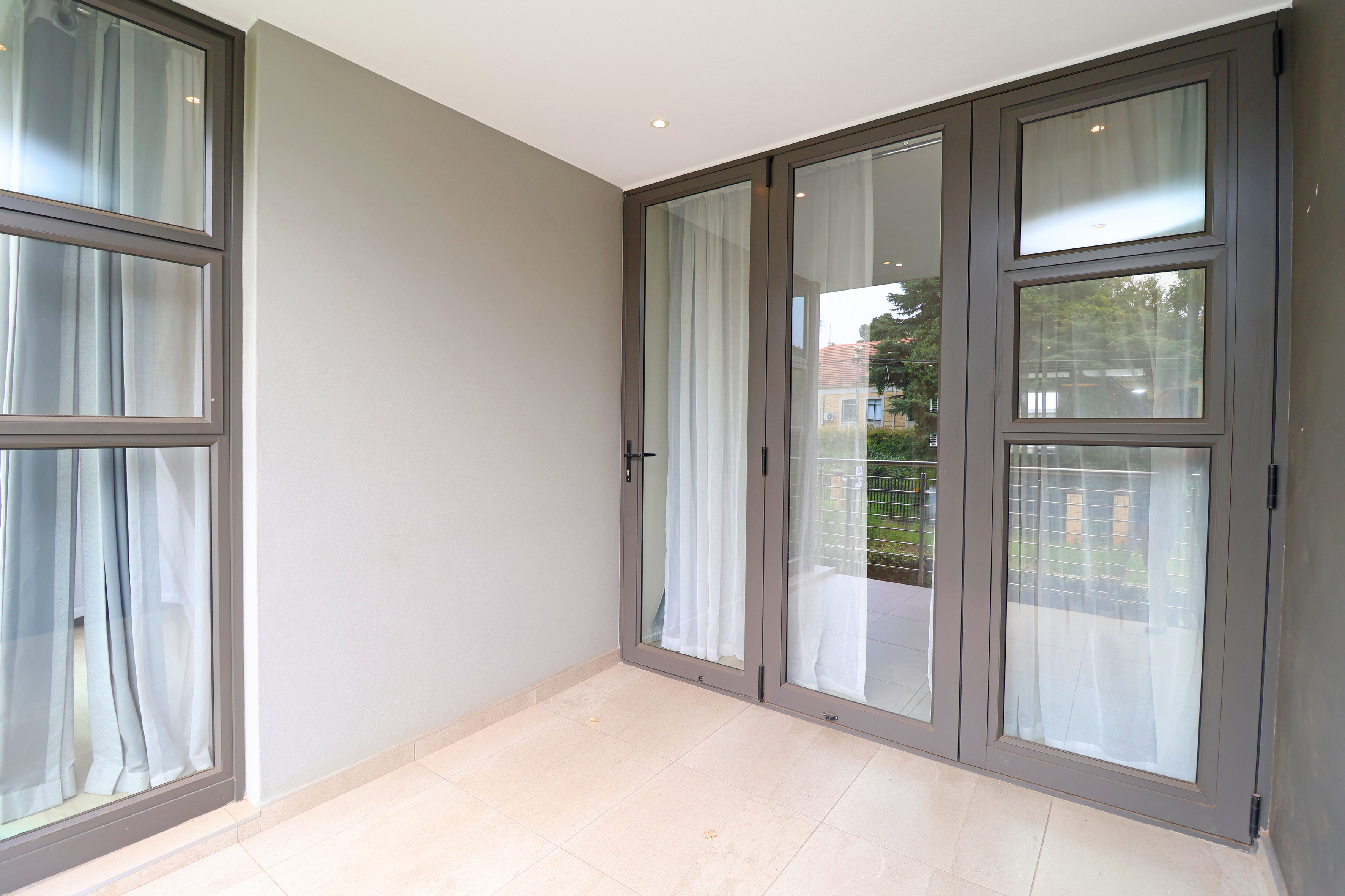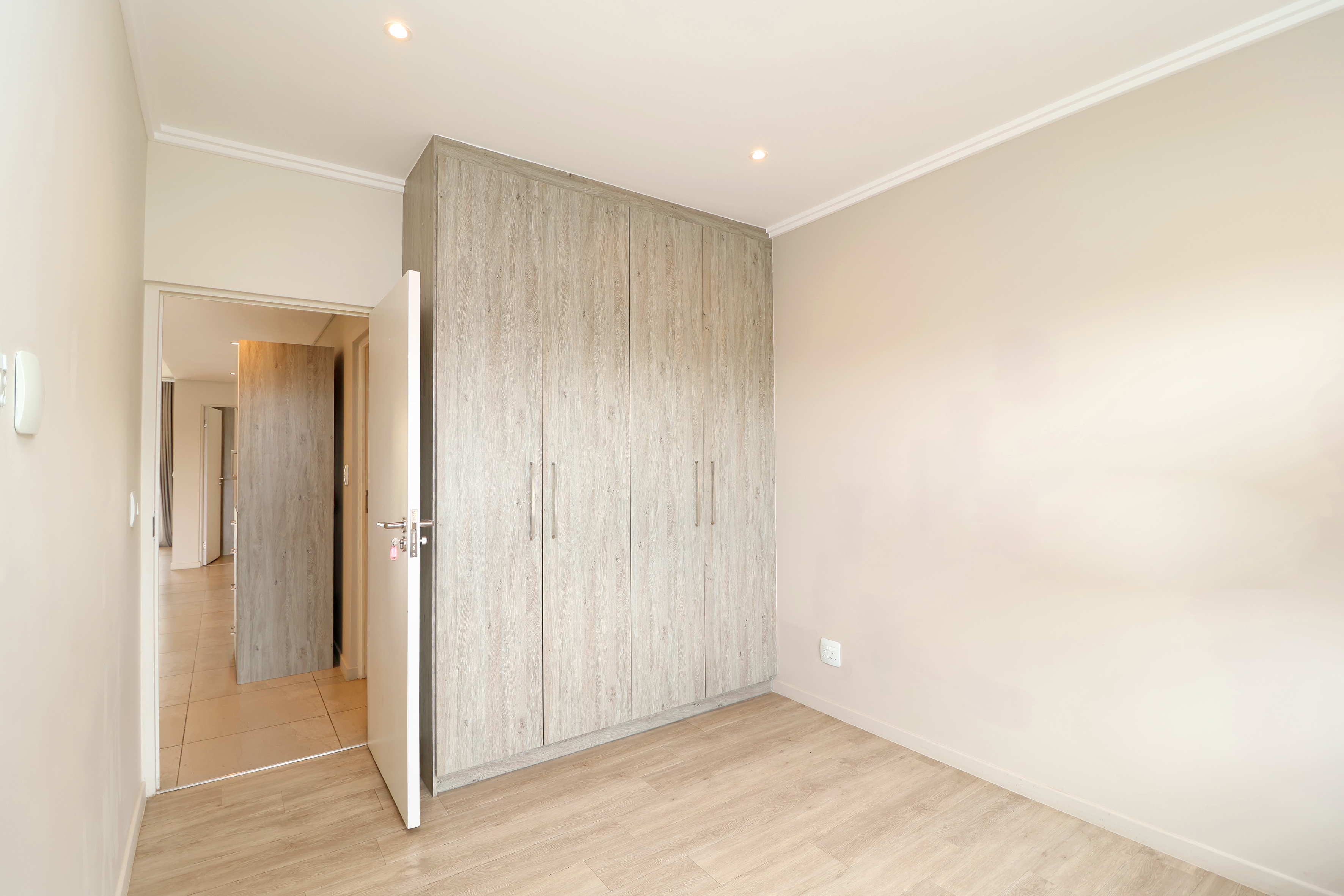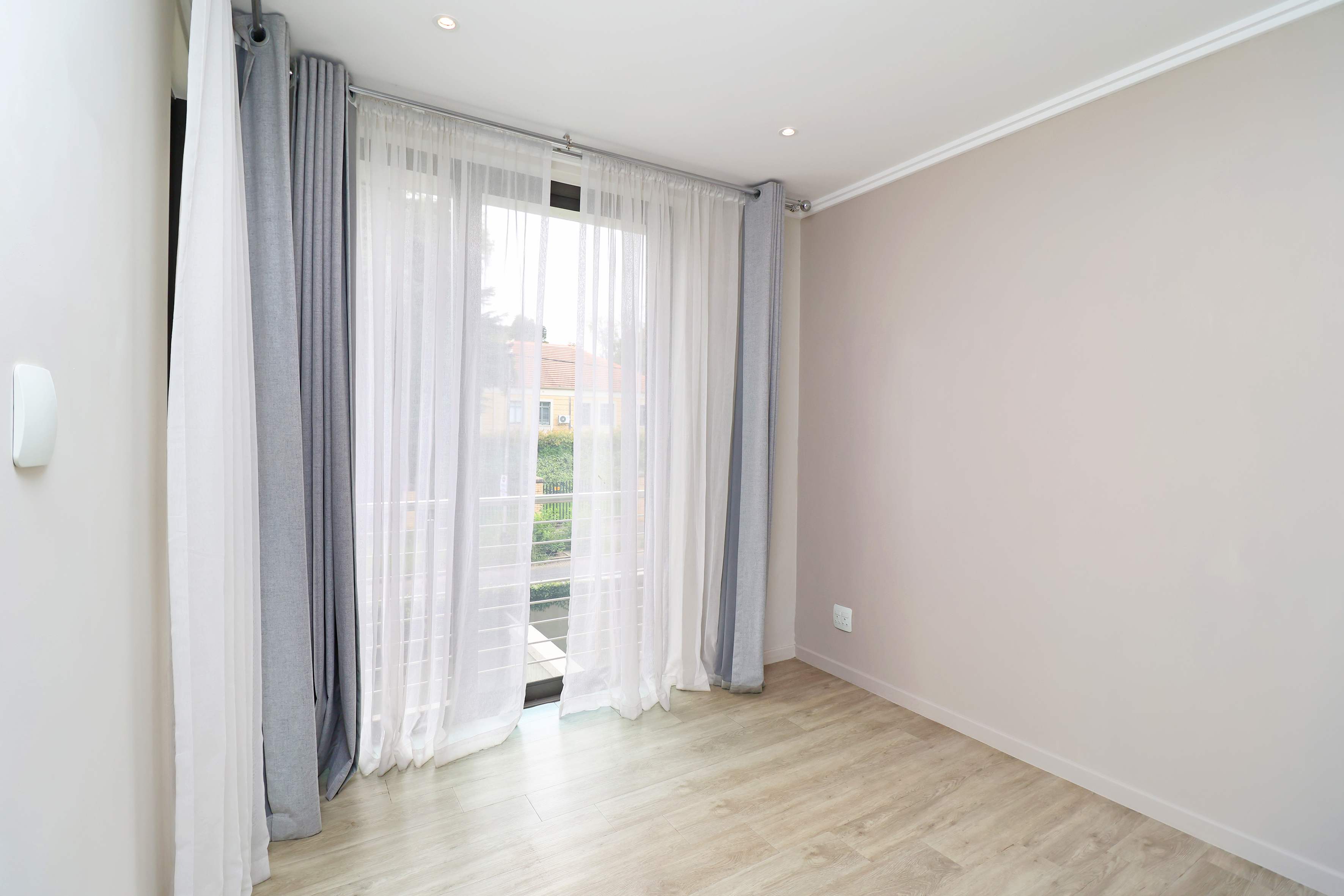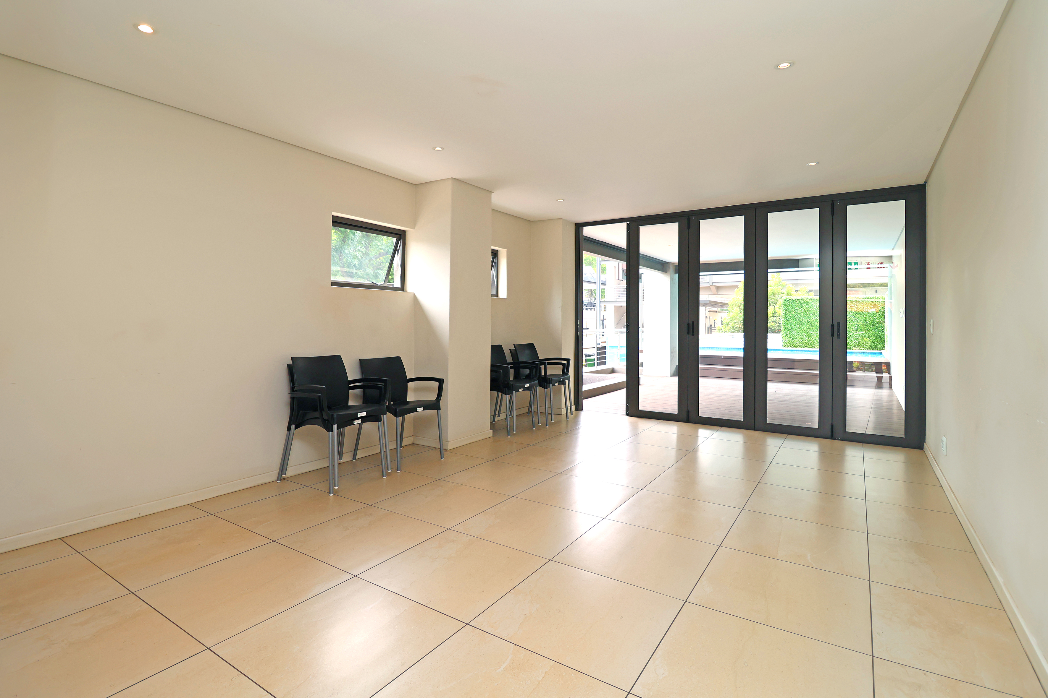 The living area is tiled and flows through floor-to-ceiling stacking doors onto a spacious, fully covered north-facing balcony, creating an ideal space for all-weather entertaining. The kitchen is finished with stylish stone countertops and ample cupboard space, and comes fully equipped with a fridge, washing machine, and dishwasher.