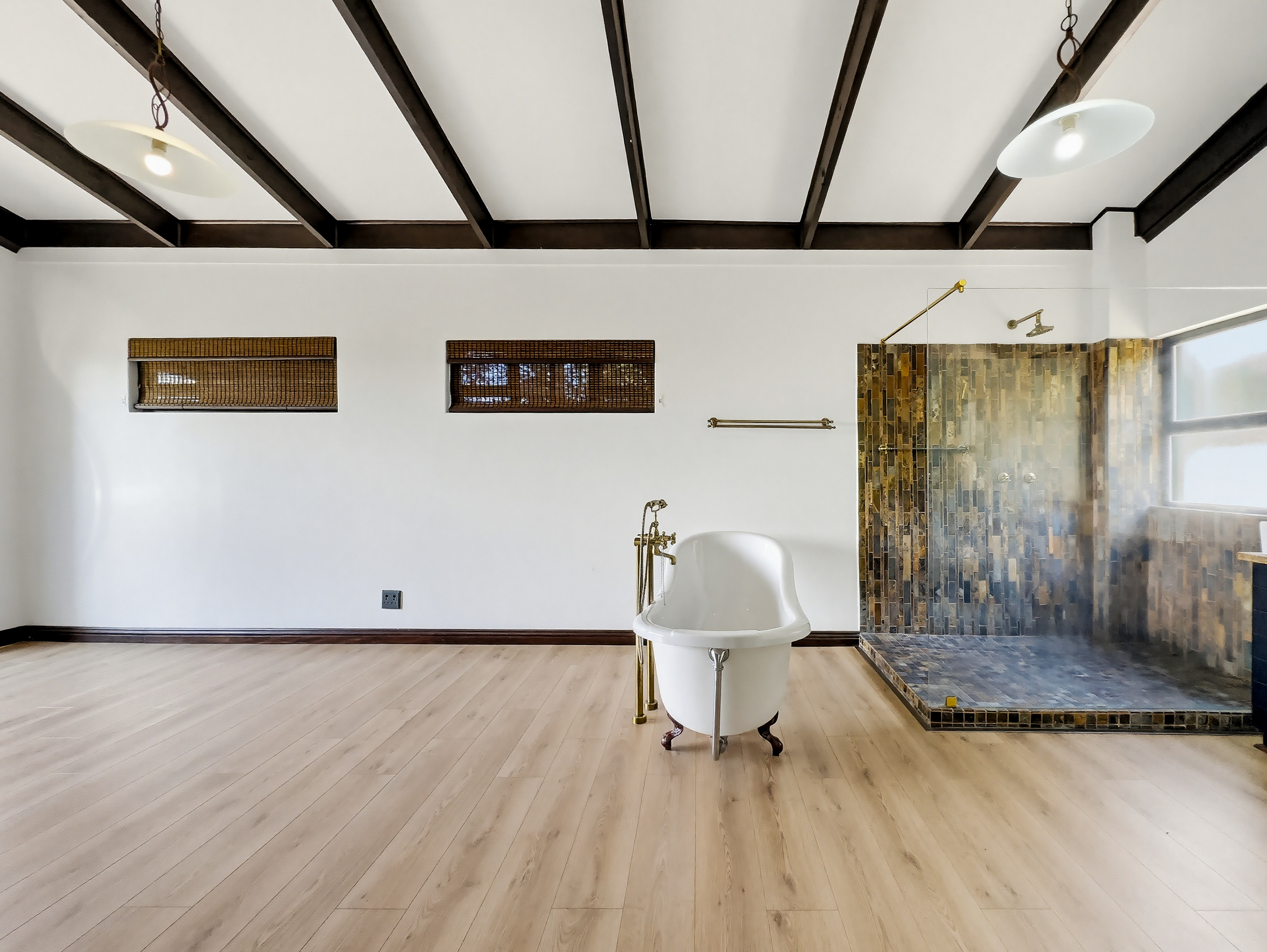 The property offers four bedrooms and expansive living areas, all fully airconditioned. With 2 separate entertainment areas and an undercover patio facing the pool and forest this property offers exceptional value for Dunkirk Estate.