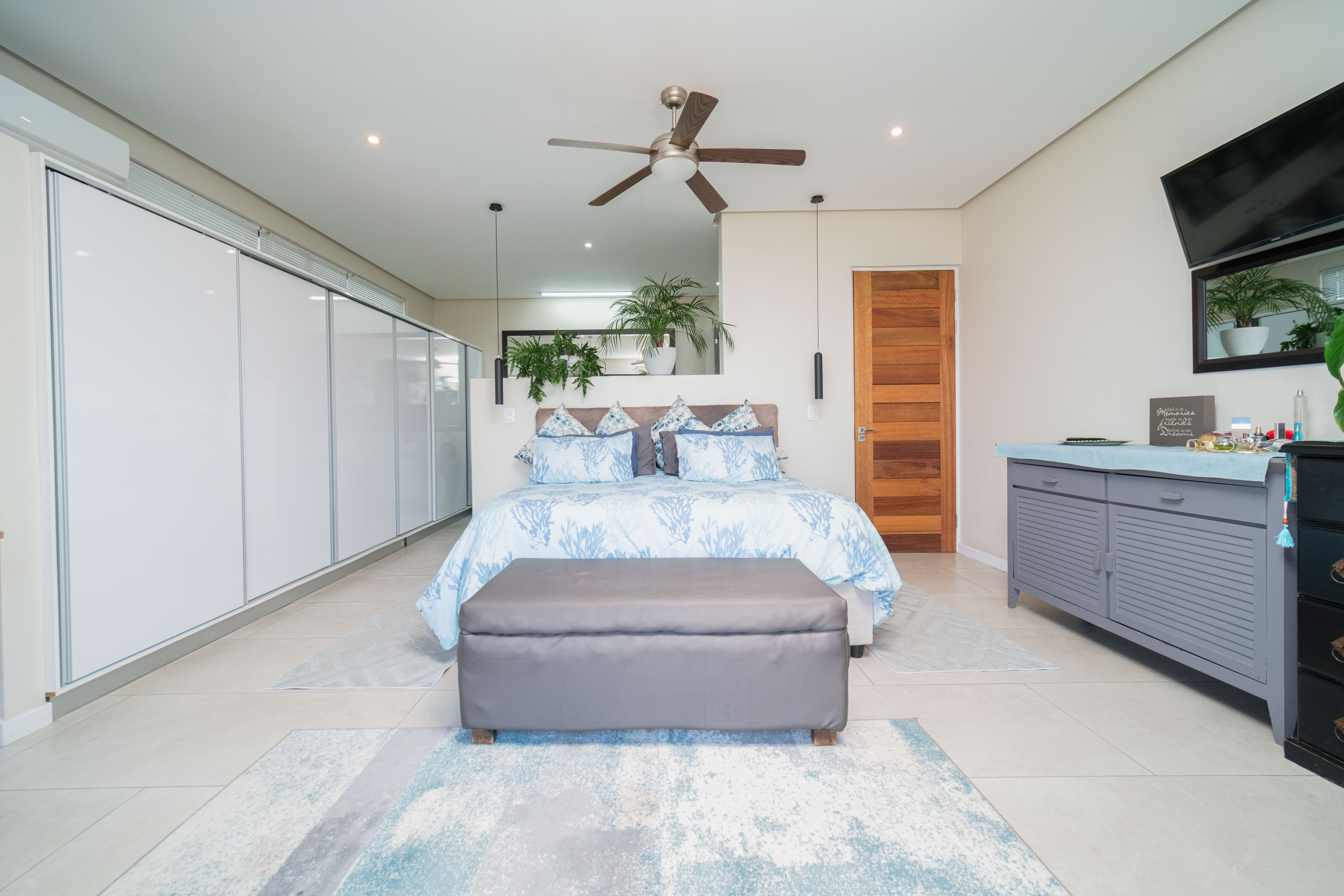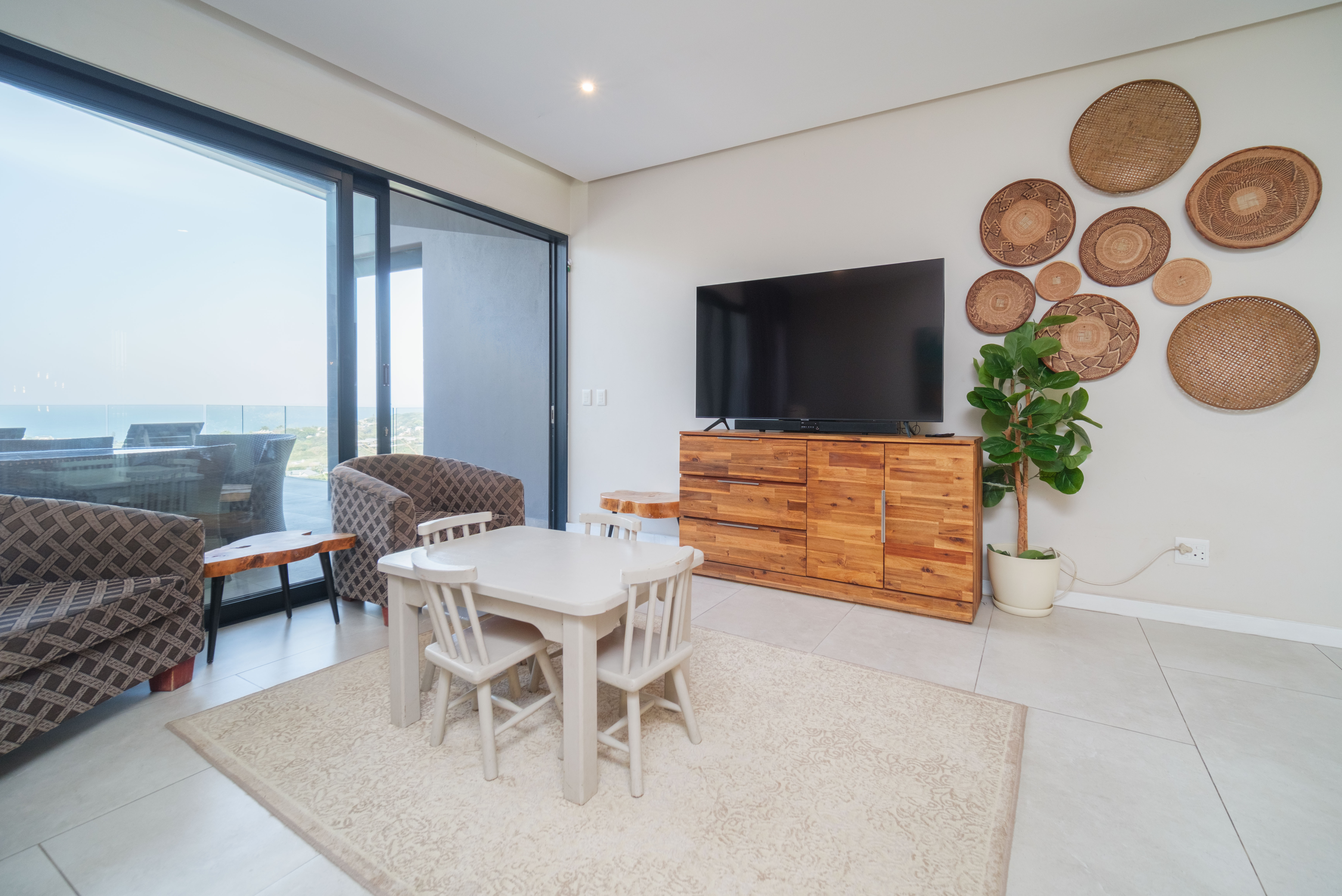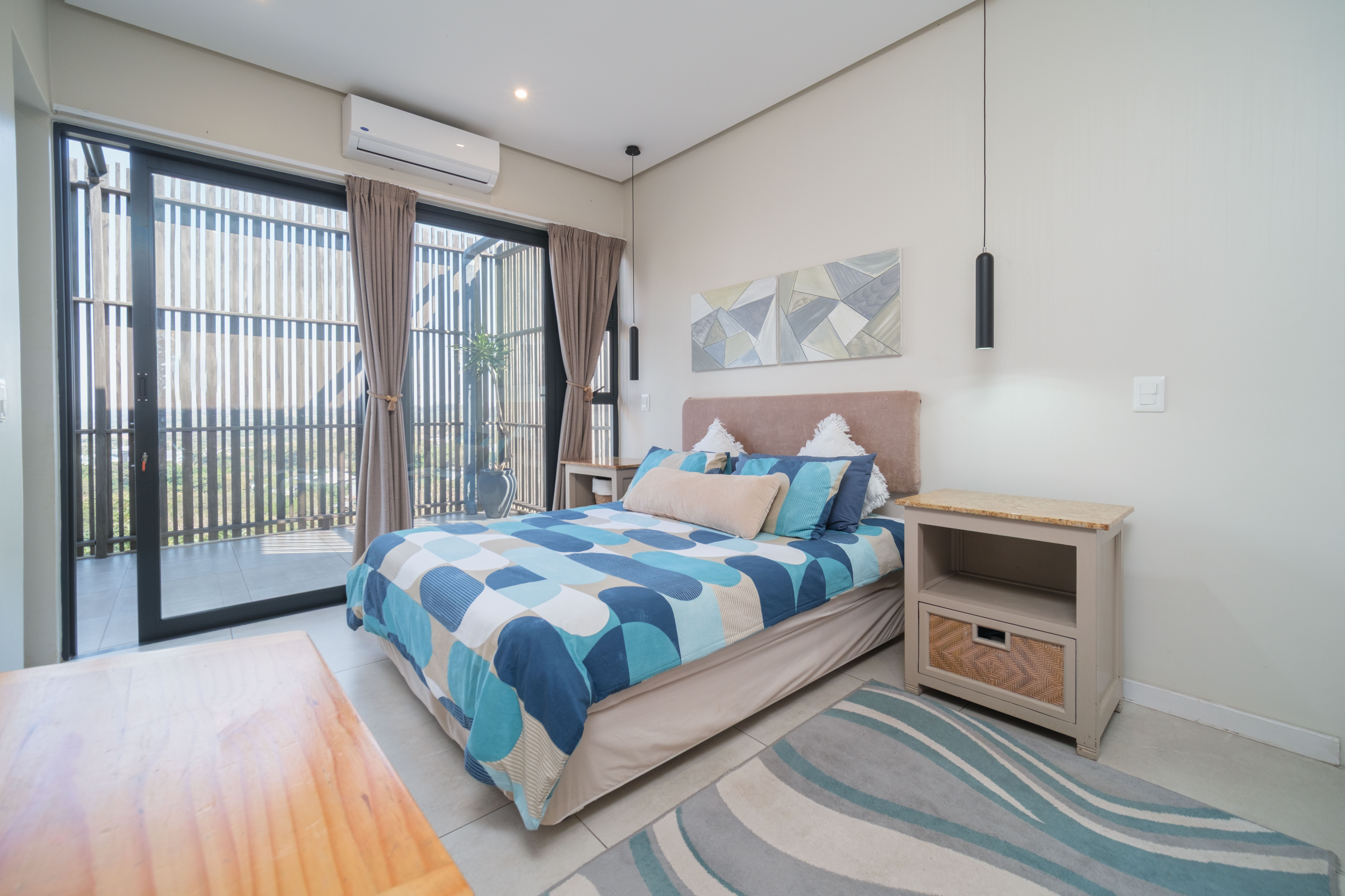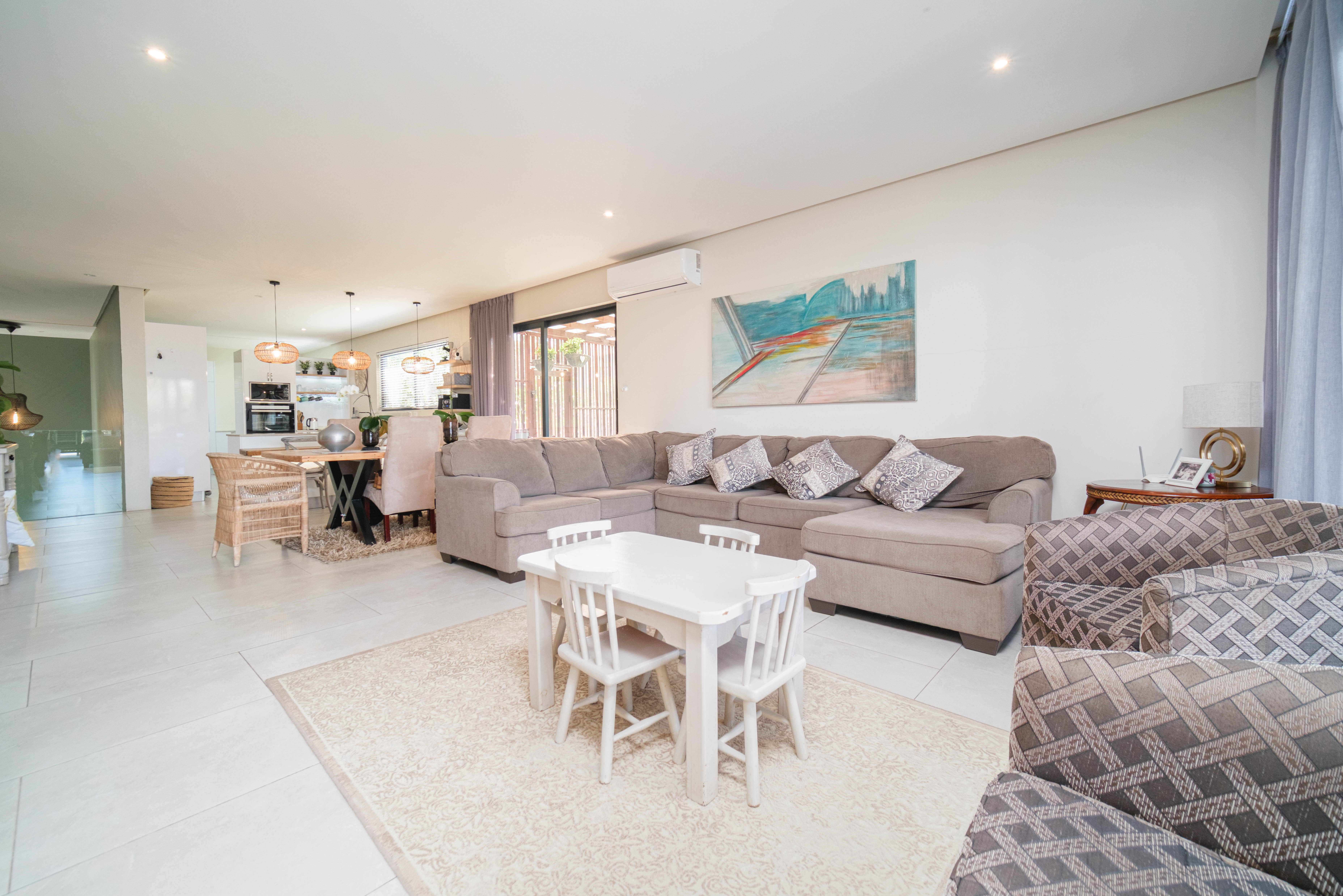 Featuring five spacious bedrooms, each with direct access to a private outdoor area, and five and a half beautifully appointed bathrooms, this residence effortlessly blends indoor-outdoor living. The expansive living spaces open out to a sparkling swimming pool, perfect for enjoying the warm North Coast climate and stunning sea vistas.