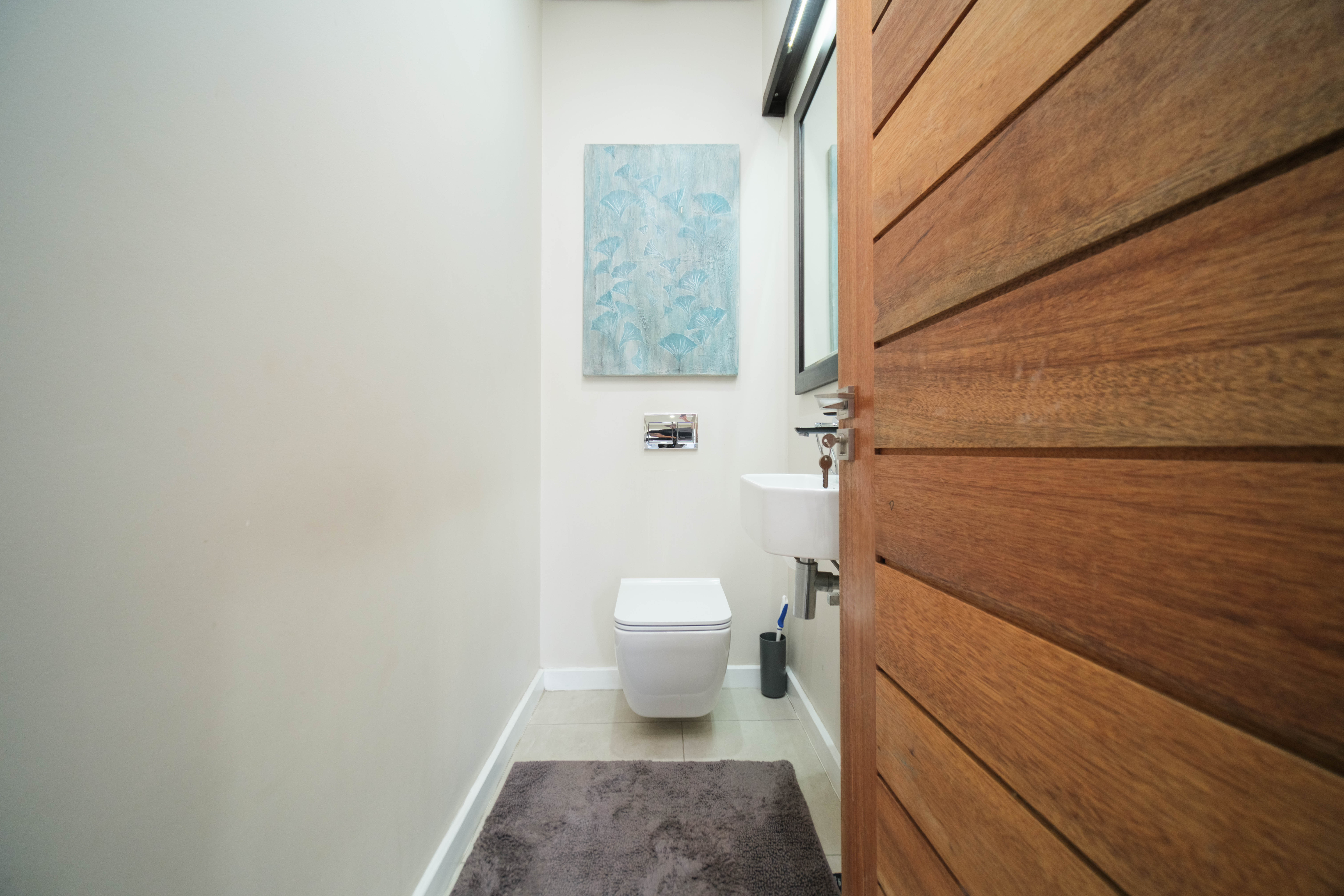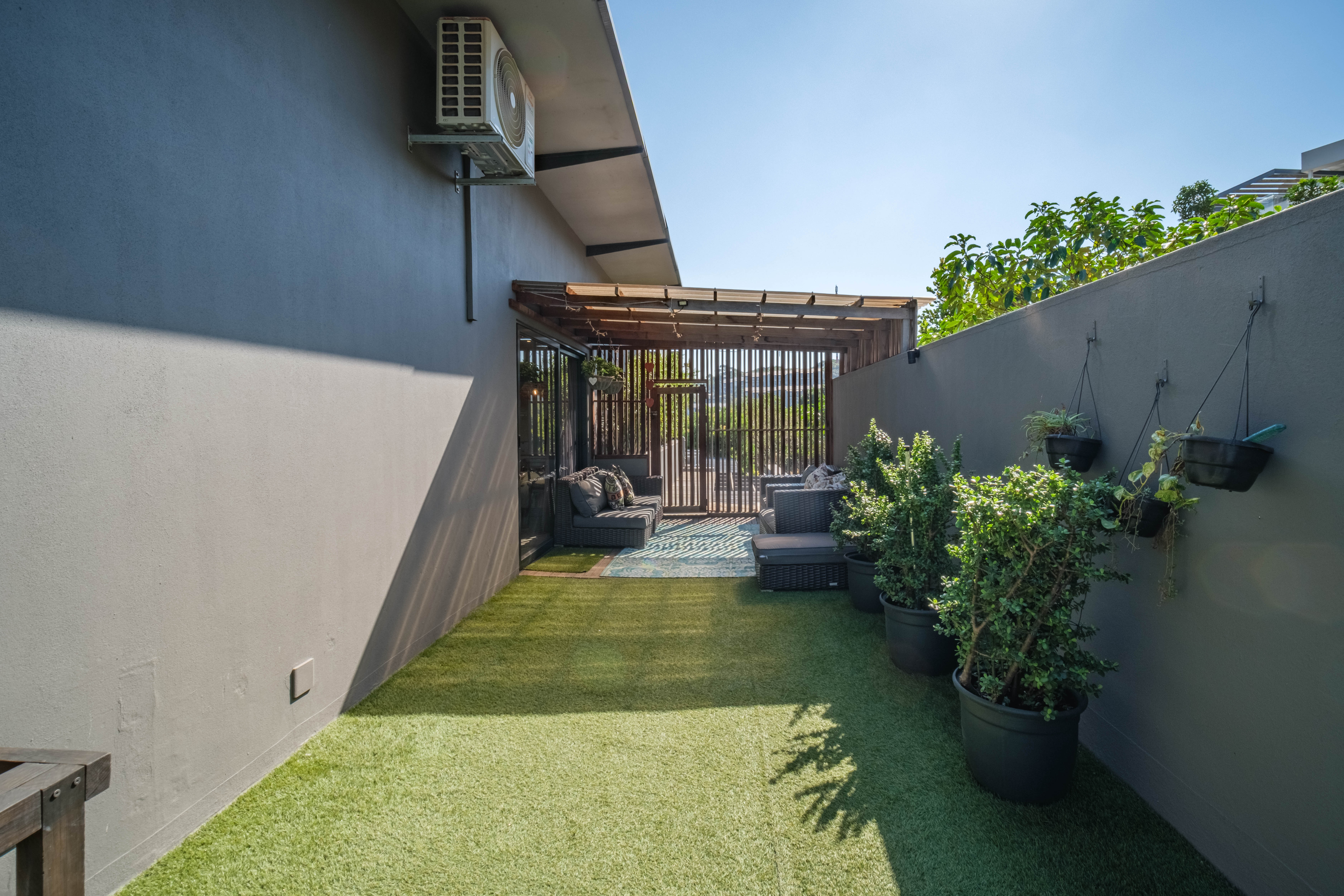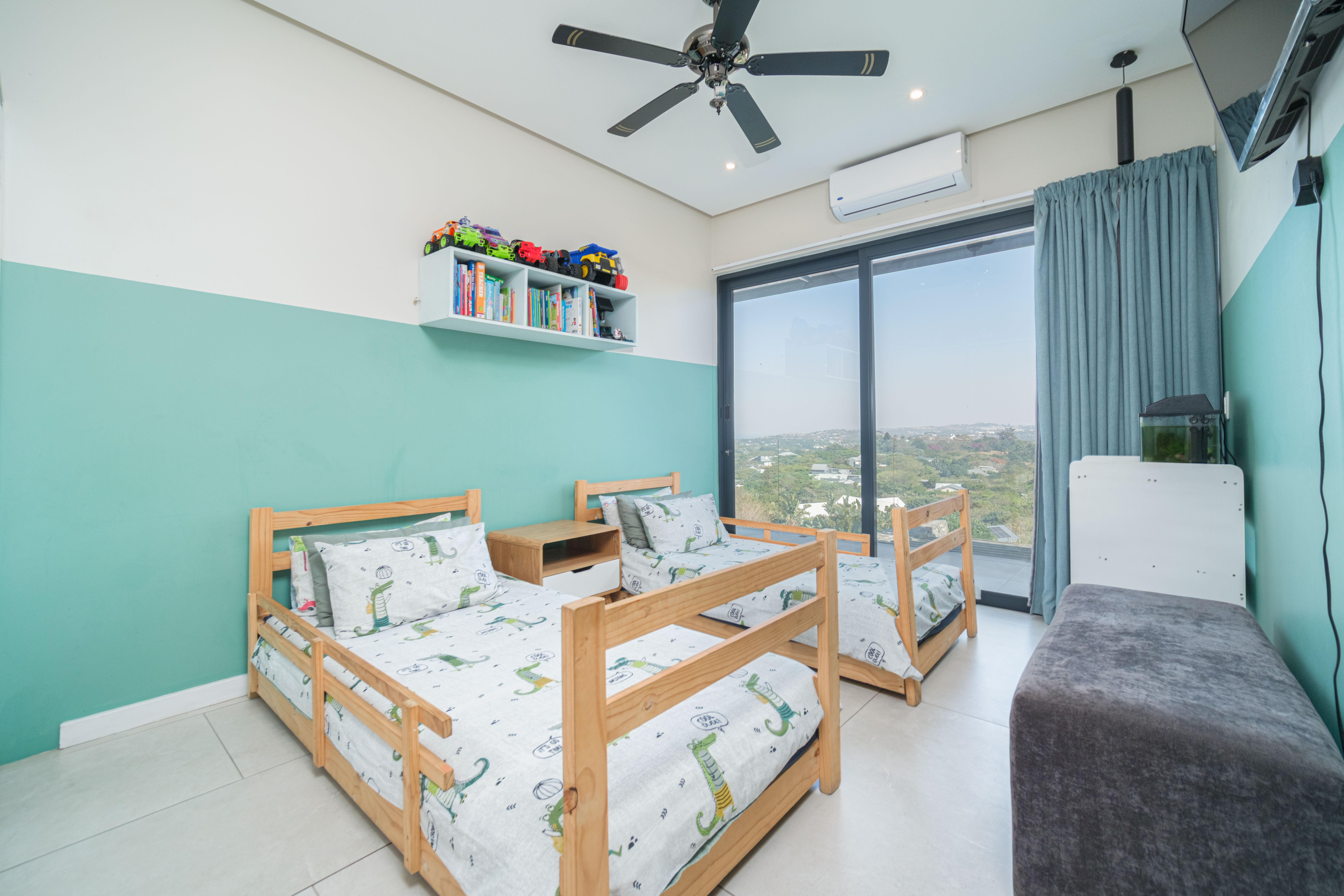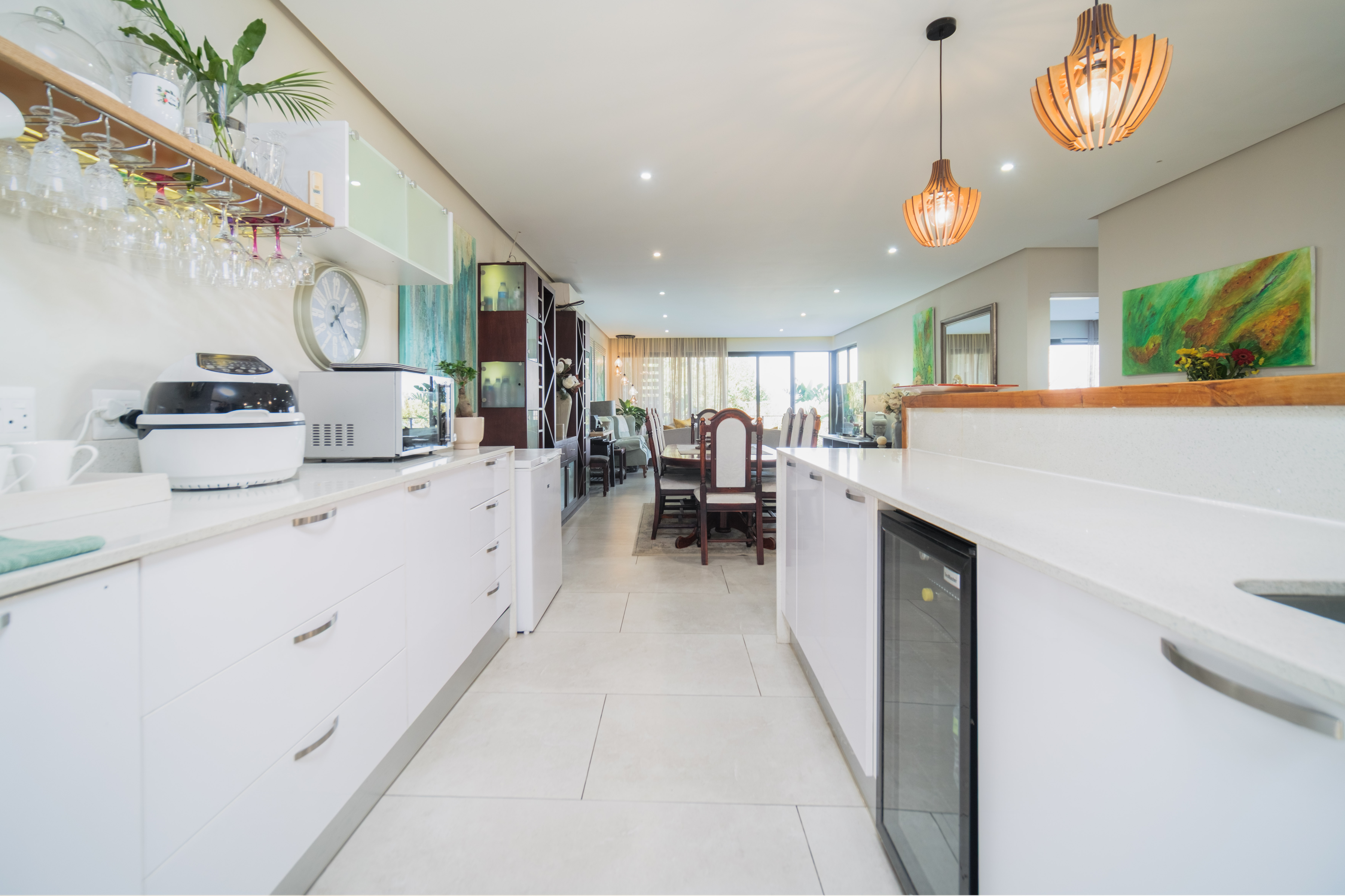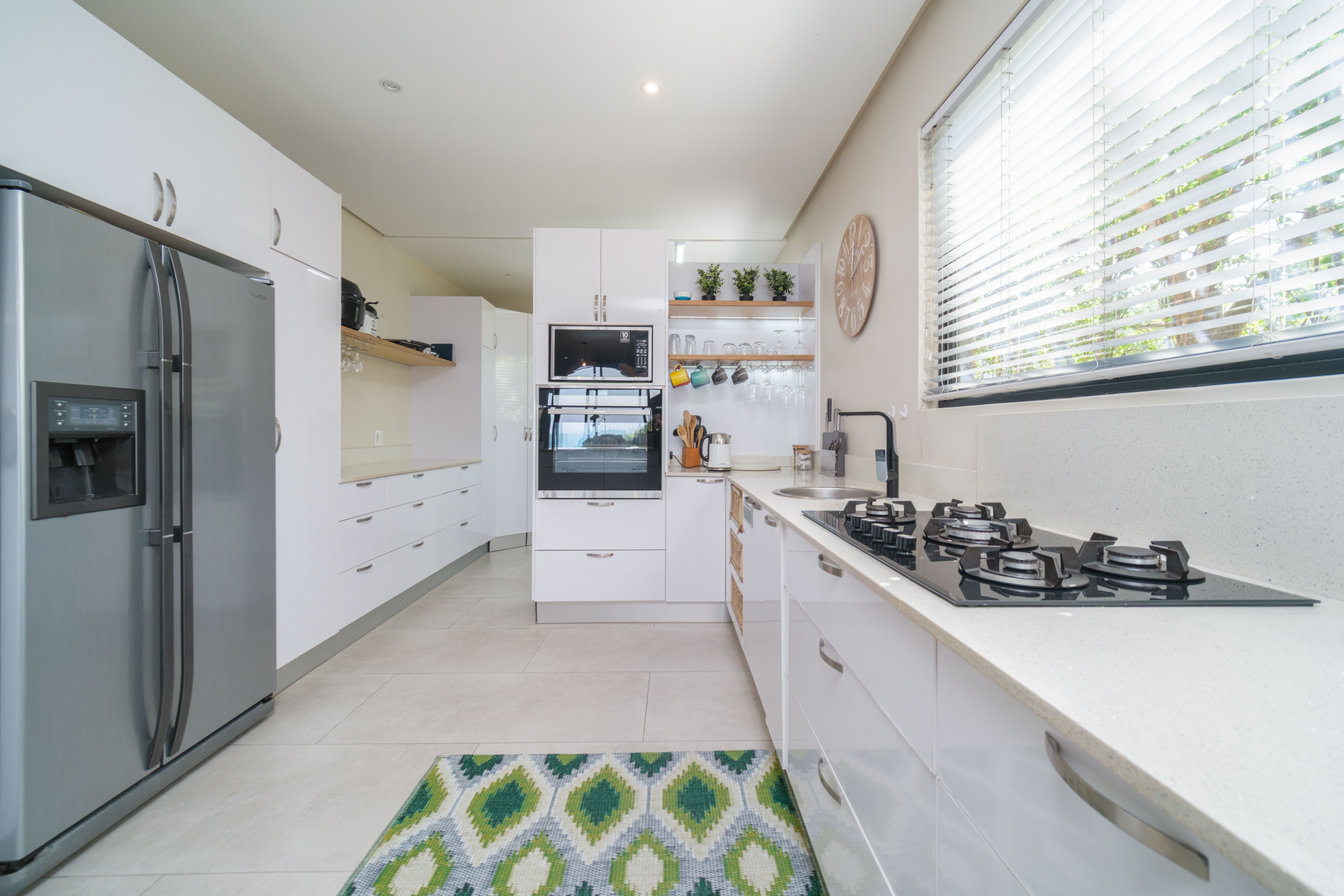Featuring five spacious bedrooms, each with direct access to a private outdoor area, and five and a half beautifully appointed bathrooms, this residence effortlessly blends indoor-outdoor living. The expansive living spaces open out to a sparkling swimming pool, perfect for enjoying the warm North Coast climate and stunning sea vistas.