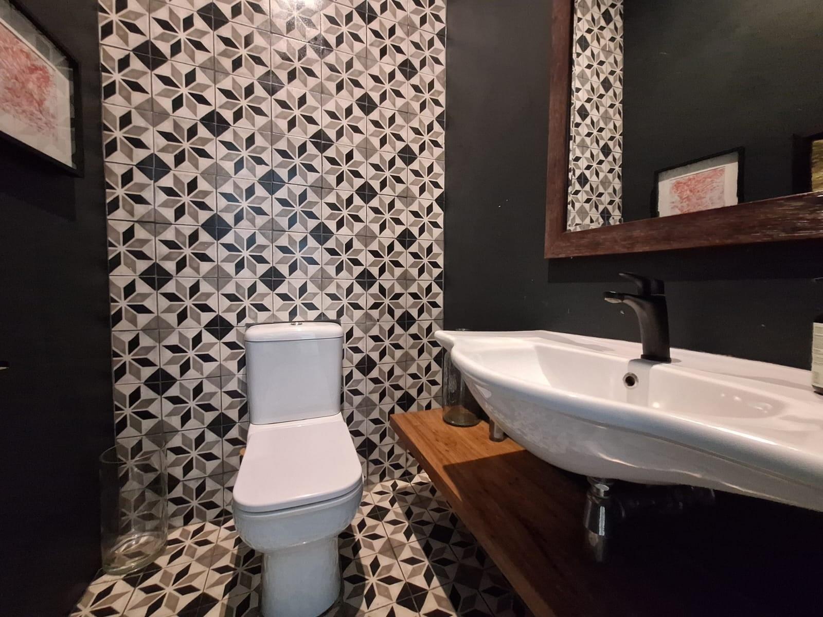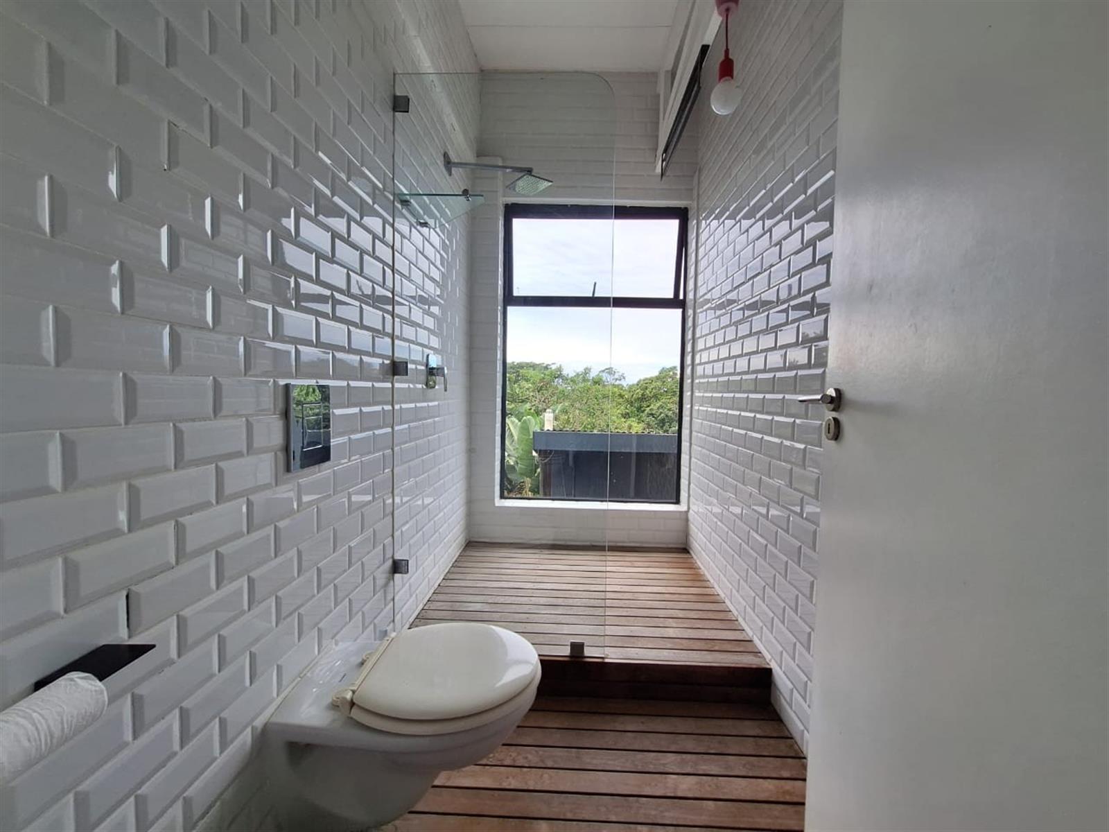 There are four beautifully appointed bedrooms, including a luxurious main en-suite framed by large picture windows that showcase the forest outside. The two and a half bathrooms are elegantly designed with a combination of modern tiles, wood details, and premium fittings.