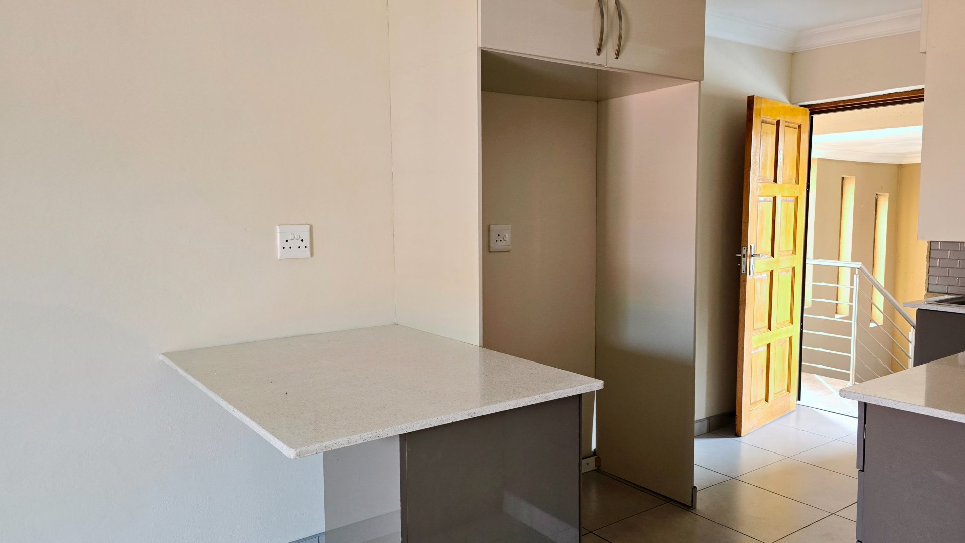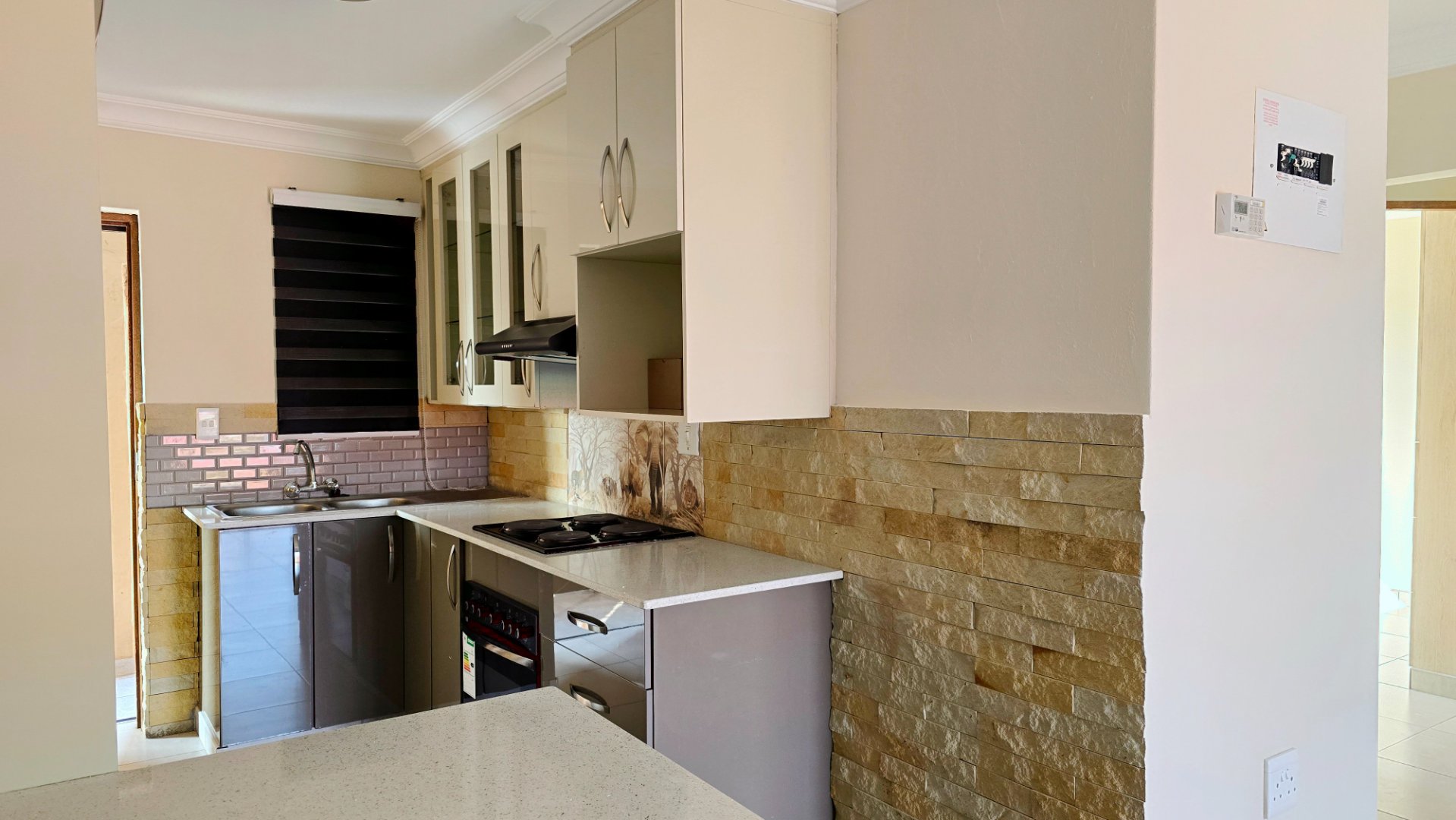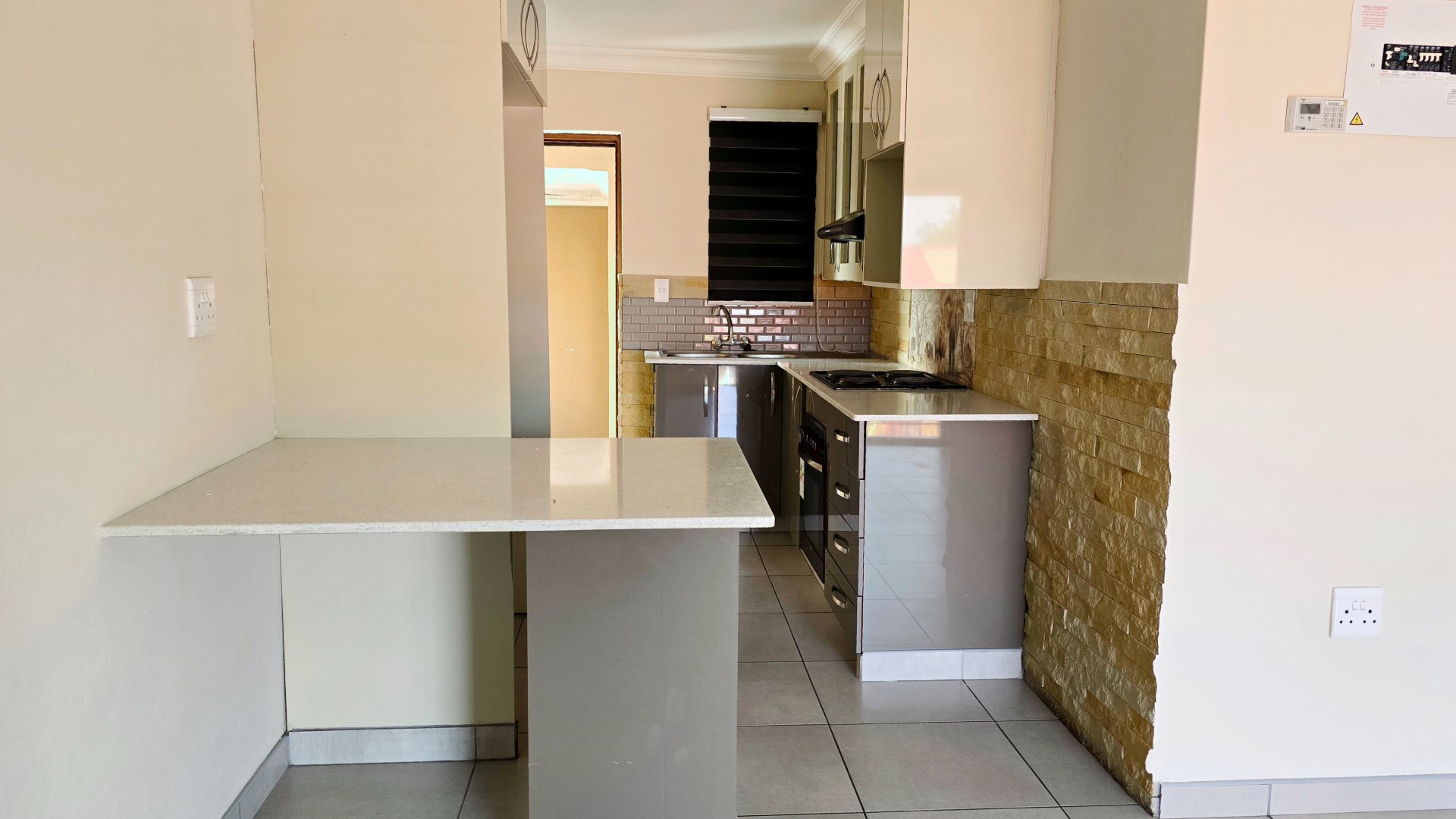 As you enter the unit, you're greeted by a modern kitchen fitted with built-in cupboards and a convenient breakfast nook, ideal for casual meals or entertaining. The kitchen flows into the open-plan living area, which leads out onto a private patio featuring a built-in braai perfect for relaxed weekends or evening gatherings.