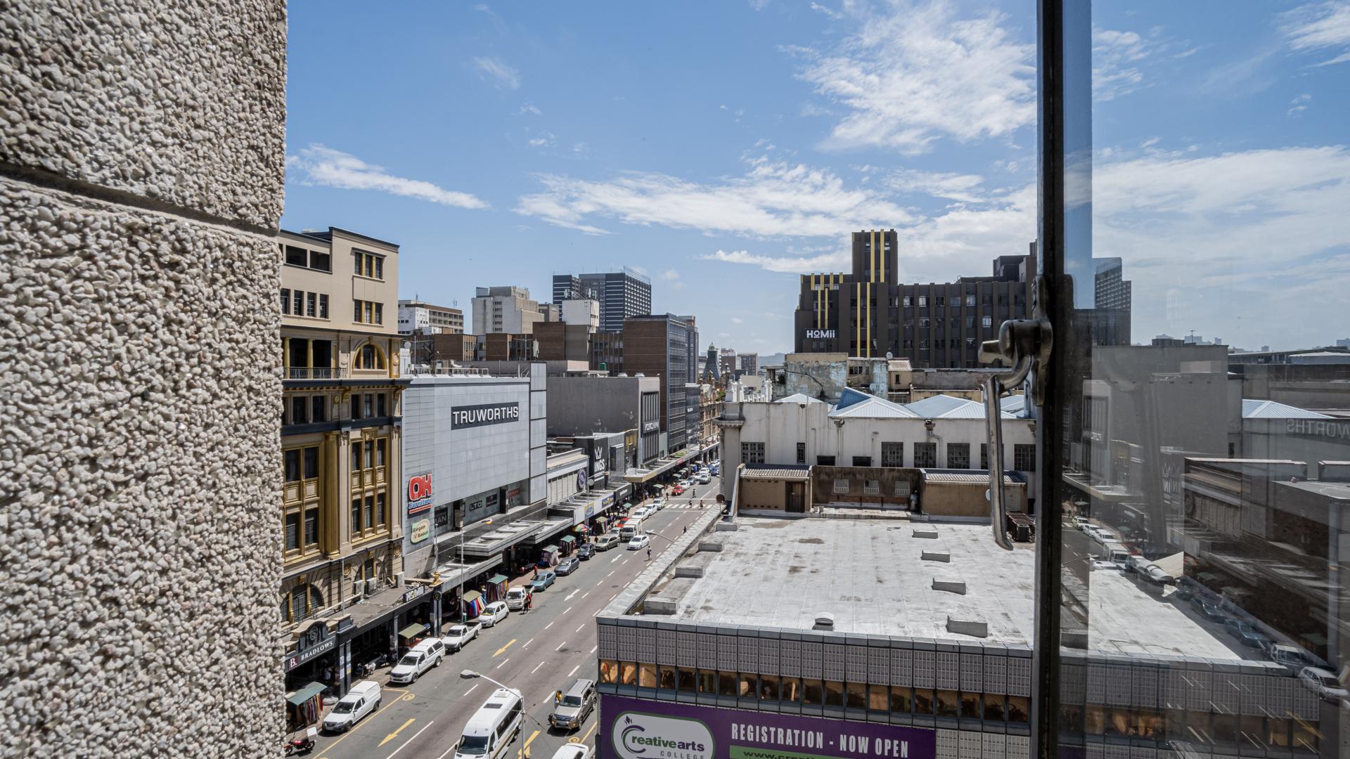 Situated in the heart of Durban's Central Business District is this large bachelor apartment measuring 34 square meters. Low maintenance tiled floors and neutral decor are found throughout the apartment which comprises an open plan living area, a kitchen and a bathroom. The living area is large enough for sleeping and living furnishings and is complete with built in cupboards providing space for storage. The separate kitchen area is open plan and is fitted with built in cupboards and granite tops. The bathroom is fitted with a shower suite. The apartment is ideally positioned within very easy access to the local amenities and public transport routes, while the building itself operates an electronic entry system providing the residents with piece of mind.