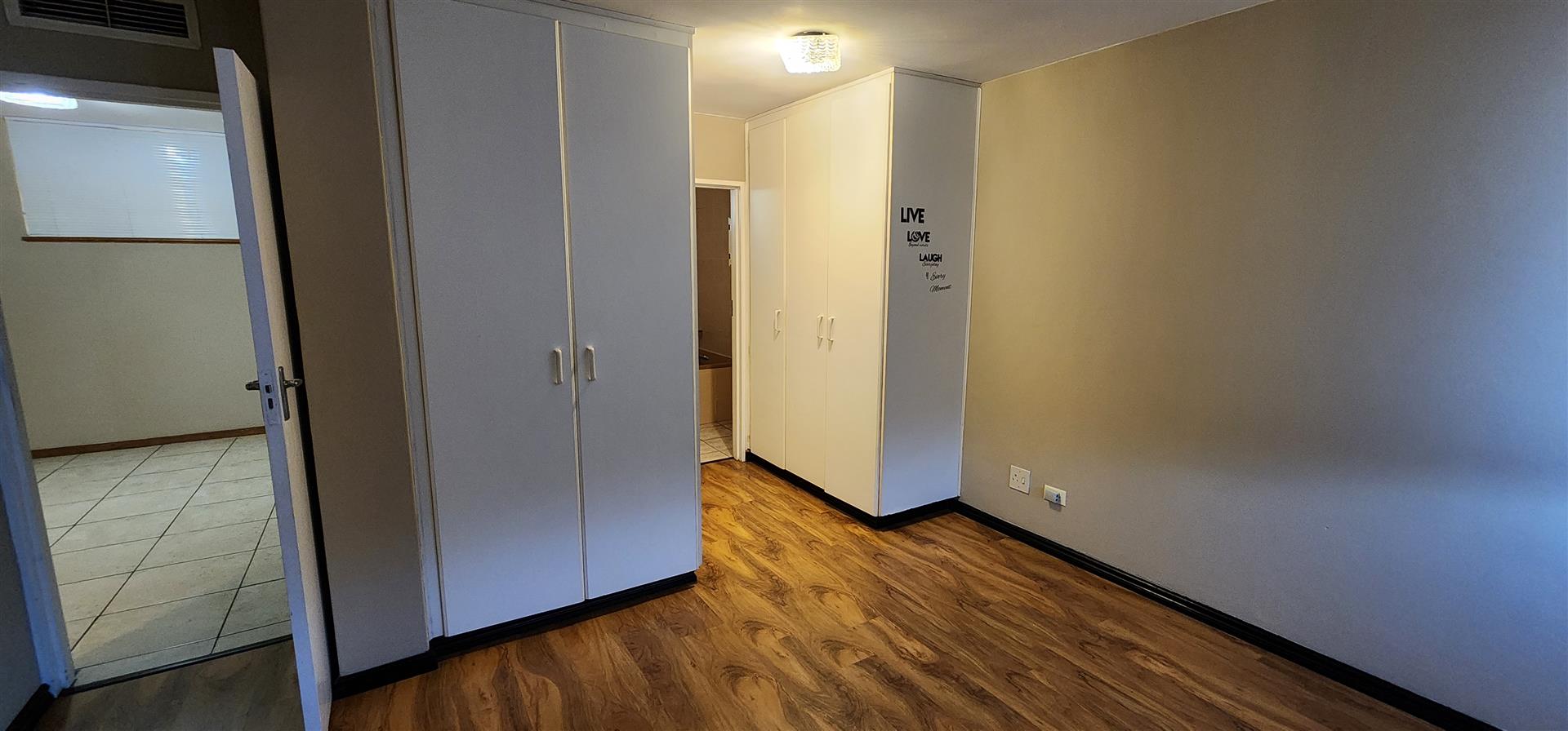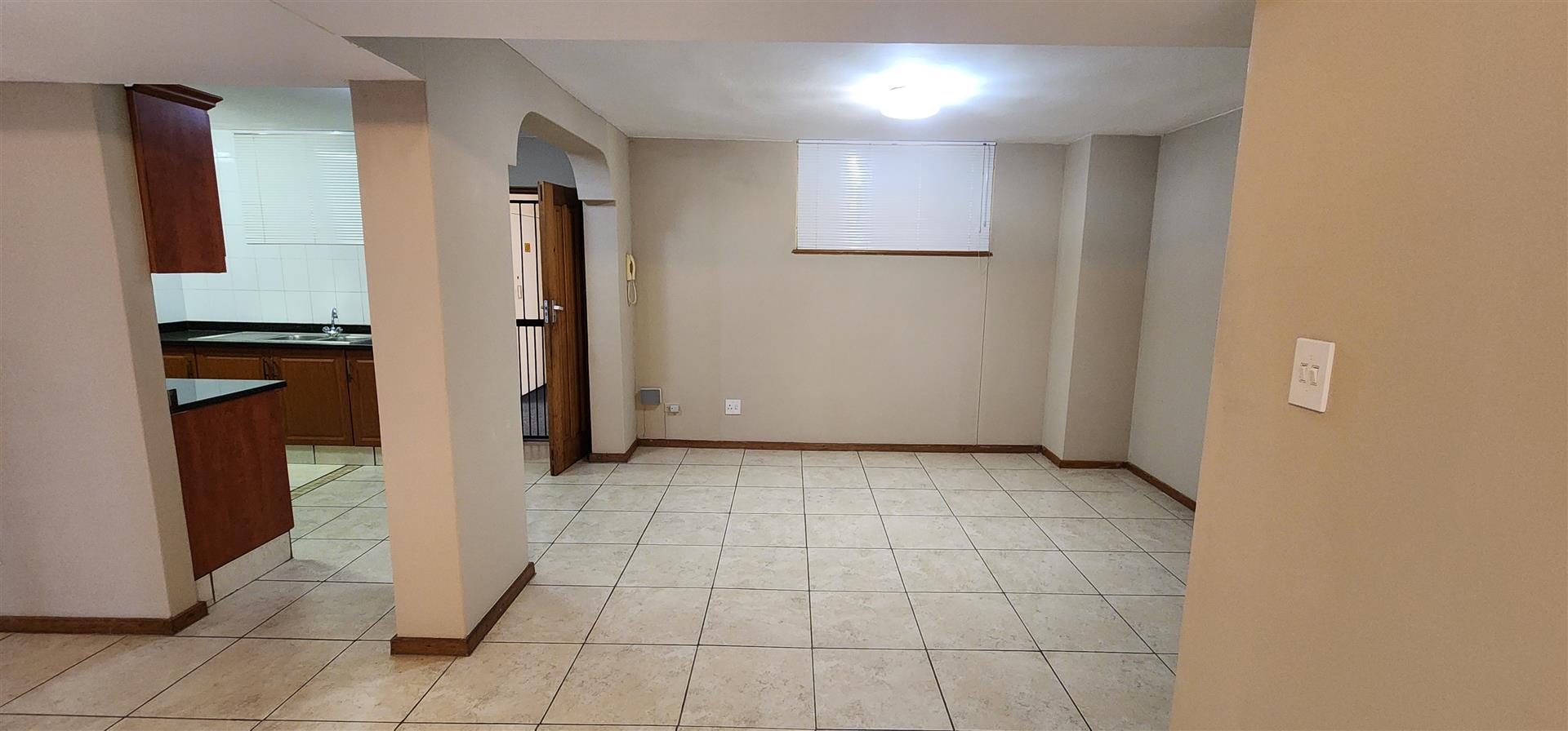 The complex has manned security, communal swimming pool, tropical gardens and tennis courts for fitness fundis.