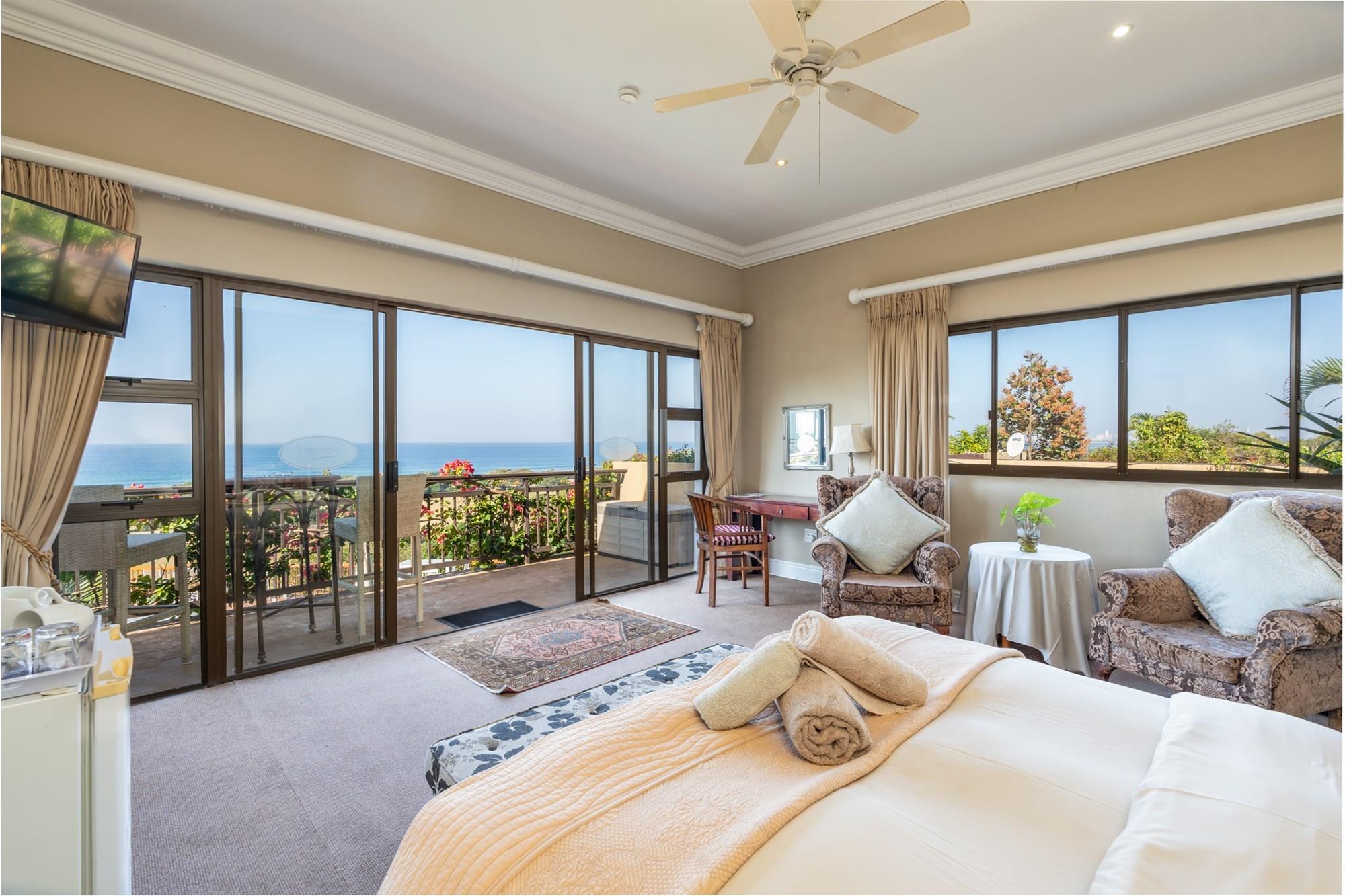 This stunning property offers a rare and unparalleled opportunity to own a thriving guest house or transform it into your dream luxury family home. Nestled in the heart of Durban North withbreathtaking, uninterrupted sea views, this multi-level gem is perfect for entrepreneurs, families, or anyone seeking a lavish lifestyle in an unbeatable location.