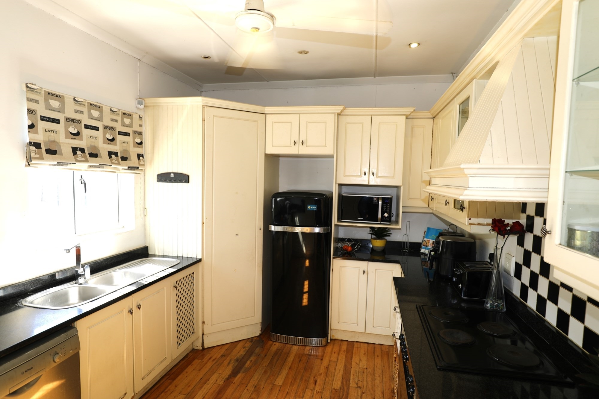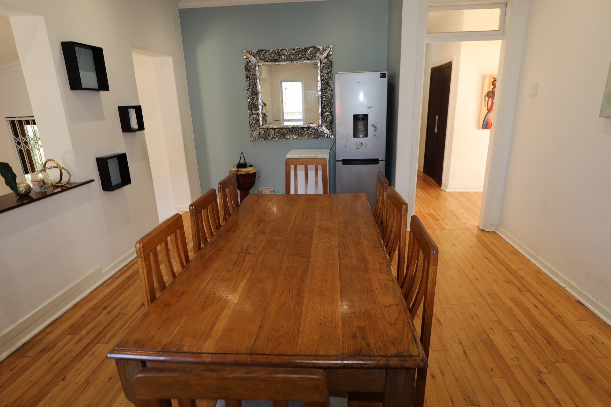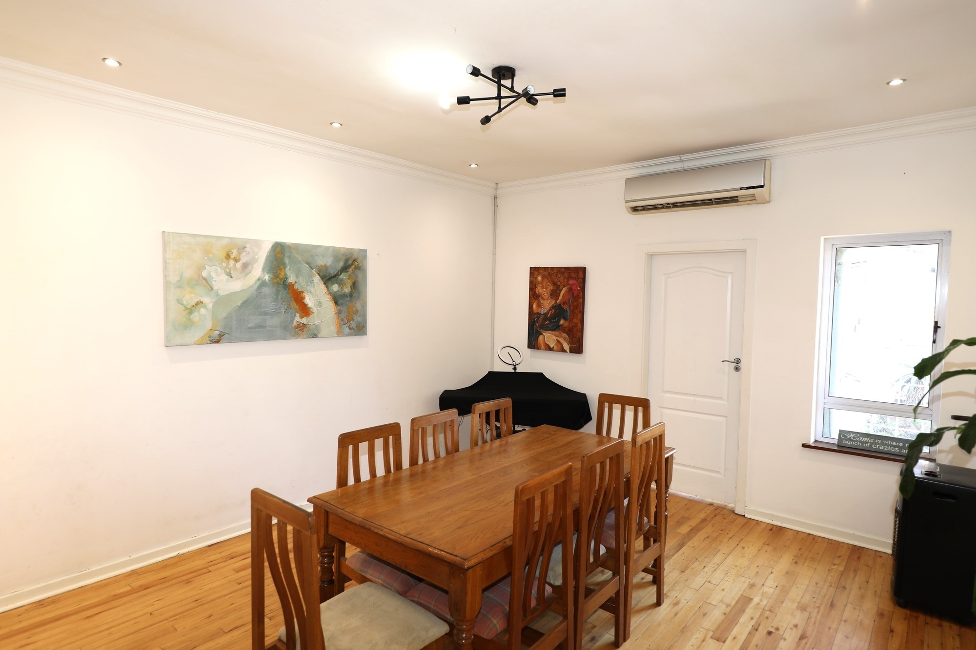 Occupying a generous 1,115 square meter plot, the property boasts unique features including a spacious garage with capacity for 8 vehicles, first-owner maintained, and fully equipped with high-speed fiber internet and security surveillance. Enjoy year-round comfort with air conditioning and ceiling fans, while an exquisite fireplace elevates the ambiance during cooler months.