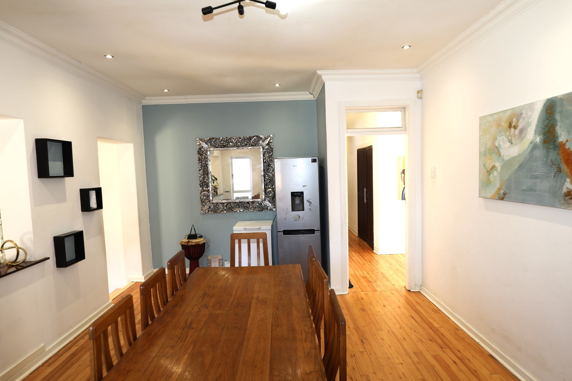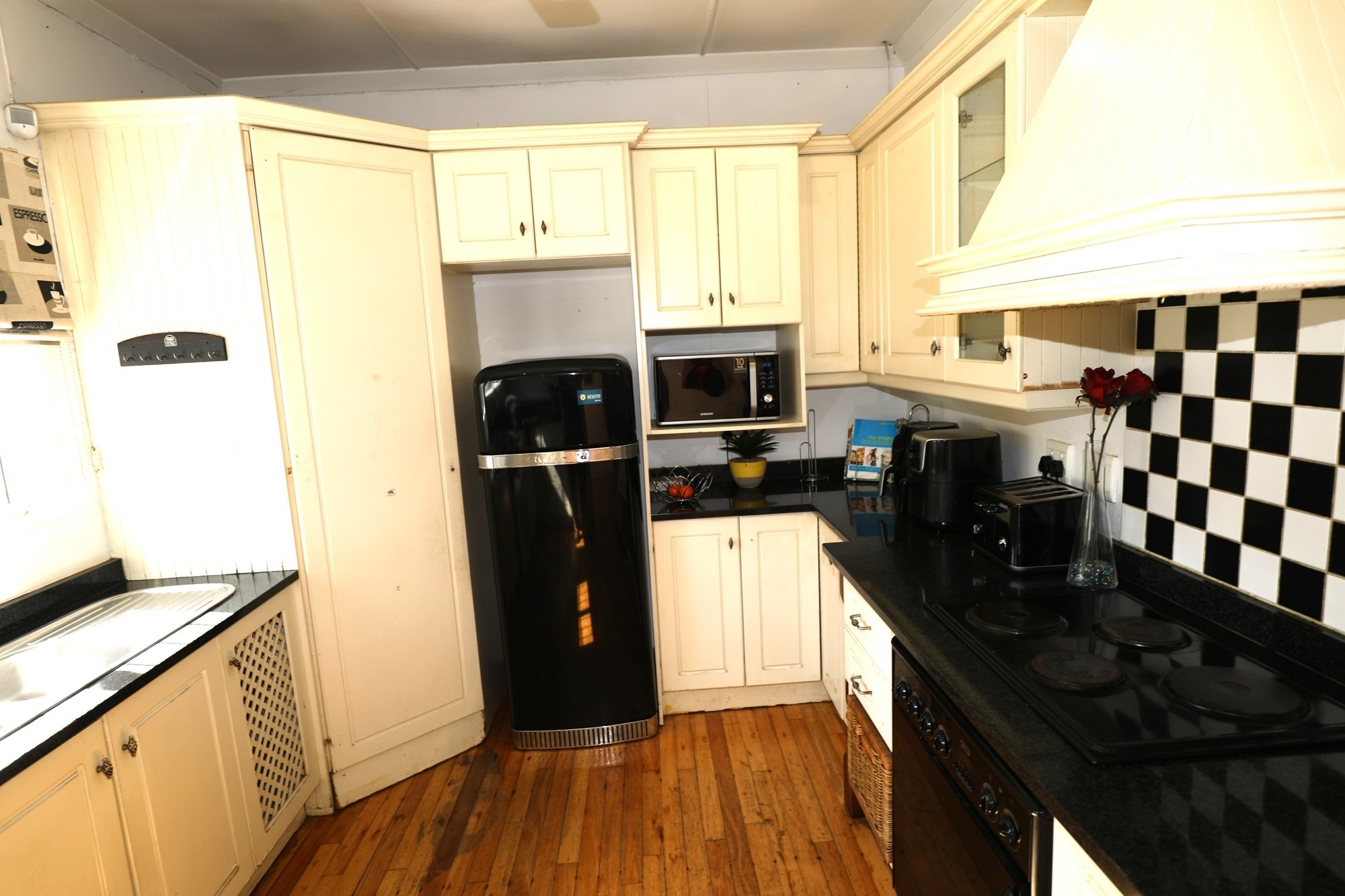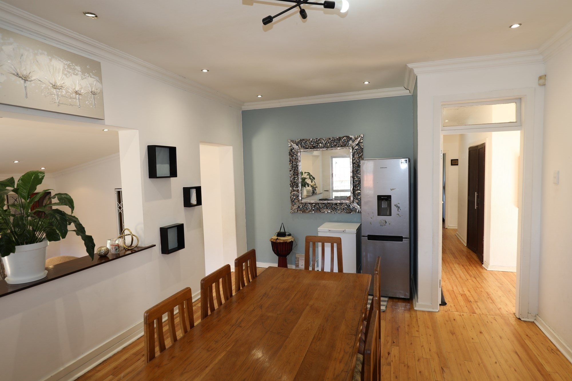 Occupying a generous 1,115 square meter plot, the property boasts unique features including a spacious garage with capacity for 8 vehicles, first-owner maintained, and fully equipped with high-speed fiber internet and security surveillance. Enjoy year-round comfort with air conditioning and ceiling fans, while an exquisite fireplace elevates the ambiance during cooler months.